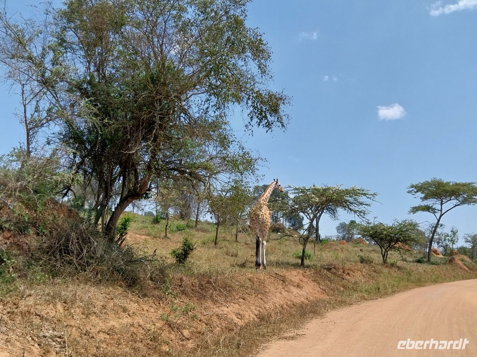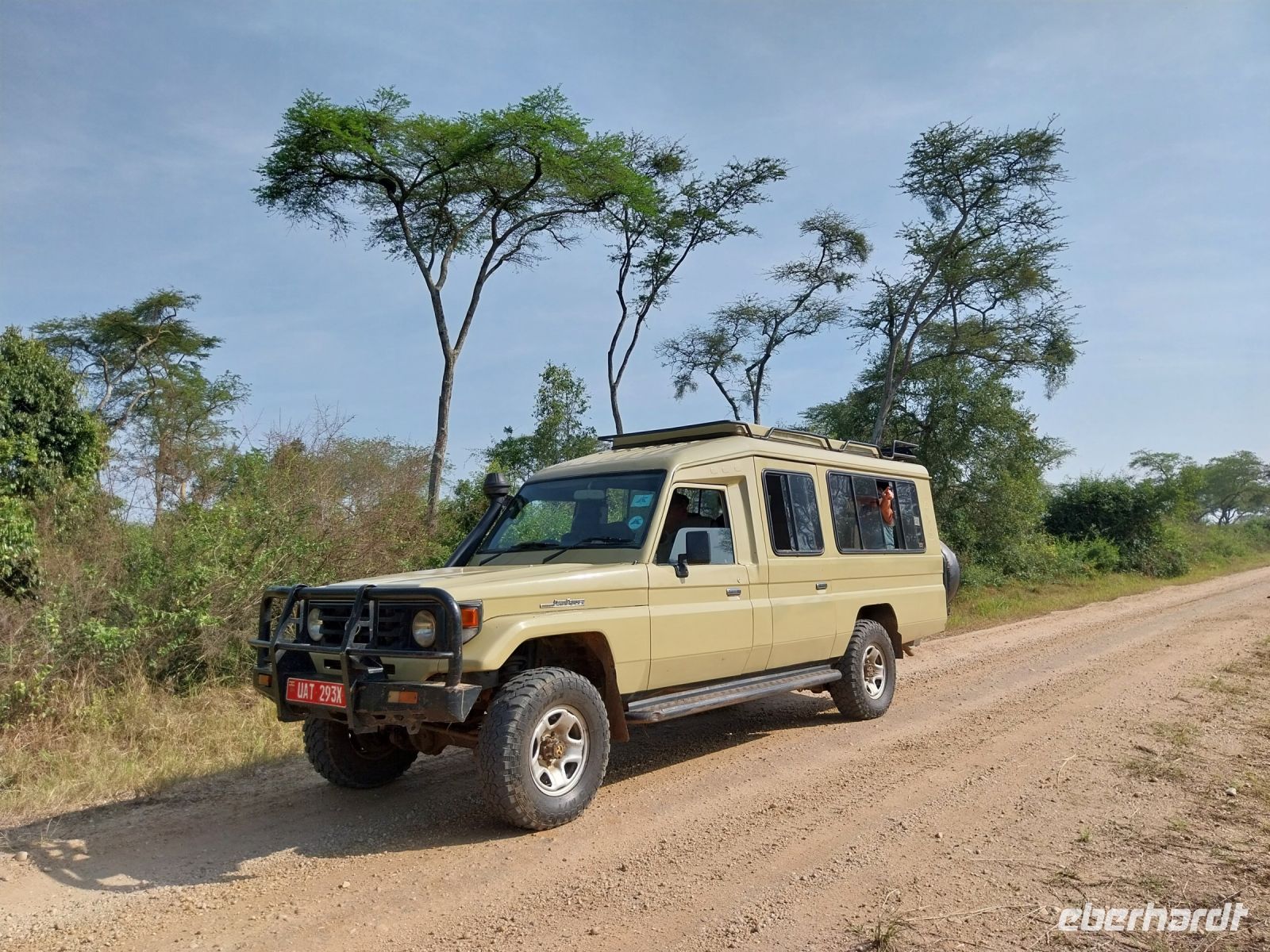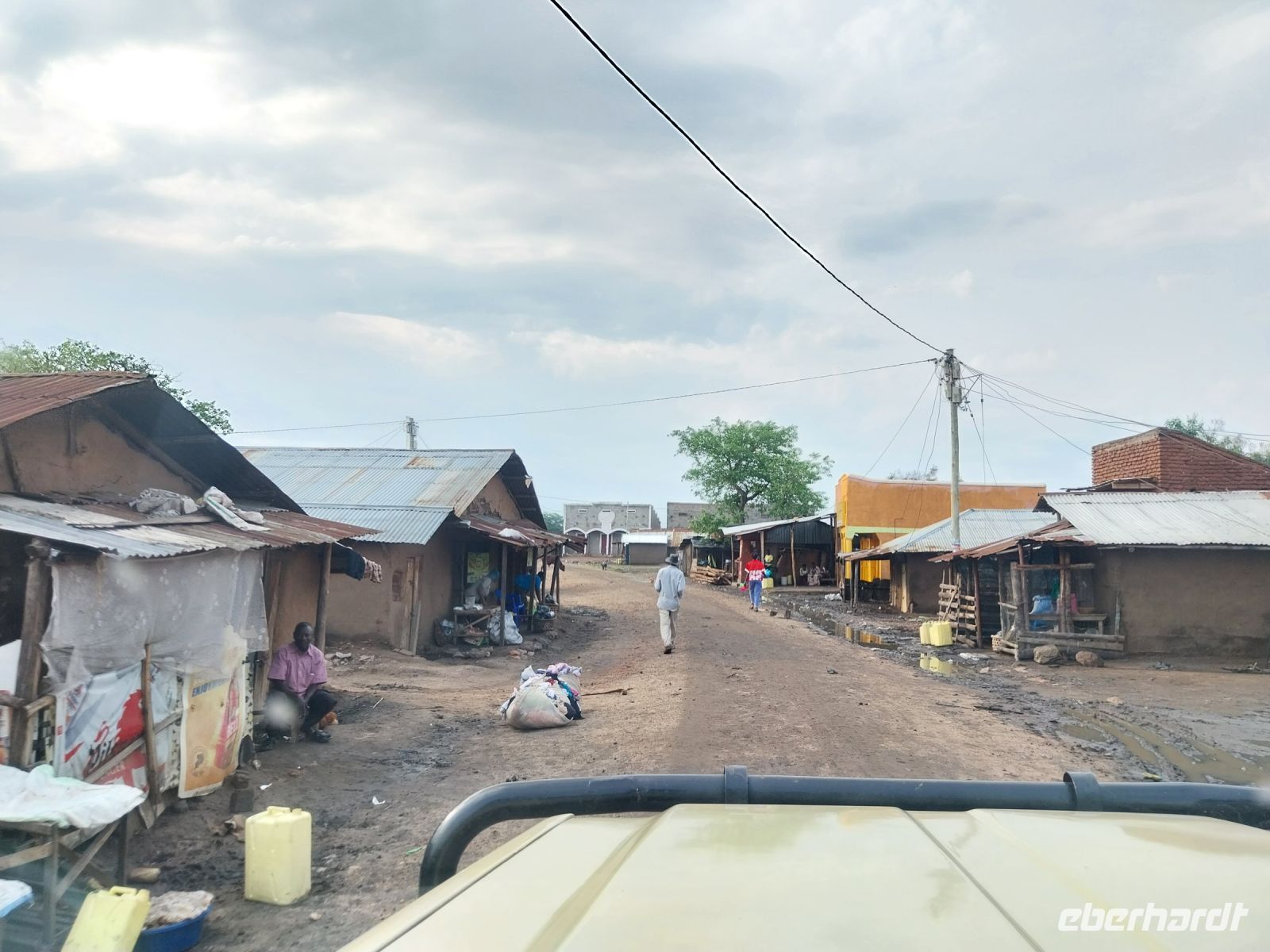 Wir stoppten an einer Autowerkstatt und erhielten Ersatz für 2 gelöste Radmuttern uns setzten unsere Reise zum Lake Mburo-Nationalpark fort. Unterwegs durchquerten wir die Provinz des amtierenden Präsidenten. Hier waren die Häuser größer, schöner und die Straßen breiter.