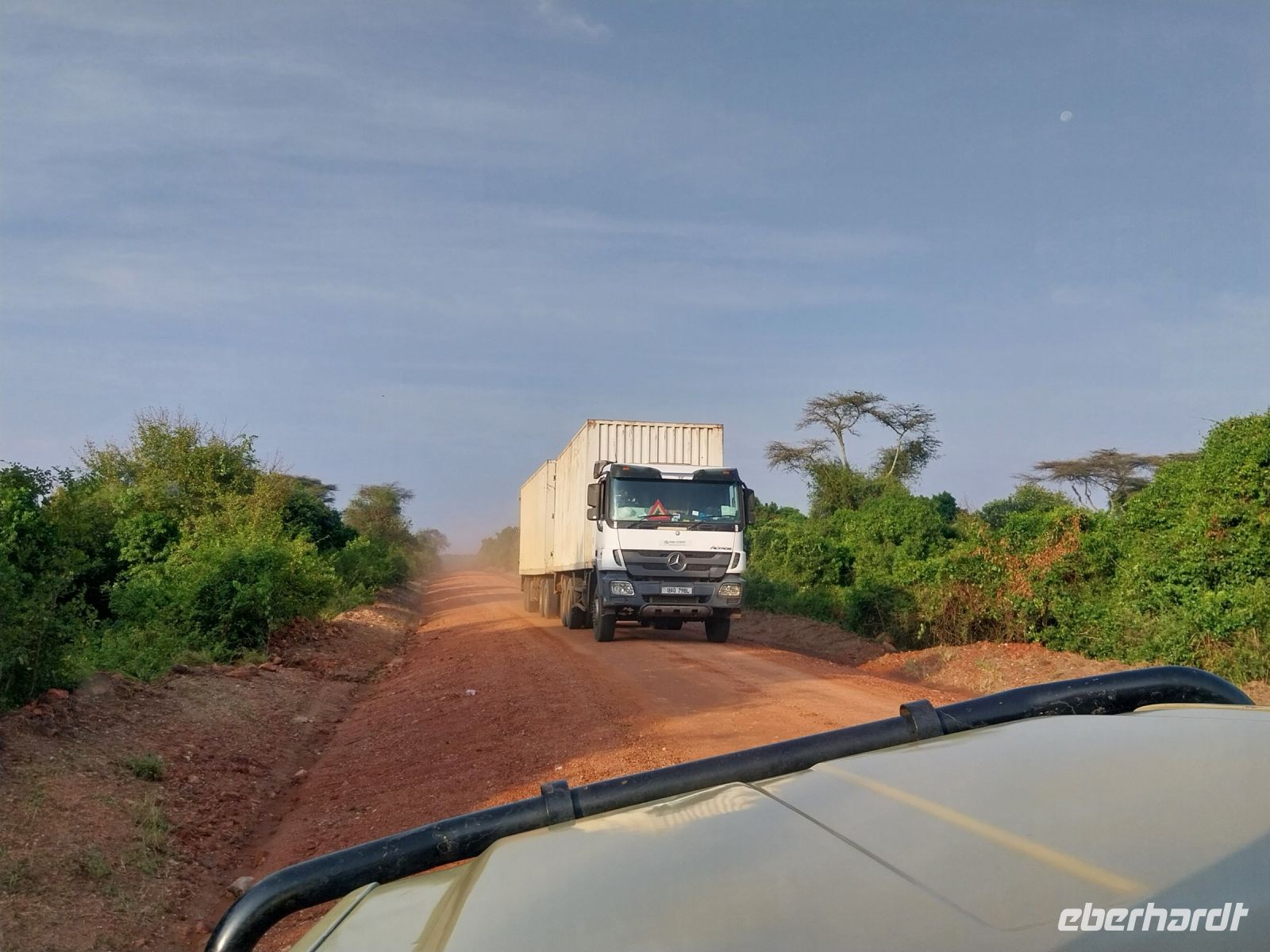 Heute war die längste Fahrt während unserer Rundreise geplant. Ausgestattet mit einem Lunchpaket fuhren wir über 300 Kilometer in Richtung Süden. Zunächst entlang des Albertsees. Aufgrund von Ölvorkommen befindet sich das Land hier im Wandel - hervorragende Straßen und parralle zu dieser wird eine neue Ölpipeline gebaut.