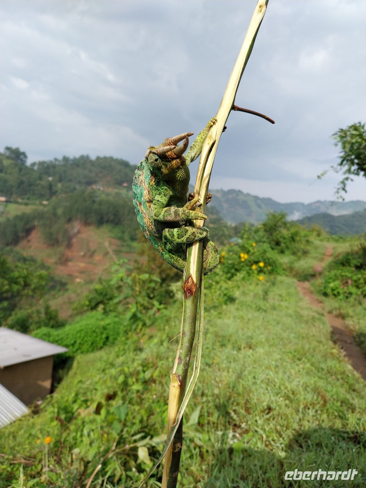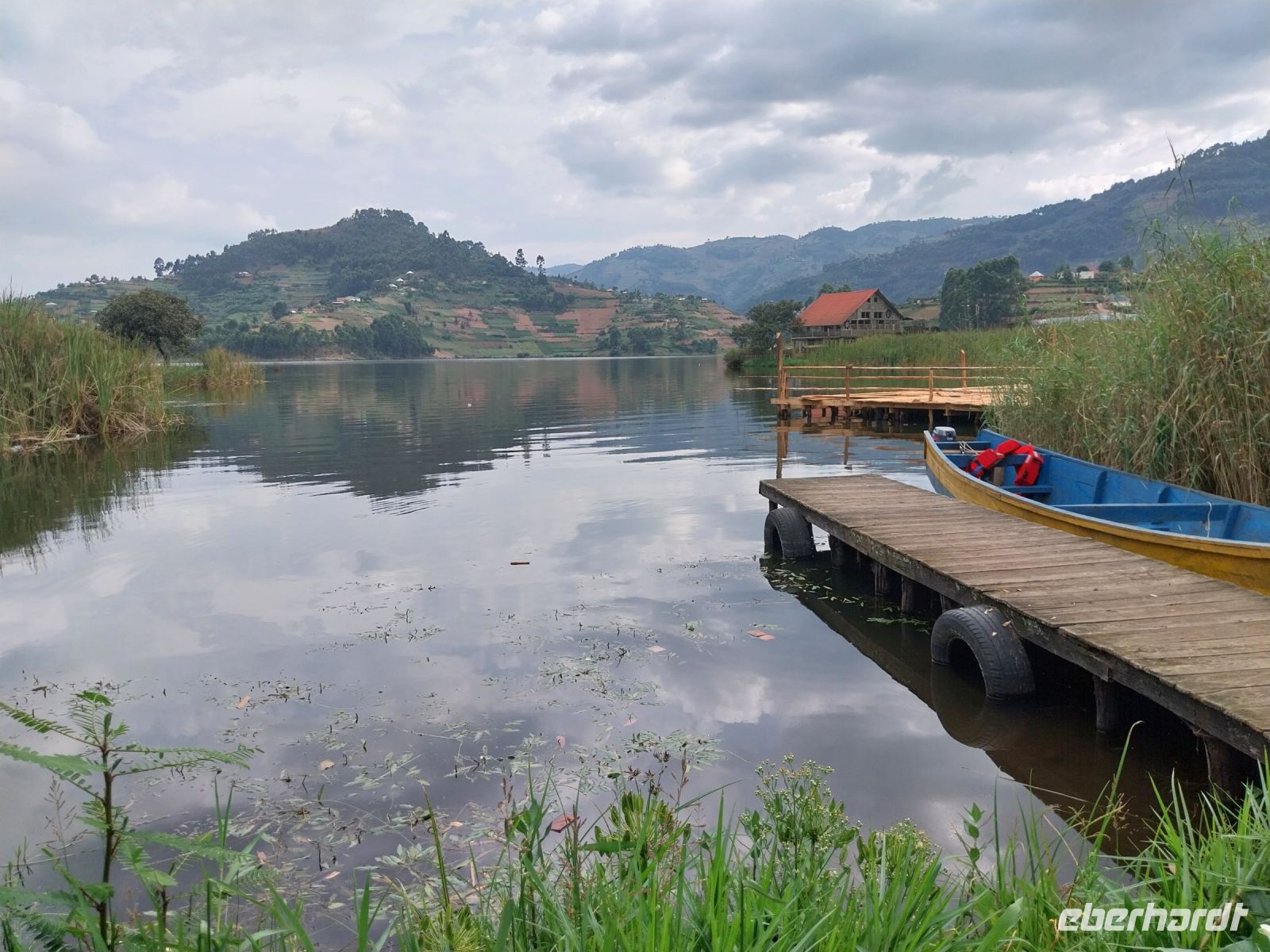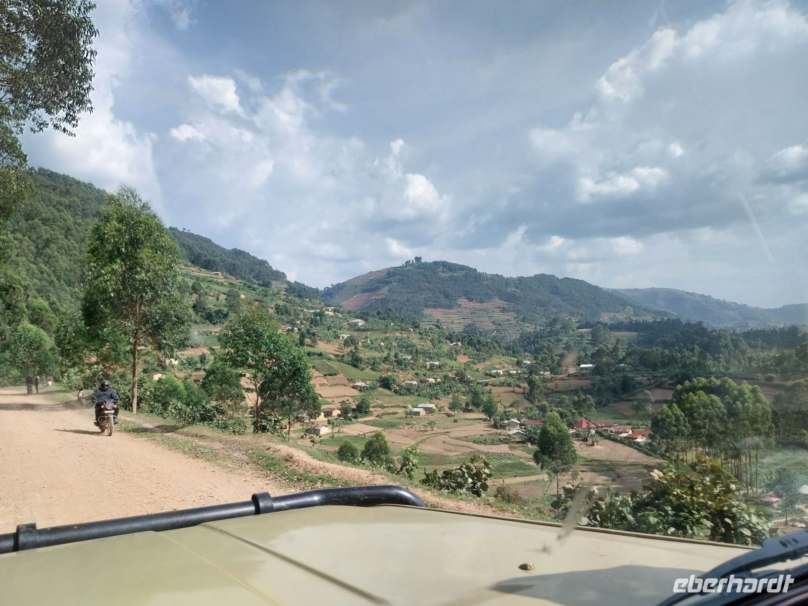 Anschließend folgte eine lange Fahrt durch landschaftlich reizvolle Gegenden. Wir sahen mehrere Vulkankegel, z. B. den 4127 m hohen Muhabura. Leider wurde uns auch klar, dass nicht alles in der Umgebung so friedlich ist und in einer Entfernung von nur 100 Kilometern der Konflikt zwischen ruandischen Rebellen und regierungstreuen Kongolesen im Ostkongo herrscht. Wir fuhren in Mitten eines Flüchtlingskonvois aus 15 Bussen des UNHCR in Richtung Kabale, wo auch ein riesiges Flüchtlingslager ist.