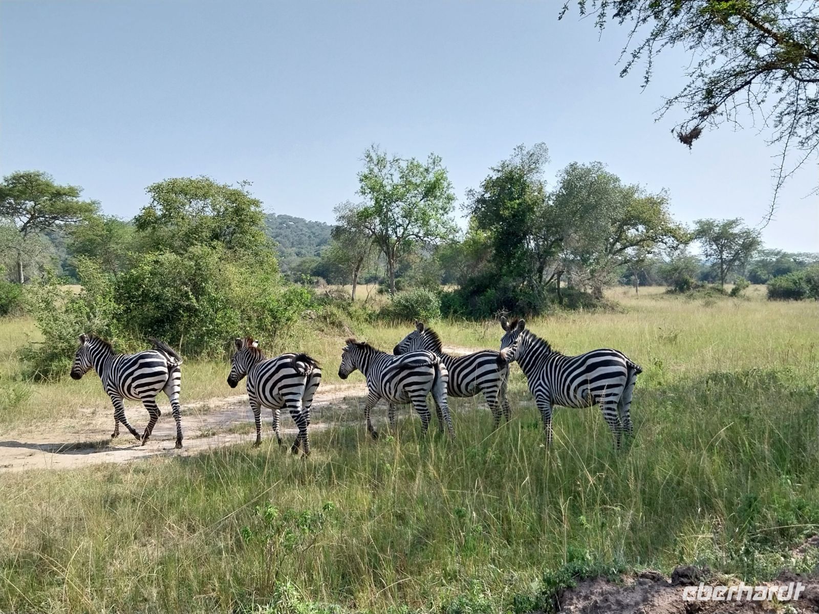 Bereits um 6 Uhr morgens trafen wir uns zum Frühstück. Pünktlich zur Öffnung des Nationalparks waren wir am Eingang und Susan, eine Rangerin, stieg zu. Wir fuhren noch tiefer in den Park hinein und gingen schließlich zu Fuß weiter. Wir beobachteten die Tiere aus geringer Entfernung und Susan erklärte viel über die Zebras sowie Giraffen, welche Wiederkäuer sind und vor 10 Jahren im Nationalpark angesiedelt worden. Von ursprünglich 15 Tieren hat sich die Population auf 100 Giraffen erhöht. Außerdem sahen wir die Eland-Antilope, welche die größte in Uganda lebende Art ist. Desweiteren entdeckten wir Impalas, Büffel, Nilpferde, Buschbböcke, Warzenschweine, Paviane, Spechte und viele weitere Tiere, welche im Park heimisch sind.