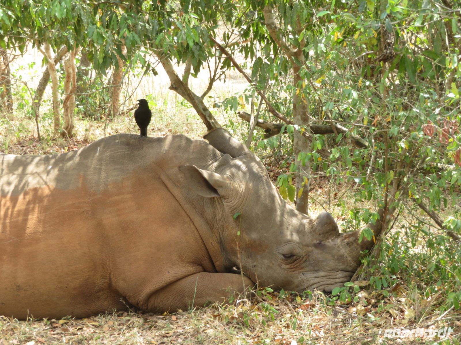 Zunächst kämpften wir uns durch den Verkehr Kampalas und der Vororte und gegen Mittag erreichten wir die Ziwa Rhino and Wildlife Ranch. Es ist der einzige Ort Ugandas an welchem man aktuell Nashörner beobachten kann. Mit vier Nashörner aus Kenya und zweien aus den USA wurde ein Wiederansiedlungsprogramm gestartet. Inzwischen gibt es 47 Nashörner im Park.