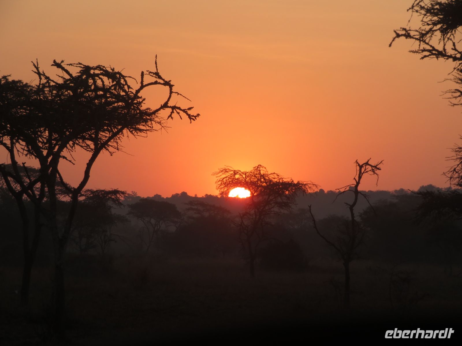 Während des Sonnenuntergangs fuhren wir noch die letzten Kilometer bis zu unserer Lodge und sahen unterwegs die ersten Wasserböcke sowie Elefanten und ließen den Abend mit einem Blick auf den nächtlichen Nil ausklingen.