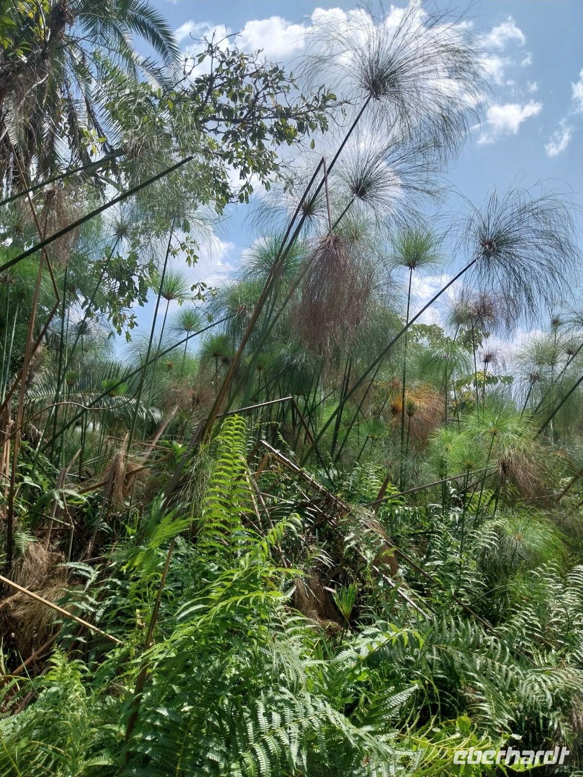 Nach unserem Mittagessen fuhren wir zu den Bigodi-Sümpfen. Wir liefen über Stege entlang des Naturschutzgebietes, sahen und hörten viele Vögel sowie einige Affen. Es gab Seerosen und Papyrus, welcher unter anderem zum Flechten von Körben und Untersetzern genutzt wird. Dies schauten wir uns anschließend bei einer Gruppe Damen an, welche mit Hilfe des Verkaufs die örtliche Schule unterstützen. Auch tanzten sie für uns 3 Tänze aus benachbarten Regionen.