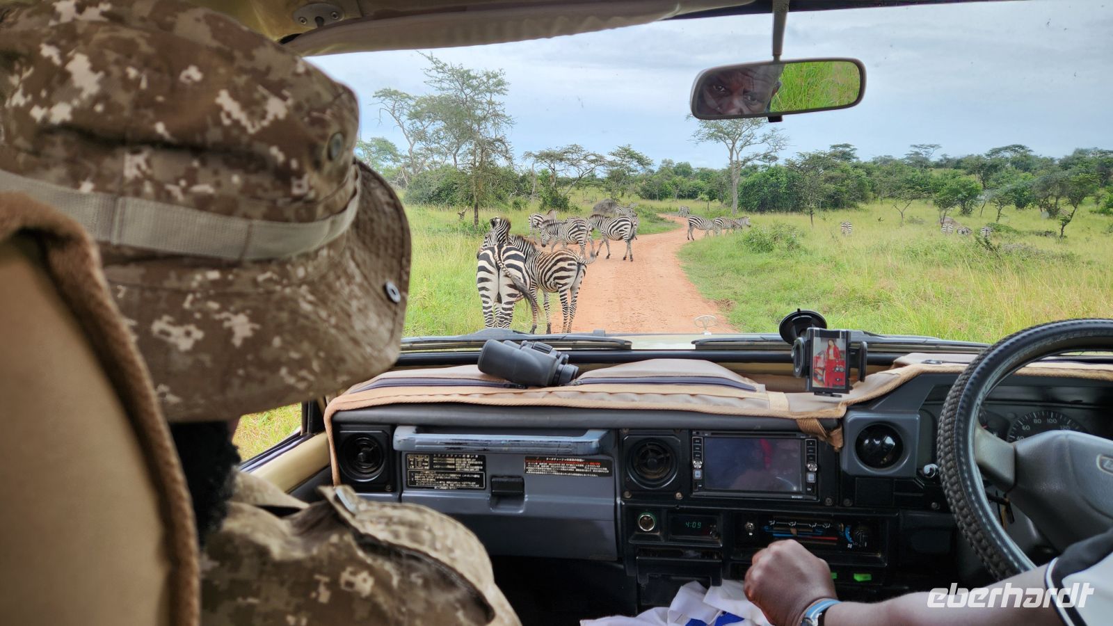 Unser Jeep war die ganze Nacht in der Werkstatt – und mit ihm Akim. Dennoch steht er am Morgen gut gelaunt vor uns, als wäre nichts gewesen. Nach einem frühen Frühstück machen wir uns auf zu unserer ersten Pirschfahrt im Murchison Falls National Park.