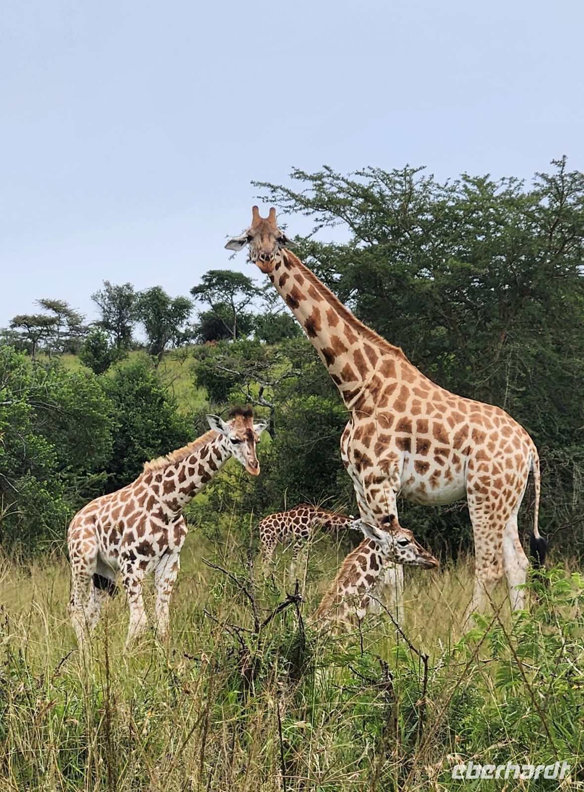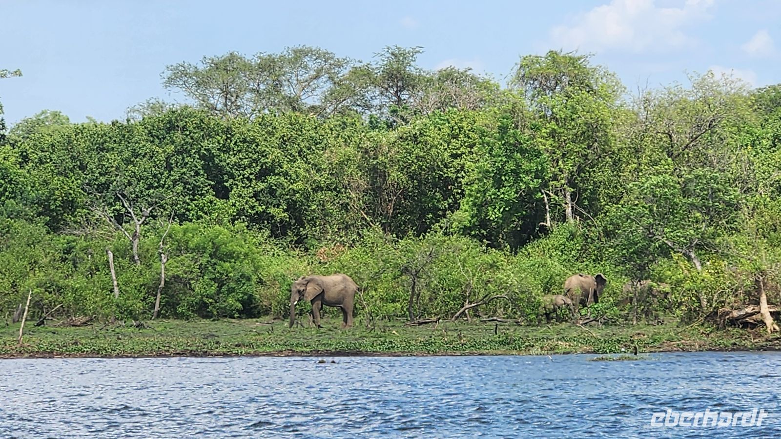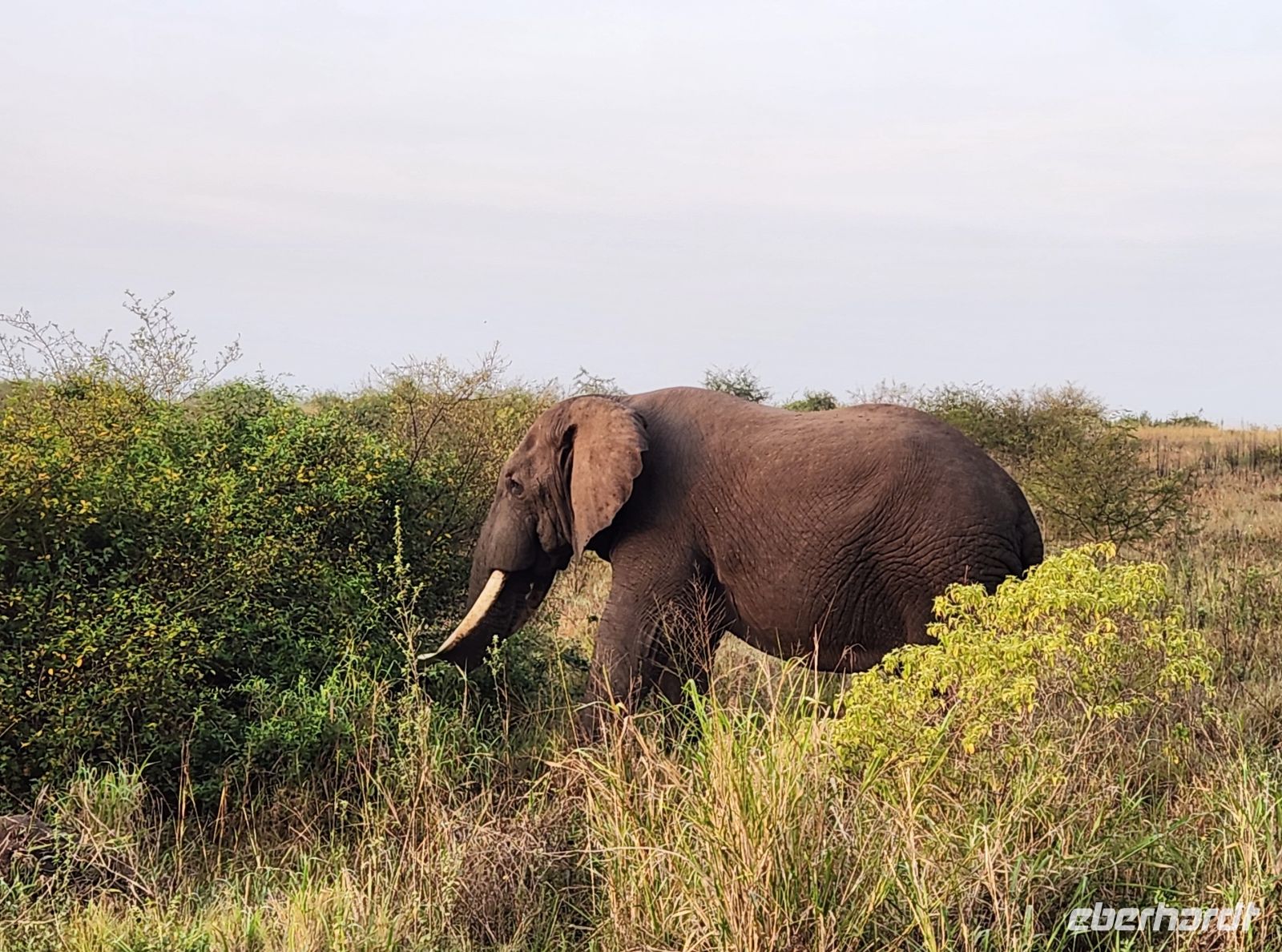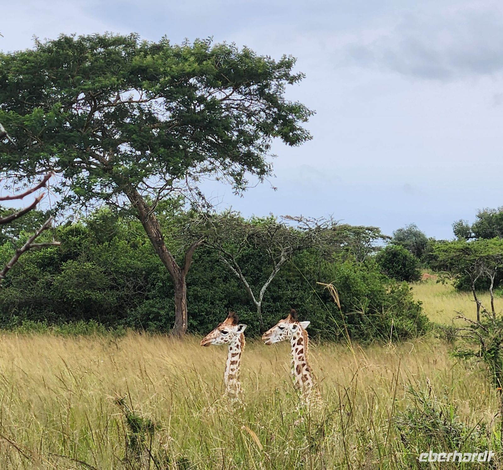 Schon bald entdecken wir Elefanten, die gemächlich durch die Savanne ziehen, mächtige Büffelherden, Wasserböcke und Warzenschweine. Immer wieder halten wir Ausschau nach Löwen – so sehr wir es uns auch wünschen, heute zeigen sie sich leider nicht. Dennoch belohnt uns die beeindruckende Landschaft mit ihren weiten Ebenen, Akazien und dem fernen Schimmer der Ruwenzori-Berge.
