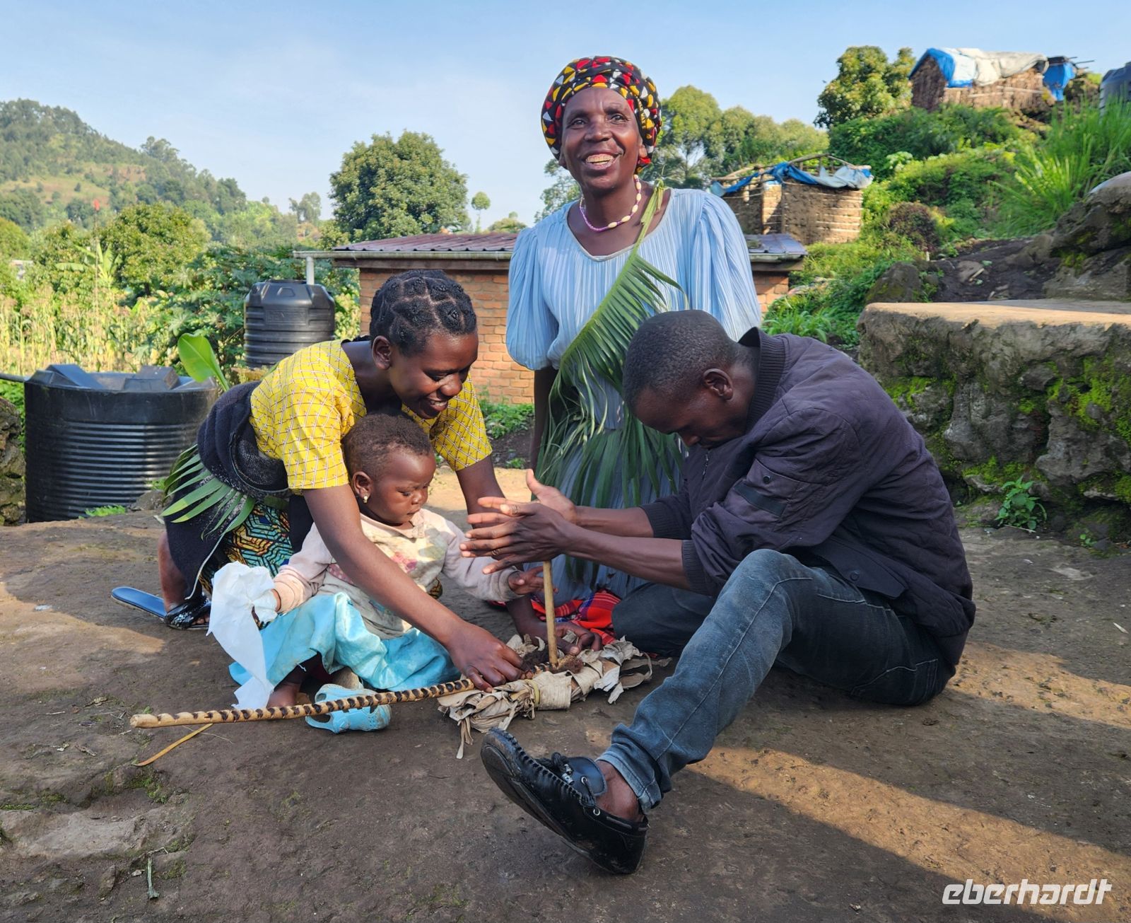 Zu Beginn unseres Besuchs stellen wir jedoch fest, dass viele Batwa heute unter sehr schwierigen Bedingungen leben. Wir sind erschüttert über die einfachen und prekären Verhältnisse auf dem kargen Hügel, auf dem sie nun angesiedelt sind. In der Gesellschaft erfahren sie oft wenig Anerkennung, und Arbeit zu finden ist für viele von ihnen äußerst schwer. Ihr Alltag ist von großen Herausforderungen geprägt.