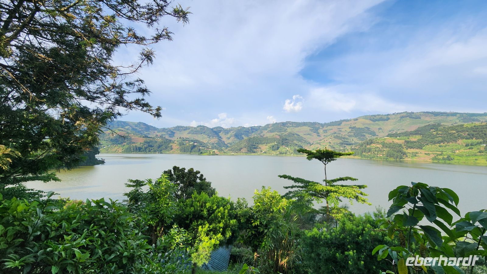 Zwei Damen aus unserer Gruppe haben am Gorilla-Trekking nicht teilgenommen. Stattdessen unternehmen sie am Vormittag eine Motorbootstour über den idyllischen Lake Mulehe. Entlang der Ufer entdecken sie zahlreiche verschiedene Vogelarten und genießen die ruhige, landschaftlich wunderschöne Umgebung.