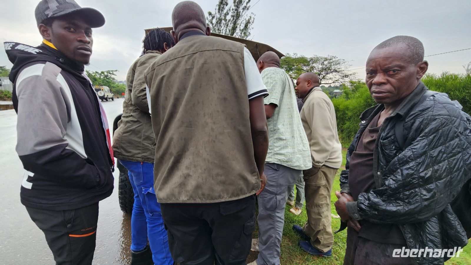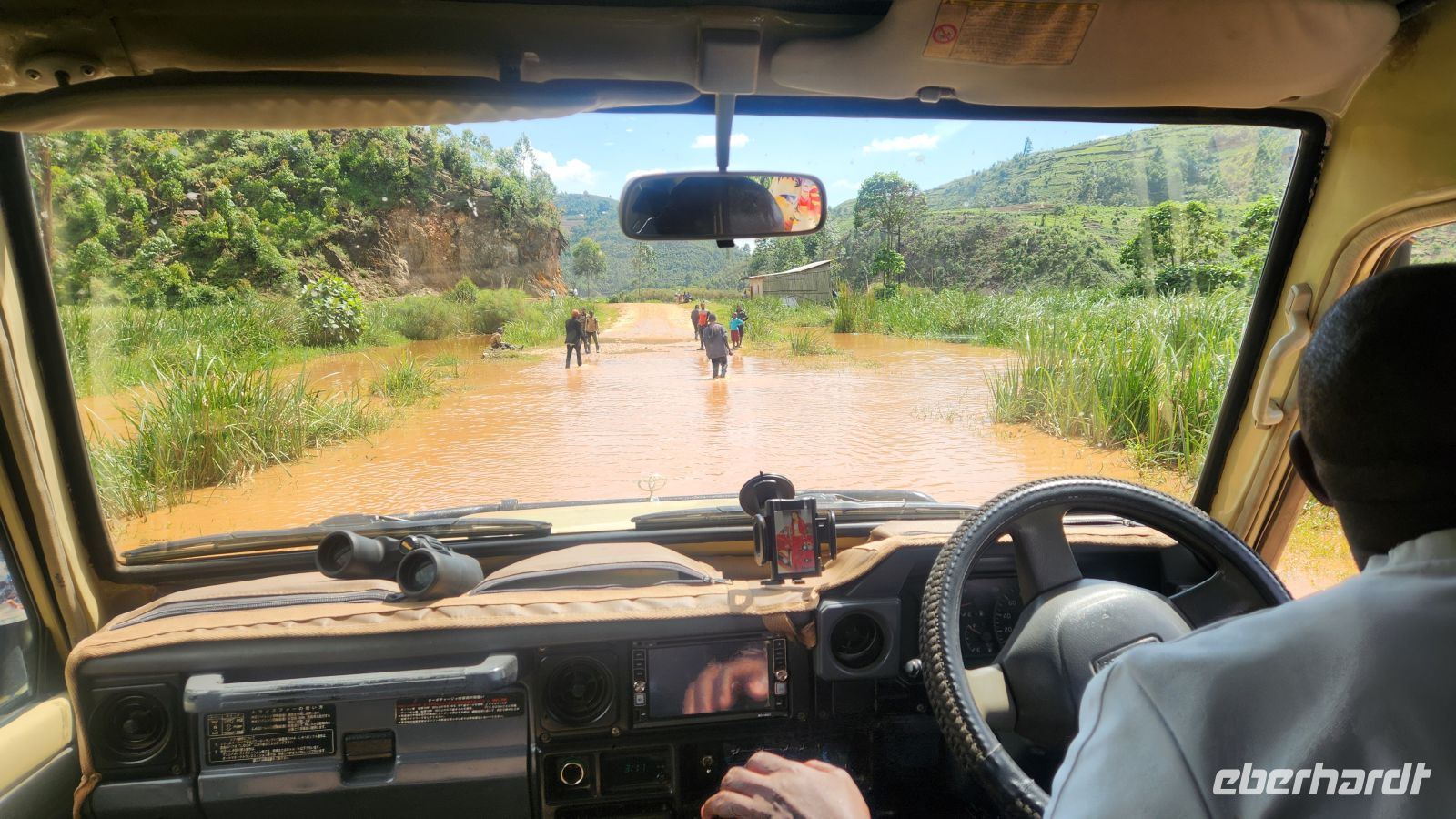 Doch plötzlich hält Akim an: Die Kühleranzeige warnt, Rauch steigt unter der Motorhaube auf. Wie sich später in der Werkstatt herausstellen wird, ist der Kühler undicht. Kaum stehen wir am Straßenrand, halten bereits andere Jeeps – selbstverständlich und hilfsbereit. Schließlich lädt uns eine andere Reisegruppe ein, bei ihnen mitzufahren, damit wir den Wasserfall noch an diesem Tag erleben können. Über so viel Unterstützung freuen wir uns sehr; eine solche Hilfsbereitschaft sind wir kaum gewohnt.