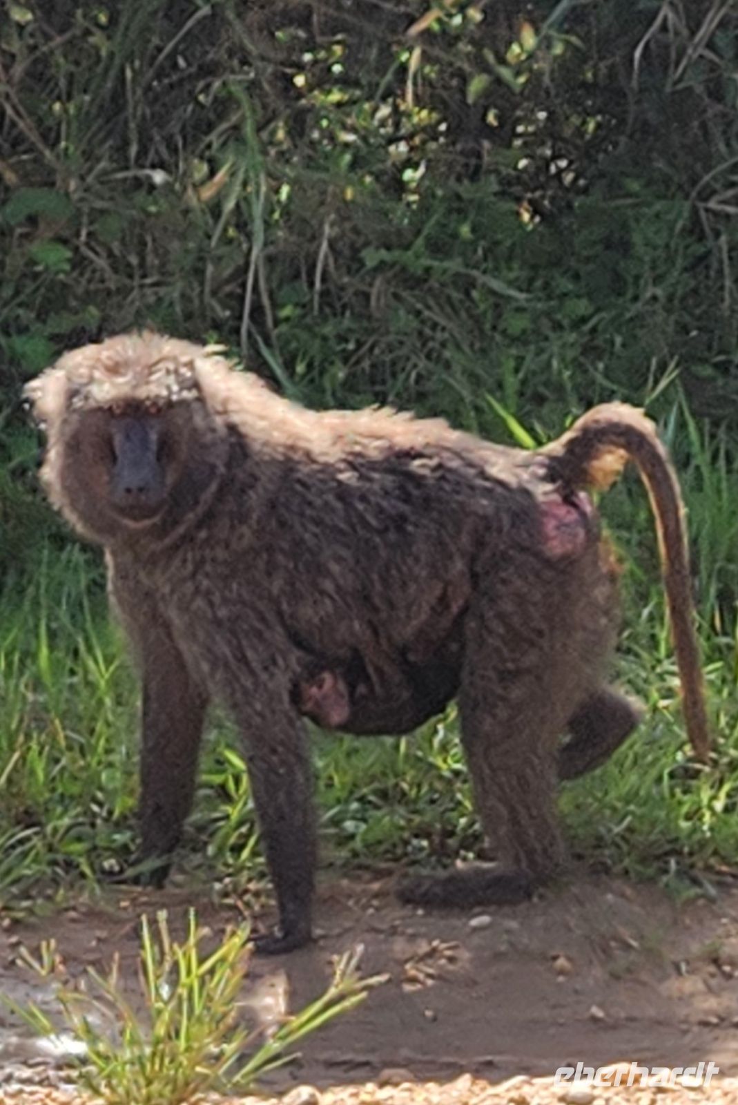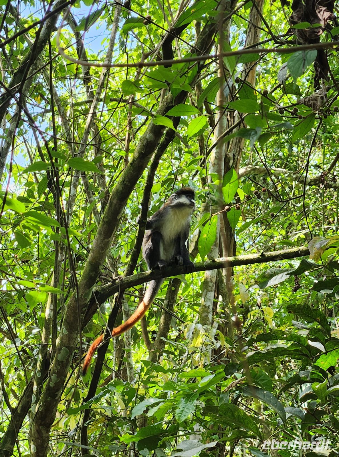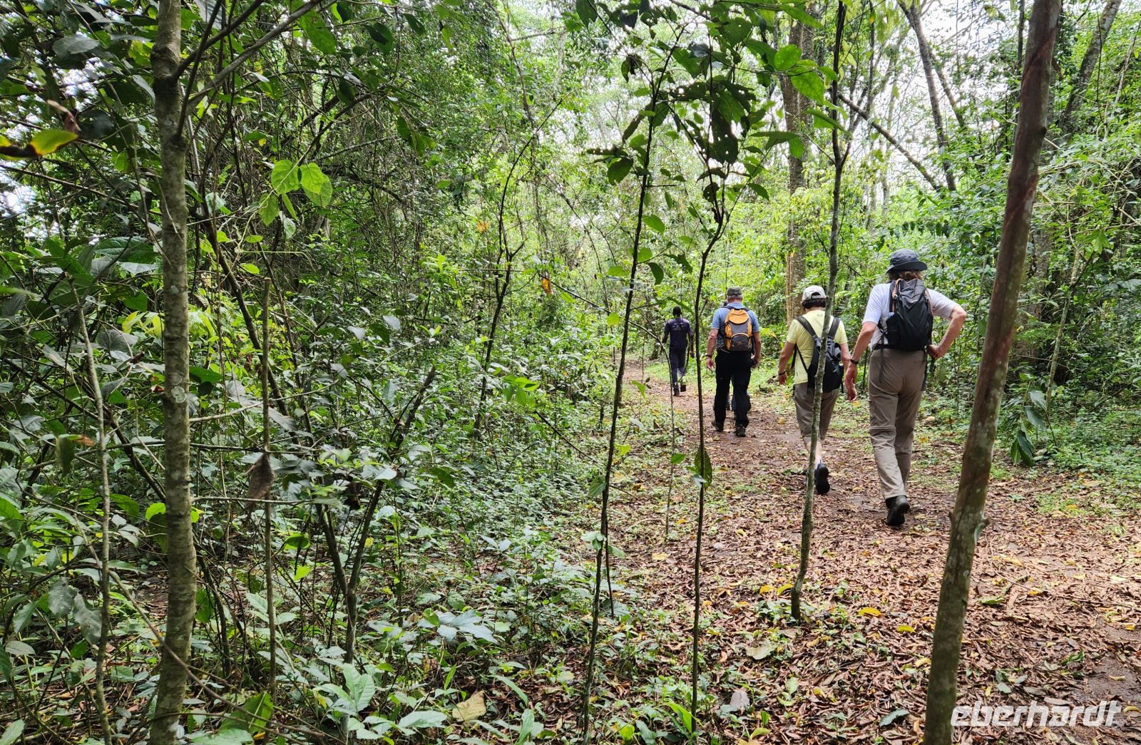Nach diesem unvergesslichen Erlebnis werden uns feierlich Zertifikate überreicht – ein schöner Moment, der diesen Tag abrundet. Zurück in unserer Lodge wartet ein Mittagessen auf uns, bevor wir am Nachmittag einen Naturwalk durch die Bigodi Wetlands unternehmen. Wir beobachten Rotschwanzaffen und zahlreiche Vogelarten, während uns der Pfad durch das feuchte, grüne Ökosystem führt.