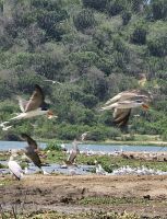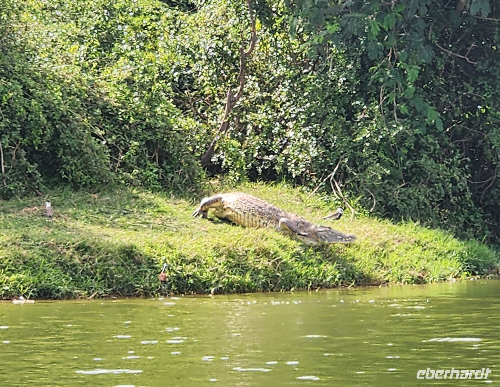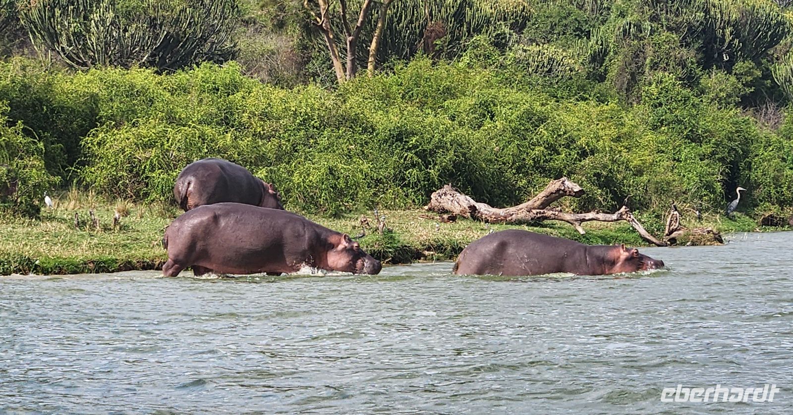 Am Nachmittag unternehmen wir eine Bootsfahrt auf dem Nil. Unser Ziel sind erneut die Murchison Falls, die wir diesmal vom Wasser aus sehen – aus einiger Entfernung, aber nicht weniger eindrucksvoll. Am Ufer liegen zahlreiche Nilpferde im kühlen Wasser, Nilkrokodile ruhen reglos am Sandstrand. Über uns kreisen Weißkopfseeadler und viele andere Vogelarten – ein ruhiger, zugleich faszinierender Perspektivwechsel.