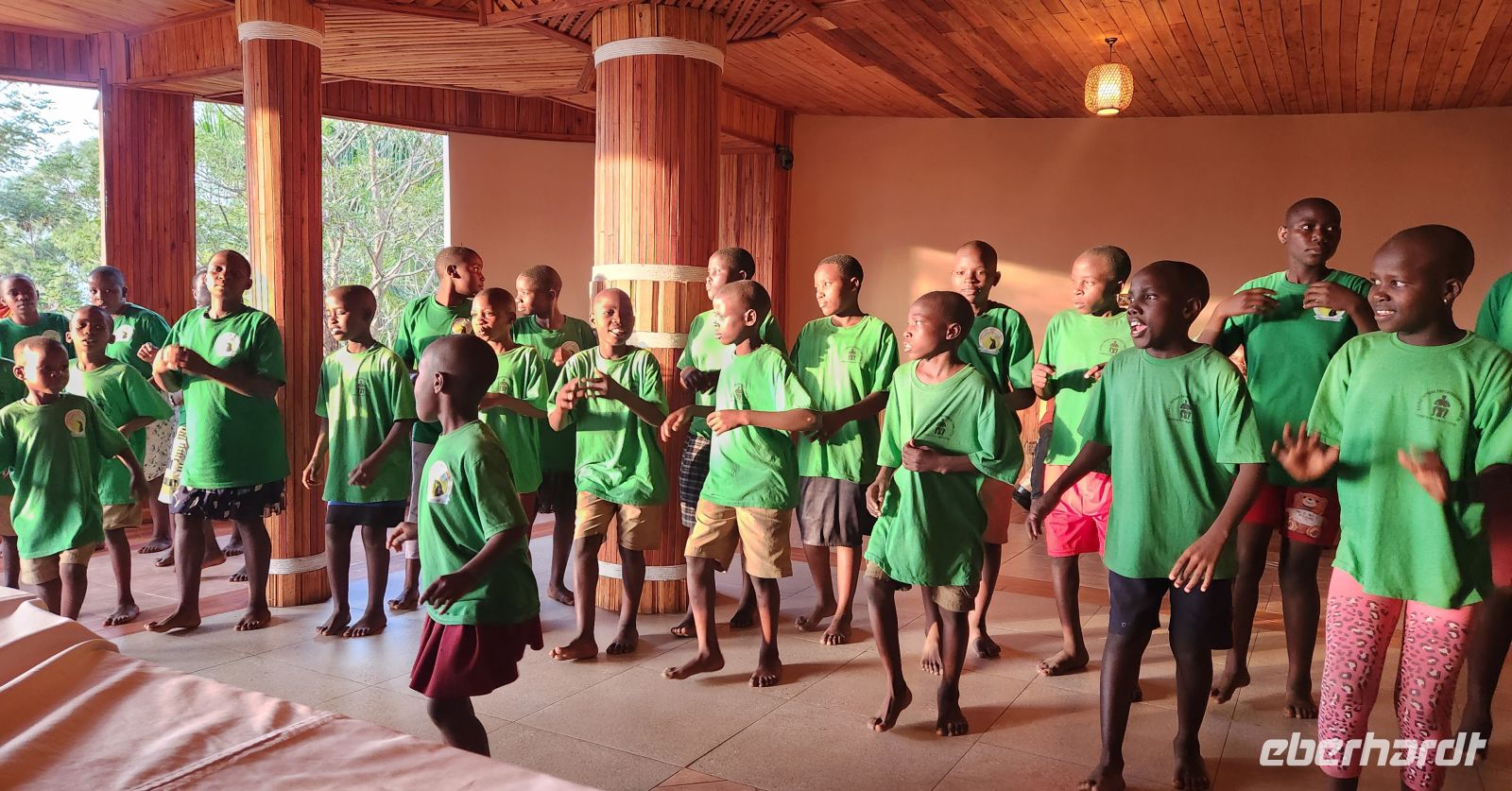Nach dem Abendessen erleben wir einen besonders bewegenden Moment: Waisenkinder aus einem nahegelegenen Kinderheim tanzen und singen für uns. Das Heim wurde gegründet, weil viele Kinder in dieser Region ihre Eltern verloren haben – oft durch Unfälle beim Jagen von Wildtieren, um ihre Familien zu ernähren. Die Kinder haben hier ein neues Zuhause gefunden, und ihre Freude und Energie sind ansteckend. Wir tanzen mit ihnen, lachen und weinen vor Rührung gleichermaßen. Am Ende des Abends spendet jeder von uns großzügig, um die Arbeit des Heims zu unterstützen. Dieser Abend berührt uns tief – die Verbindung zwischen Mensch, Tier und Natur zeigt sich hier auf eine ganz besondere, emotionale Weise.