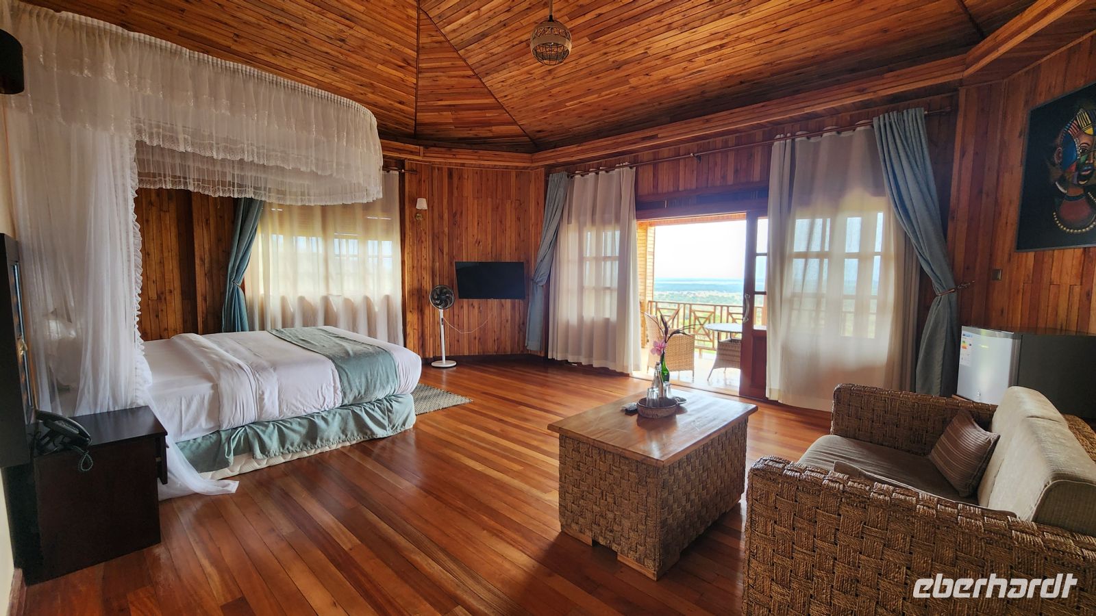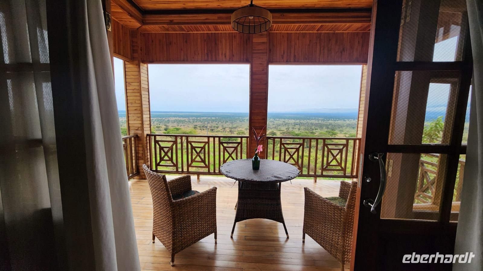 Zur Mittagszeit erreichen wir unsere Lodge. Jede Unterkunft bietet einen atemberaubenden Blick über den Nationalpark – offene Ebenen, Wälder, und in der Ferne die Silhouette von Bergketten. Viele von uns entspannen ein wenig, genießen die Aussicht, und eine Dame gönnt sich sogar eine Massage – schließlich hat man ja Urlaub.