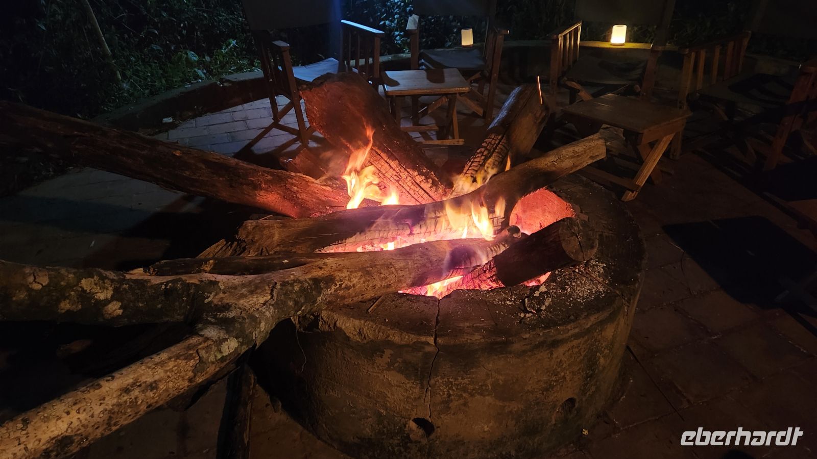 Am Abend sitzen wir – wie so oft auf dieser Reise – am knisternden Lagerfeuer. Draußen in der Natur, unter dem afrikanischen Sternenhimmel, genießen wir diese ruhigen Momente ganz besonders.