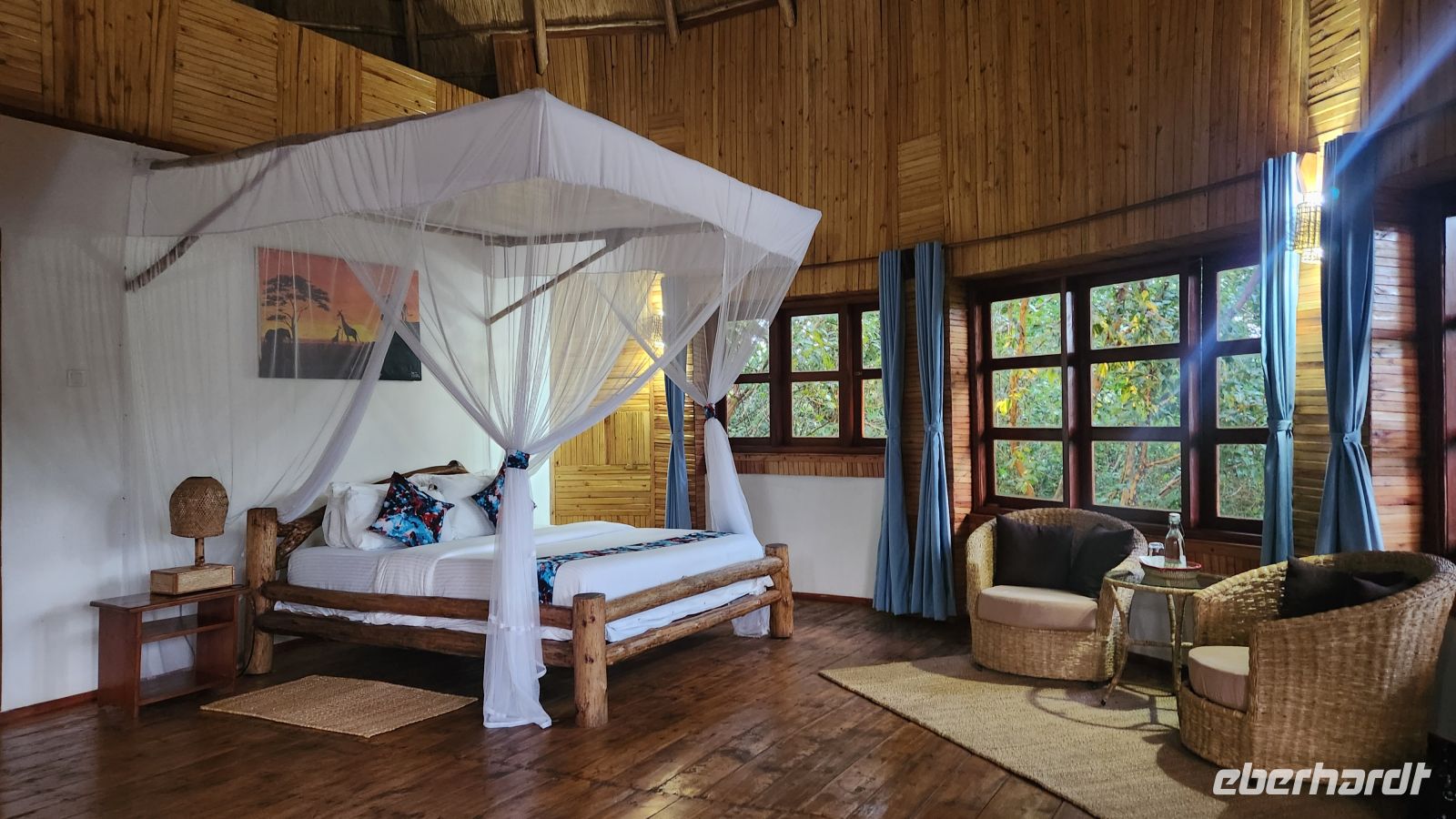 In dieser Nacht sind wir besonders aufgeregt wegen des morgigen Gorilla-Trekkings. Dazu kommt noch das Wetter: Es gibt ein kräftiges Gewitter und schwere Regenfälle – „wie aus Eimern“, wie man so schön sagt. Der Regen prasselt auf das Dach unserer Bungalows, was die Spannung auf den bevorstehenden Tag noch steigert.