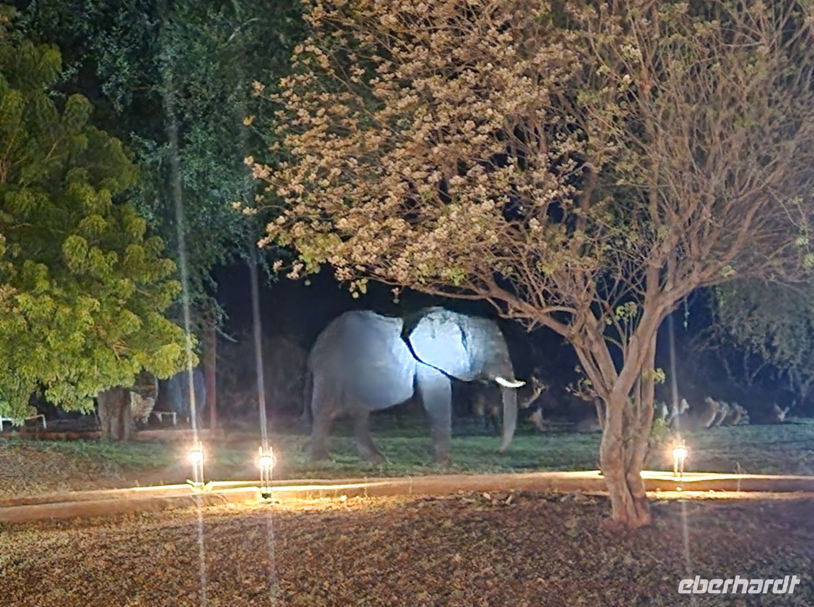 Nach dem Abendessen sorgt ein Wächter unserer Lodge noch einmal für Aufregung: Ein Elefant steht mitten auf dem Gelände. Offenbar kommt er mehrmals pro Woche zu Besuch. Natürlich sind wir alle begeistert – und ein wenig ehrfürchtig. Ein weiterer Moment, der zeigt, wie nah wir hier der Natur wirklich sind.
