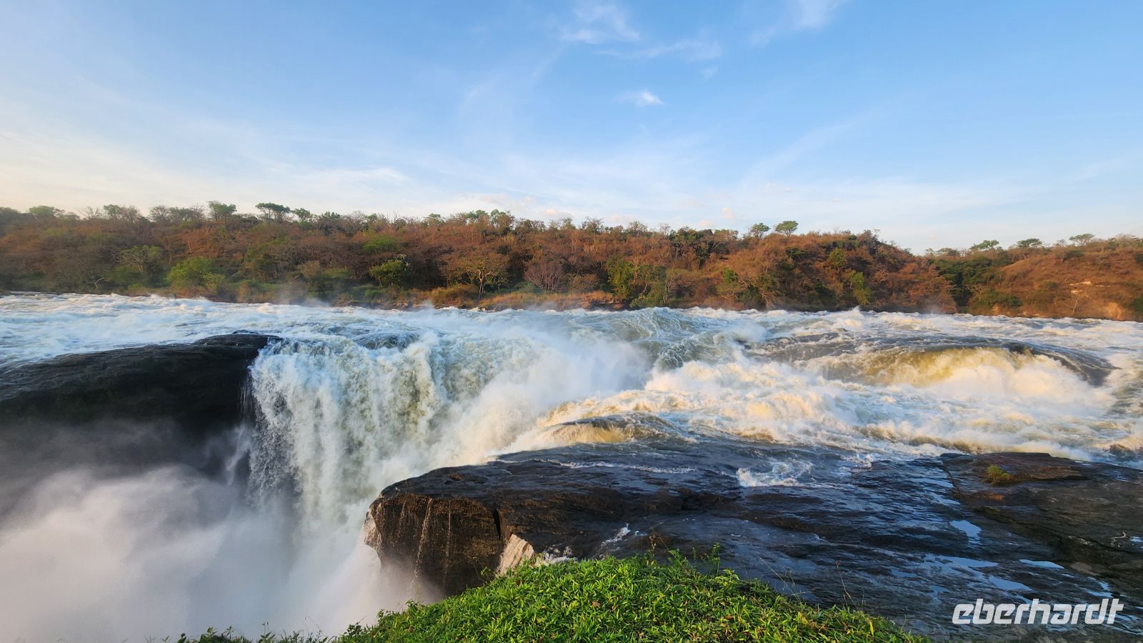 Nach einer stärkenden Mittagspause setzen wir unsere Fahrt fort. Bevor wir in unserer Lodge einchecken, wollen wir noch die berühmten Murchison Falls besuchen. Hier zwängt sich der Nil durch eine nur etwa sieben Meter breite Felsspalte und stürzt rund 40 Meter in die Tiefe – ein gewaltiges Naturschauspiel.