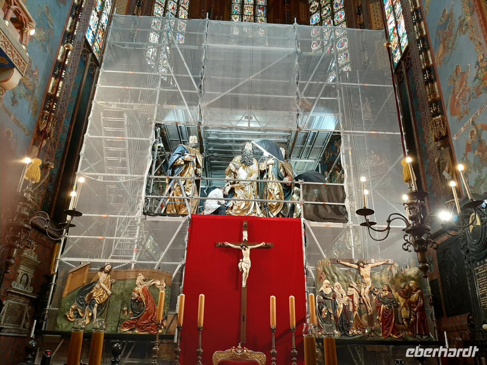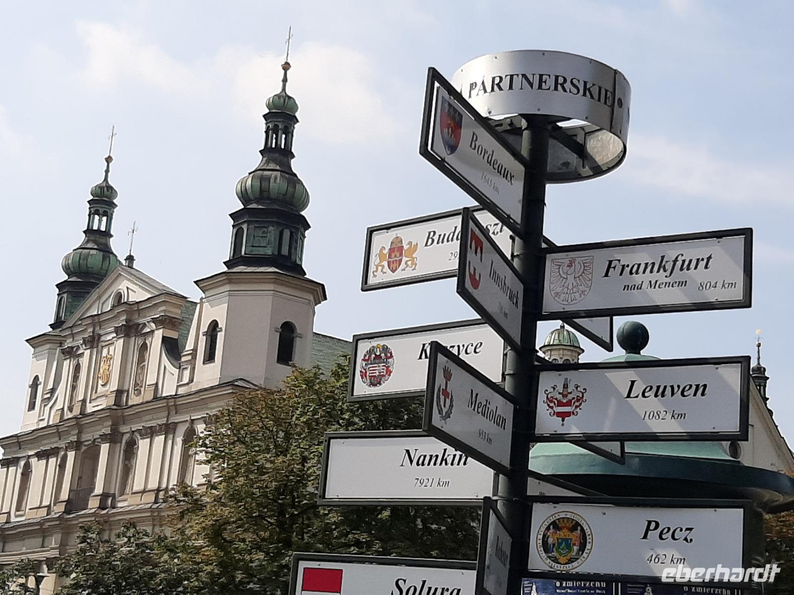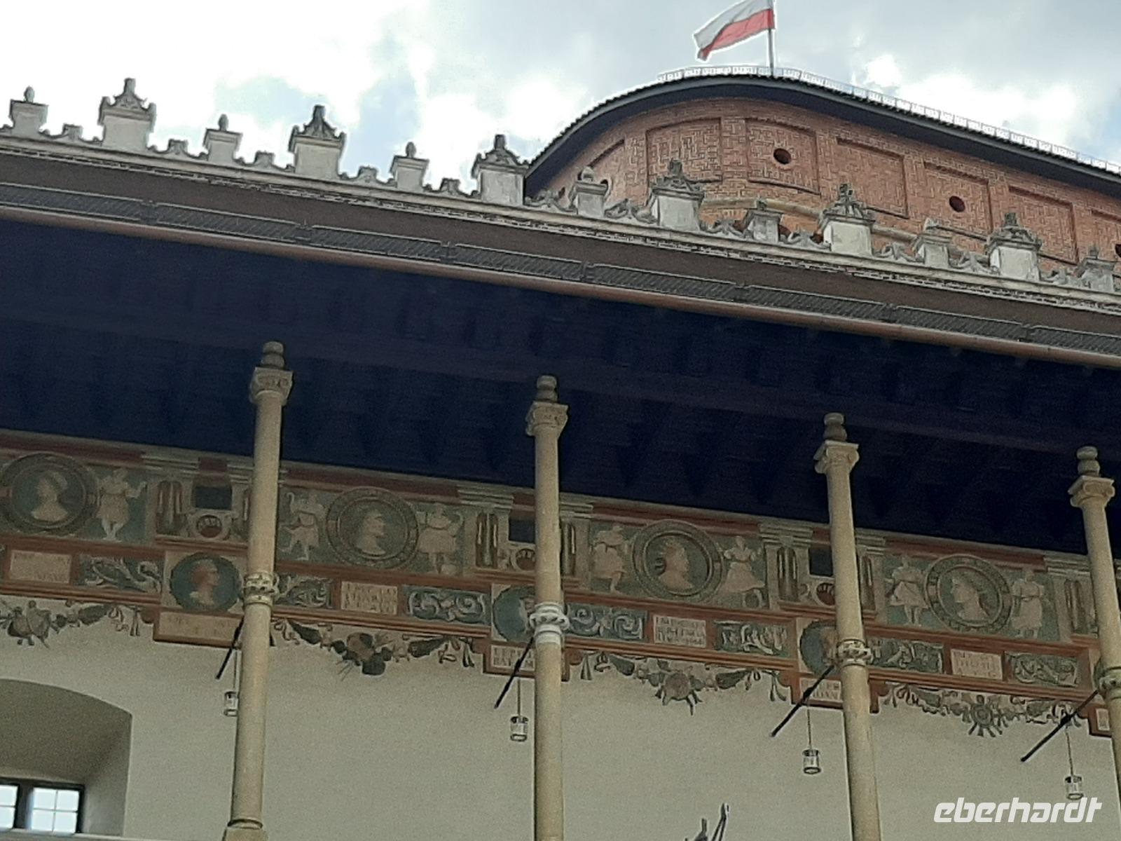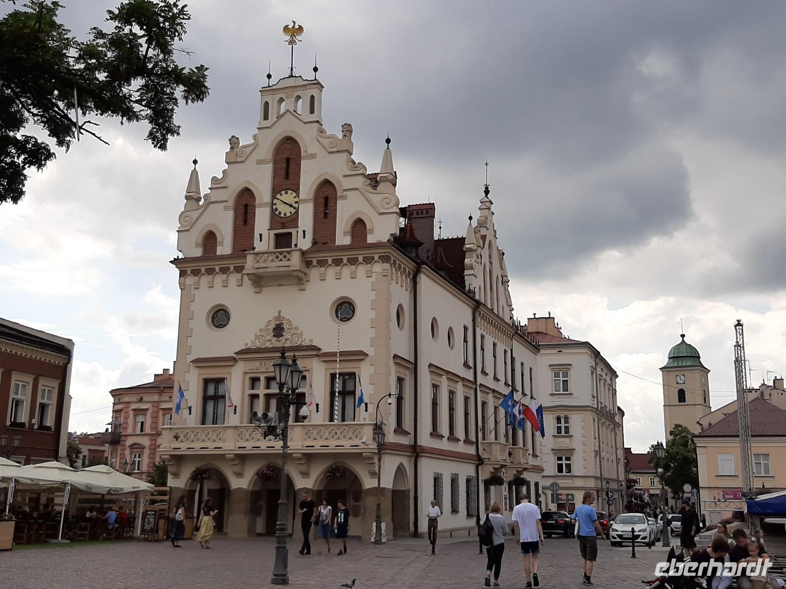 Nach dem Frühstück geht es heute mit dem Bus etwa 80 km weit ostwärts nach Tarnow. Tarnow liegt am Fuße der Karpaten und hat eine fast unberührte mittelalterliche Altstadt. Nach eineinhalbstündiger Fahrt bewundern wir bei einem Stadtrundgang das prächtige Renaissance-Rathaus. Es ist heute leider nicht direkt zugänglich, weil der Marktplatz als Ganzes rekonstruiert wird, jedoch verströmen die Häuser rundum aus dem 16. Jahrhundert eine bezaubernde galizische Atmosphäre. Nach Beendiung der Bauarbeiten wird alles hier als beeindruckendes Ensemble erstrahlen, fühlt man. Wir besichtigen die Kathedrale, in der gerade eine Gedenkfeier anlässlich des 100. Jahrestages der Gründung der Polizei nach dem Ersten Weltkrieg stattfindet. Vor dem Gebäude steht eine Statue des späteren Pabstes Johannes Paul II., der 20 Jahre lang als Bischof in Krakau tätig war. Der Gang durch das Städtchen führt auch zum kleinen Marktplatz und zu der Stelle, an der die ehemalige Synagoge bis zu ihrer Zerstörung 1939 stand. Anschließend in der individuellen Mittagspause ist Gelegeneheit, die typische polnische Küche kennenzulernen. Nach einer weiteren Stunde Fahrt mit unserem Bus kommen wir an in Rzeszow, dem besonderen Städtchen im Karpatenvorland. Ein ausgiebiger Stadtrundgang macht uns mit der Geschichte der Stadt und ihrer ganz herausragenden Architketur bekannt. In der Blütezeit der Stadt Ende des 16. Anfang des 17. Jahrhunderts sind z.B. das Rathaus, das Bernardinerkloster und das Lubomirski-Schloss, wahre Perlen der Architektur, entstanden. Eine Besonderheit in Rzeszow ist das unter dem Marktplatz vorhandene unterirdische weit verzweigte Netz von Kellern, Treppen und Gängen, das entdeckt worden war und das man heute besichtigen kann. Staunend sind wir regelrecht „eingetaucht" in die mittelalterliche Geschichte der Stadt. Beim gemeinsamen guten Abendessen im Restaurant des Hotels „Grein" in Rzeszow, in dem wir heute übernachten, erholen wir uns und haben Gelegenheit, uns über den interessanten Tag auszutauschen.