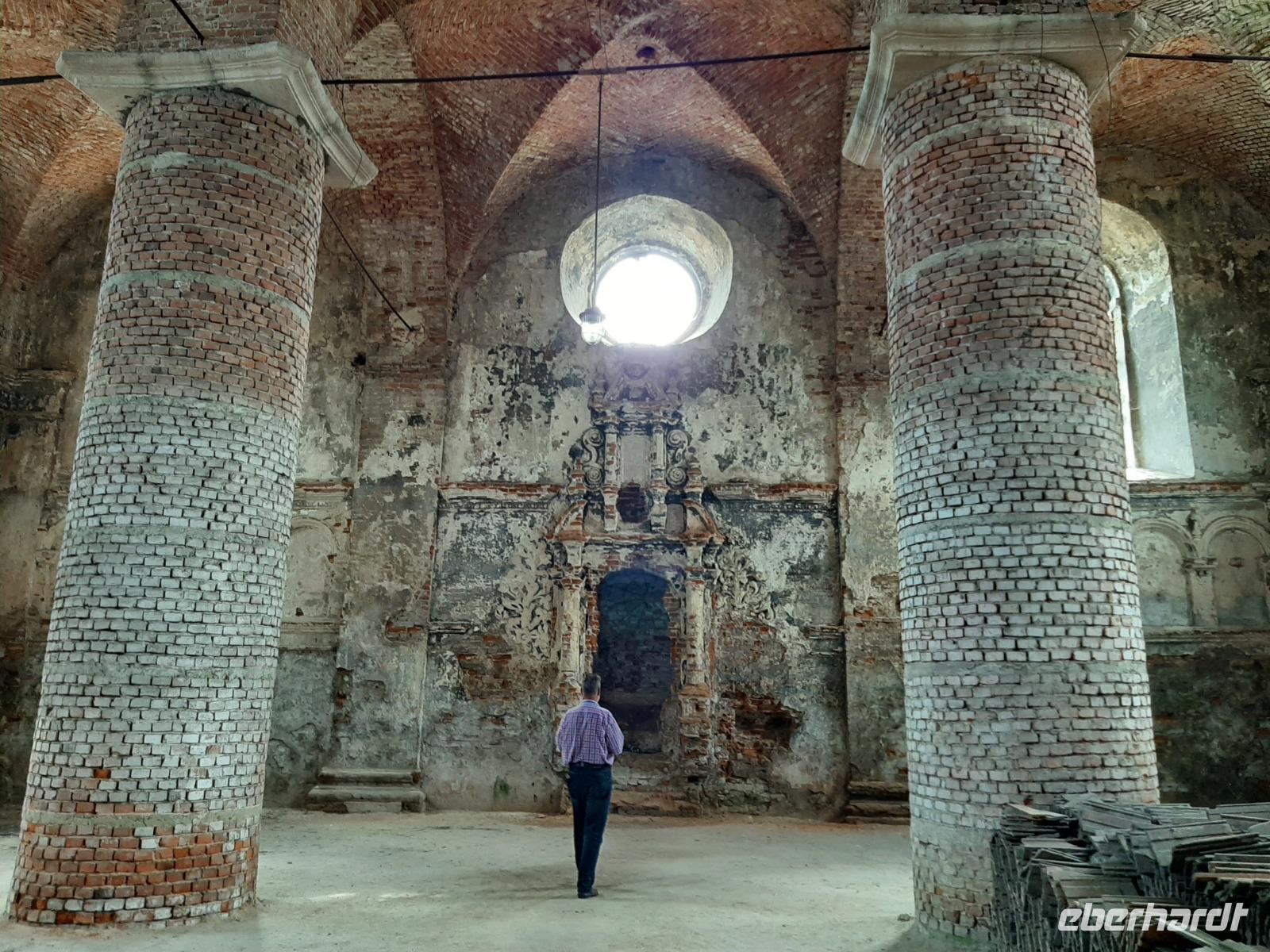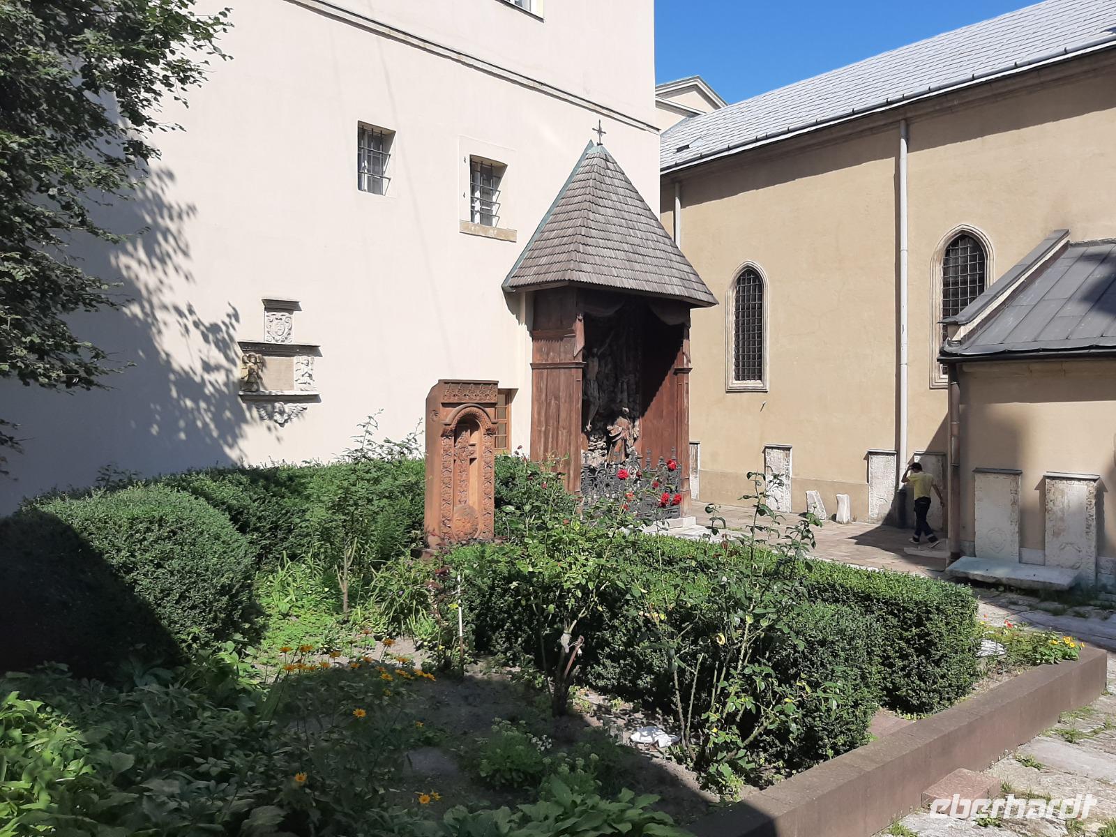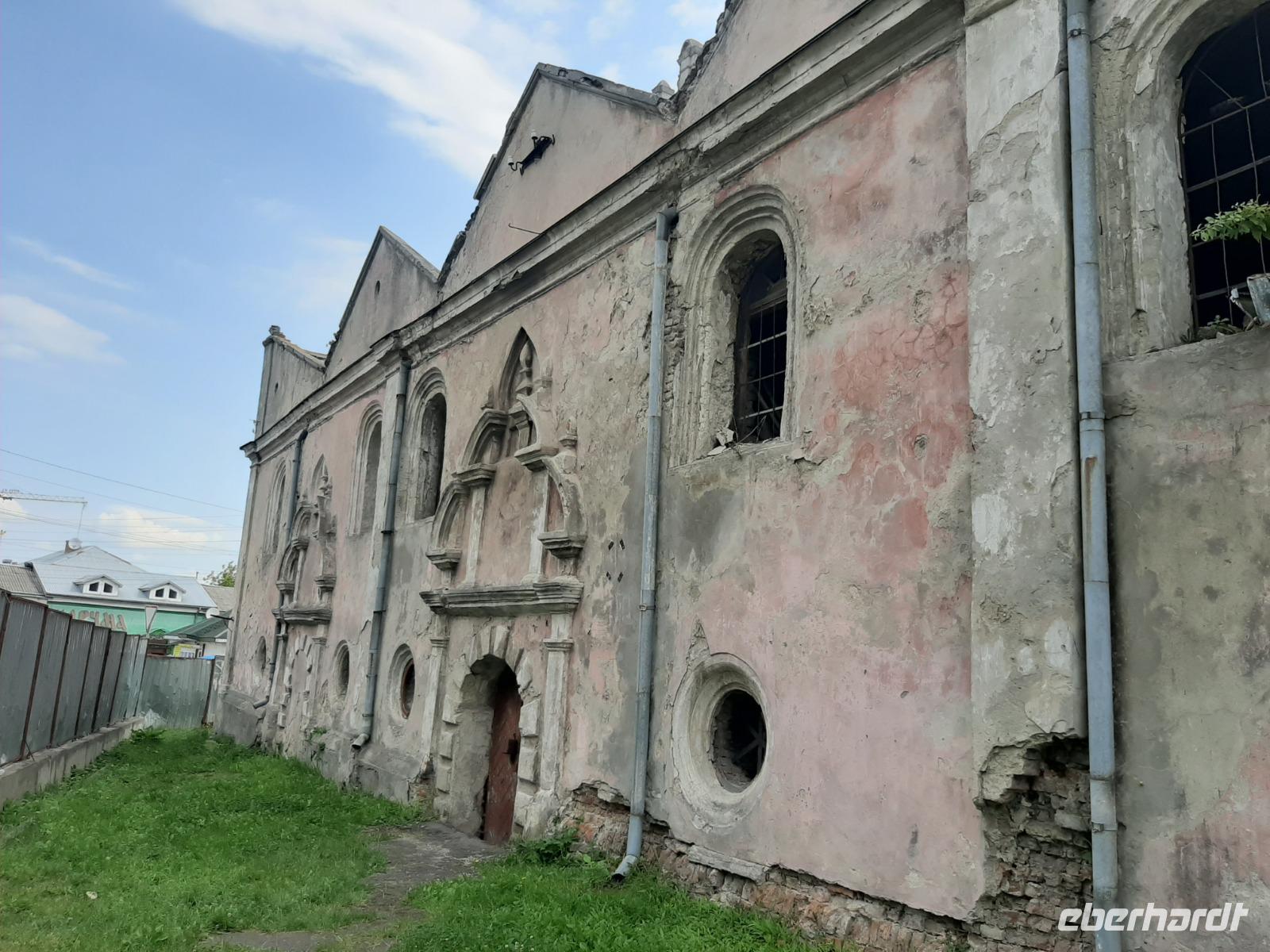 Waren wir gestern ausschließlich in Lemberg unterwegs, fahren wir heute über Land in nordwestliche Richtung, stadtauswärts zunächst durch das Gebiet des ehemaligen Ghettos und vorbei am Mahnmal für die Opfer der Nazizeit. Unser Ziel ist das etwa dreißig Kilometer entfernte Zhowkwa. Einst war das kleine Städtchen eine sogenannten Adelsstadt, das sich getreu des idealen Musters italienischer Städte entwickelte. Die Hälfte der Einwohner vor dem Krieg war jüdisch. Nachdem die Stadt im Krieg weitgehend zerstört worden war, entwickelte sich Zhowkwa zu Sowjetzeiten zu einem bedeutenden Kulturzentrum. Wir besuchen das Schloss-Museum, schlendern über den weiträumigen Marktpkatz , besuchen die Ruine der Synagoge, statten dem belebten Wochenmarkt, auf dem gerade reges Treiben herrscht, einen Besuch ab und besichtigen die Griechisch-Katholische Kirche. Zur späten Mittagszeit zurück in Lemberg verbringen wir in der Stadt unsere Mittagspause und nutzen den Nachmittag für eigene Unternehmungen. Es sei denn, man nimmt am fakultativen Stadtrundgang zum Thema „Jugenstilgebäude in Lemberg", den Dima anbietet, teil. Das Abendessen wird heute in einem Restaurant aus östereichischer Zeit gereicht. Die Atmosphäre ist gediegen mit entsprechender musikalischer Unterhaltung durch Geige und Klavier. Bekannte und unbekannte Melodien, meisterhaft dargeboten, schaffen eine schöne Stimmung und runden den Tag angenehm ab.