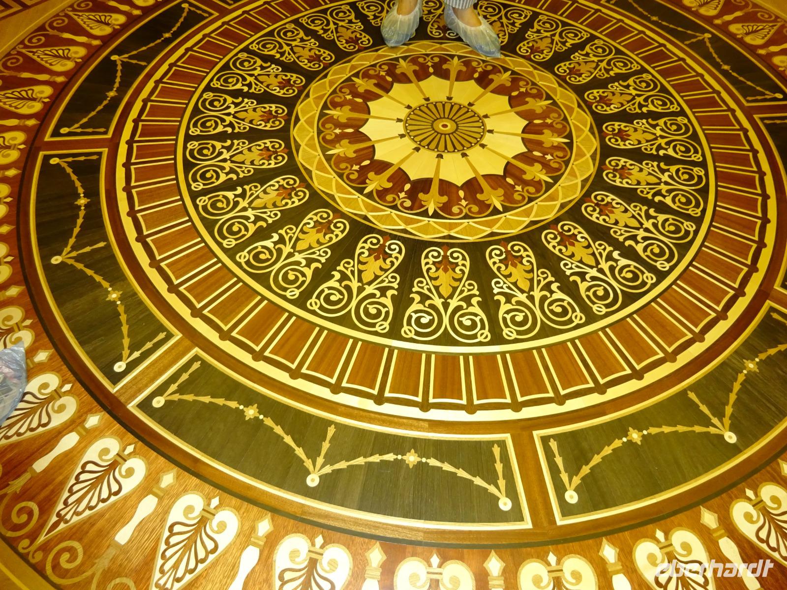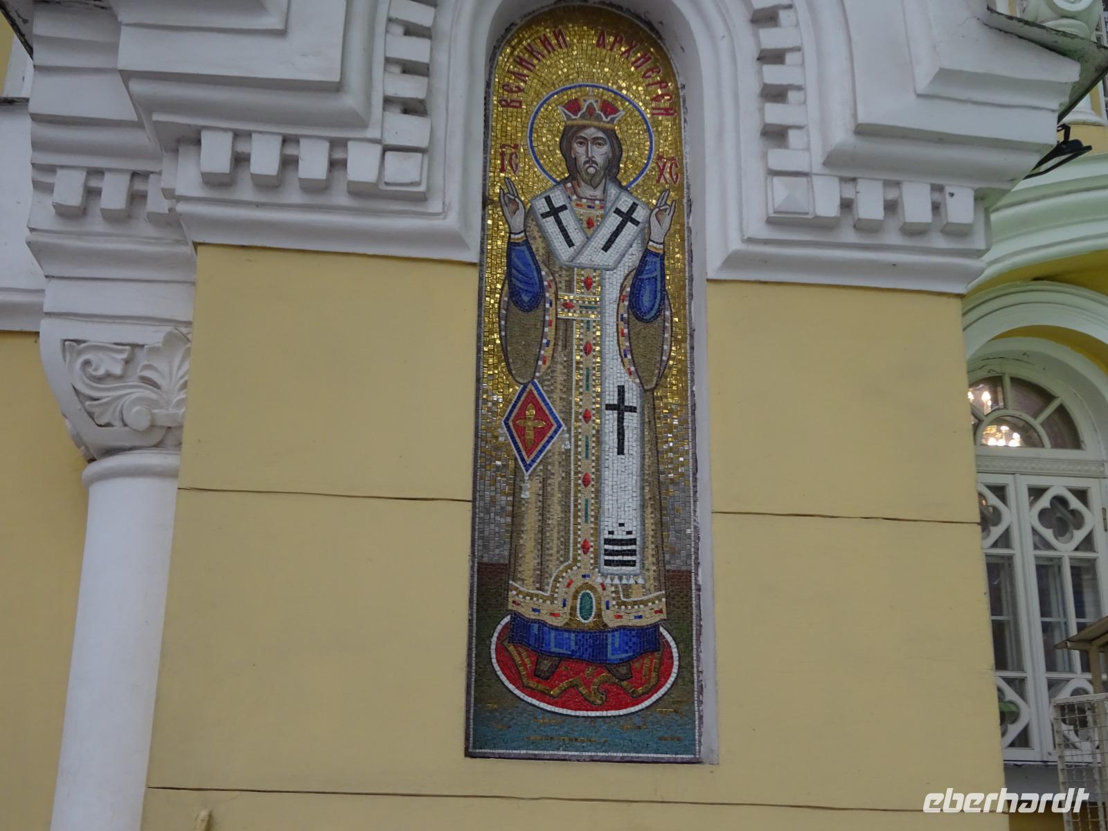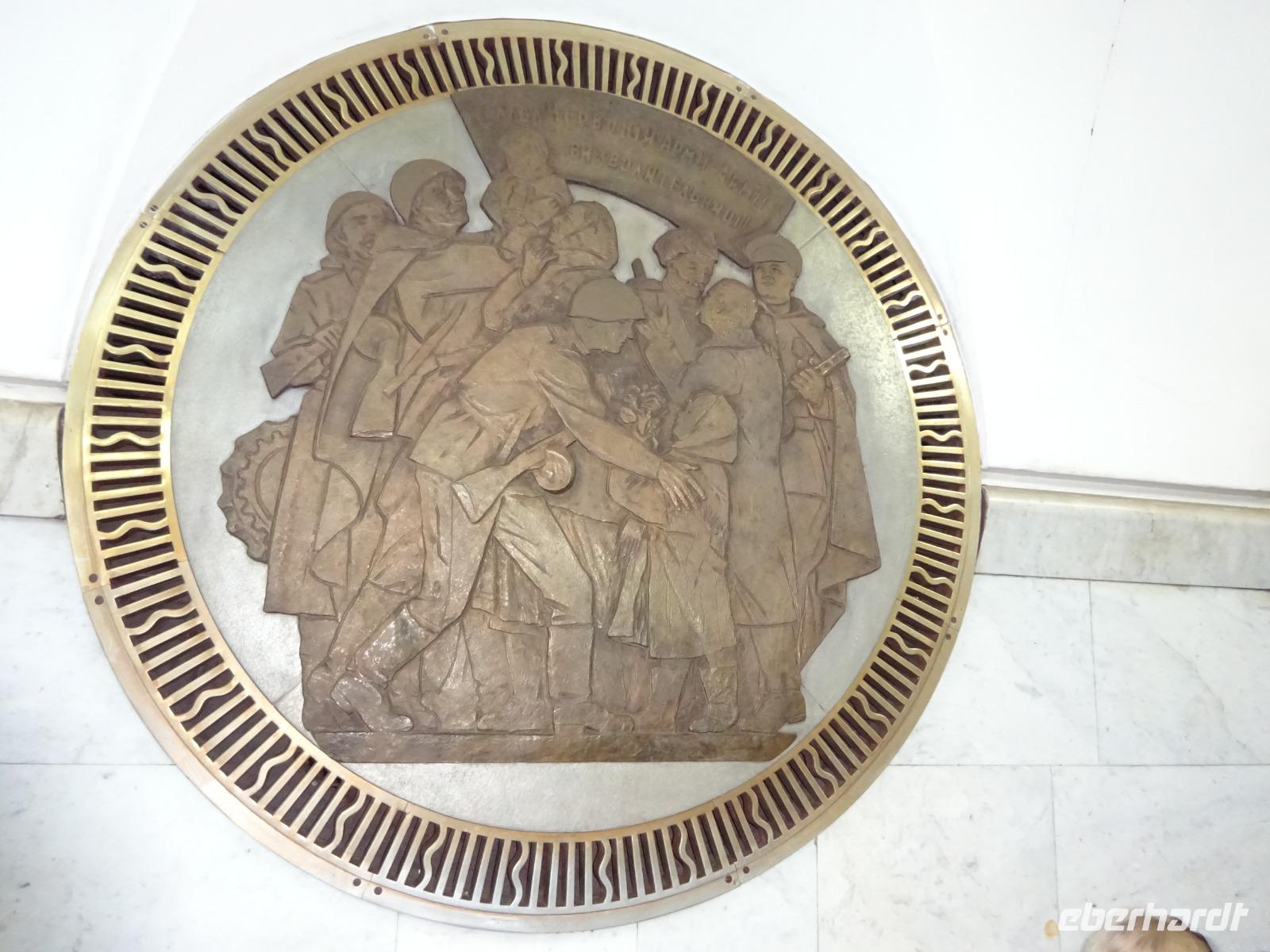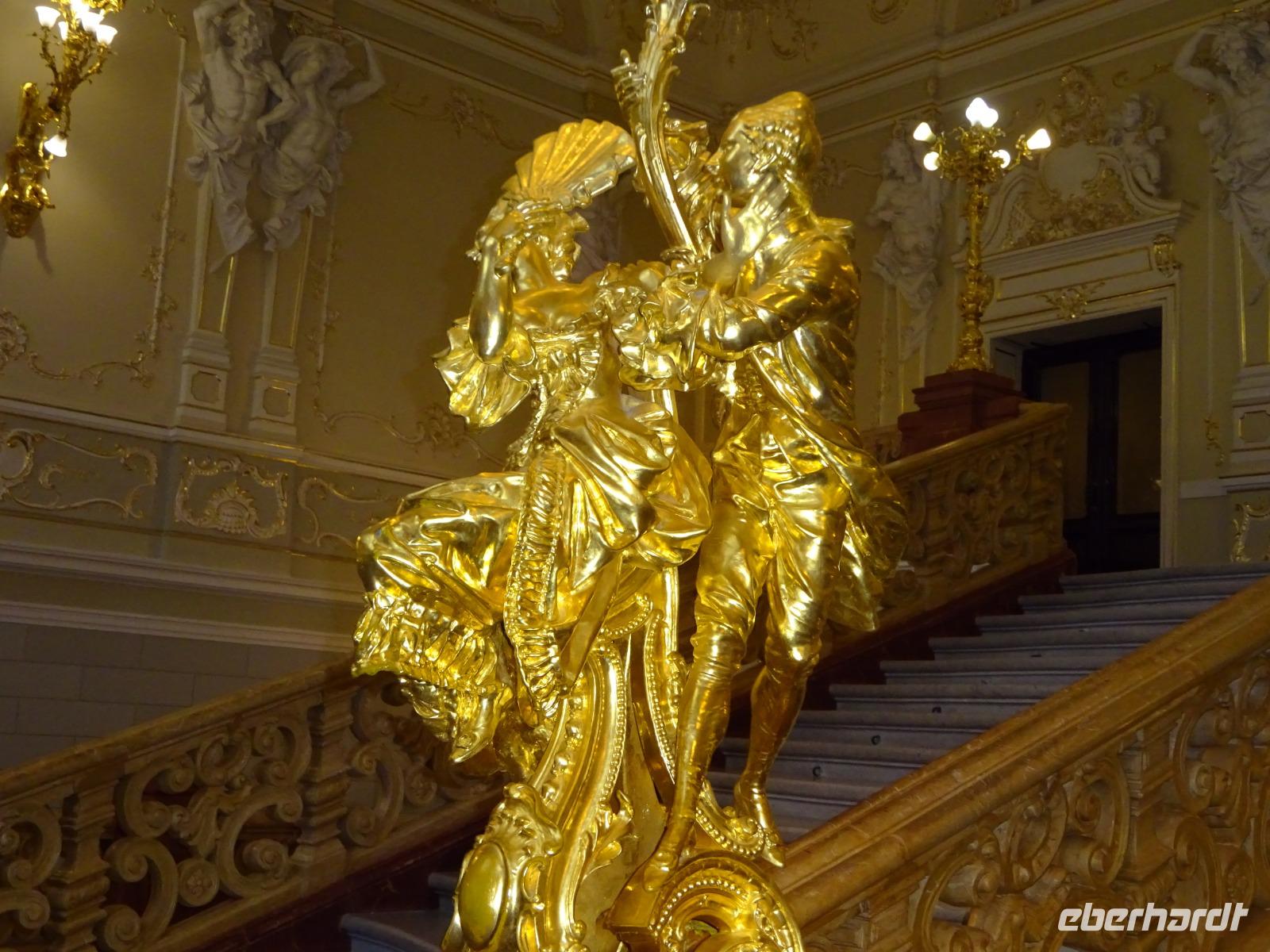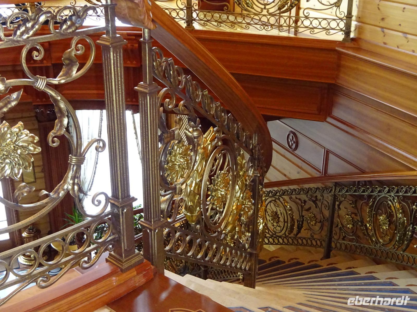 Anschließend gehen wir zum berühmten Opernhaus, wo wir von Uljana ebenfalls eine Menge erfahren, das einzigartige Treppenhaus und einen kleinen Saal sehen und bewundern können. Im großen Saal finden gerade Renovierungsarbeiten statt, die ab und zu sein müssen, und für die nur in der Spielzeitpause im Sommer Gelegenheit ist. Und einen kleinen Abstecher ins Nationalmuseum, das eine wertvolle Ikonensammlung beherbergt, schaffen wir auch noch. Uljana weiß einfach über alles sehr gut Bescheid und führt uns auch durch Teile dieser Sammlung.