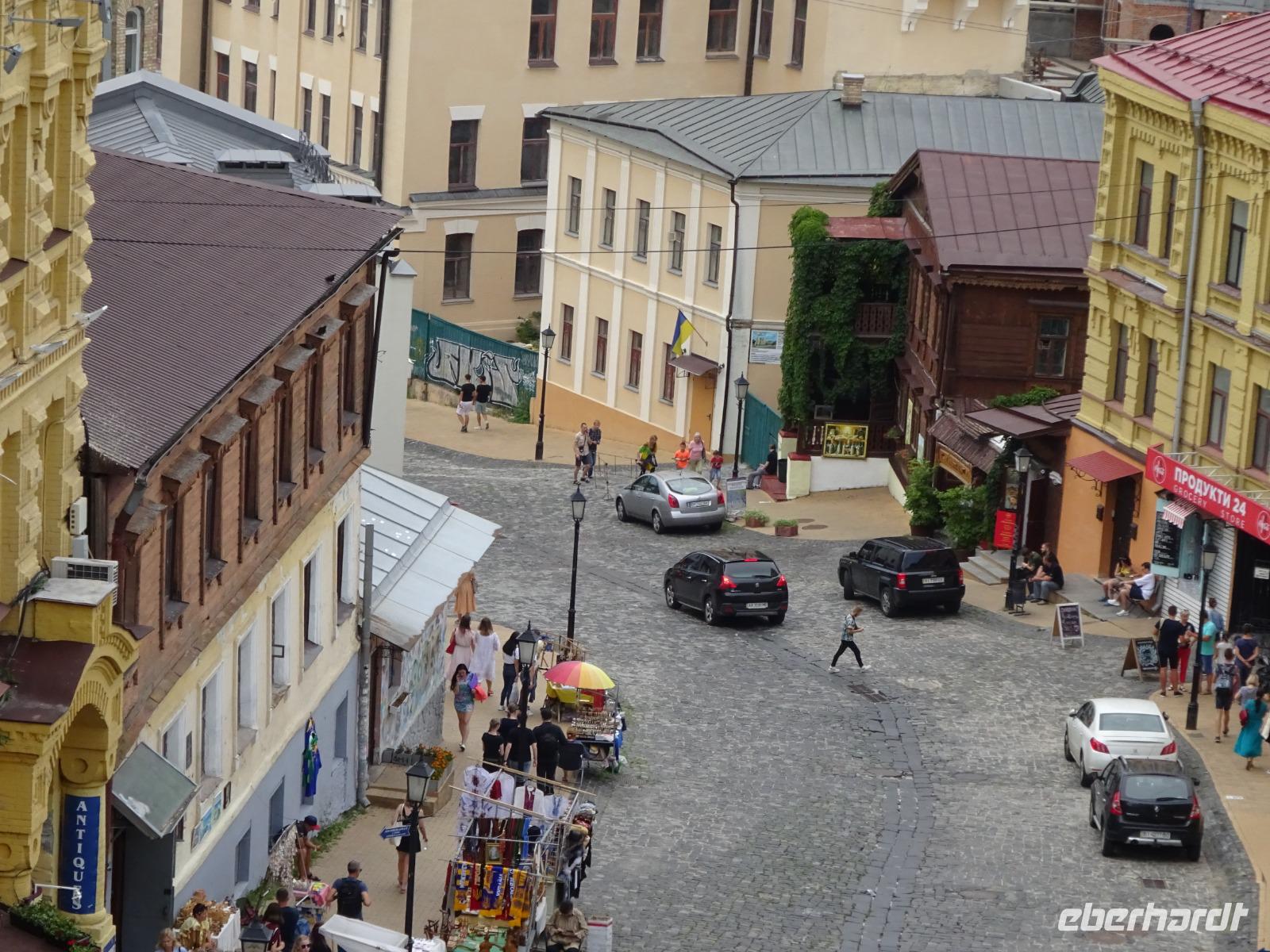 Dann fuhren wir weiter zum Andreassteig mit vielen Straßencafés und Kunstgalerien. Dort sahen wir auch die barocke Andreas-Kirche und hatten dazu eine schöne Aussicht auf die Stadt. Weiter führte uns unser Weg zur Michaelskirche, wo wir noch einen Teil einer orthodoxen Messe miterleben konnten. Die Gesänge beeindruckten uns tief.