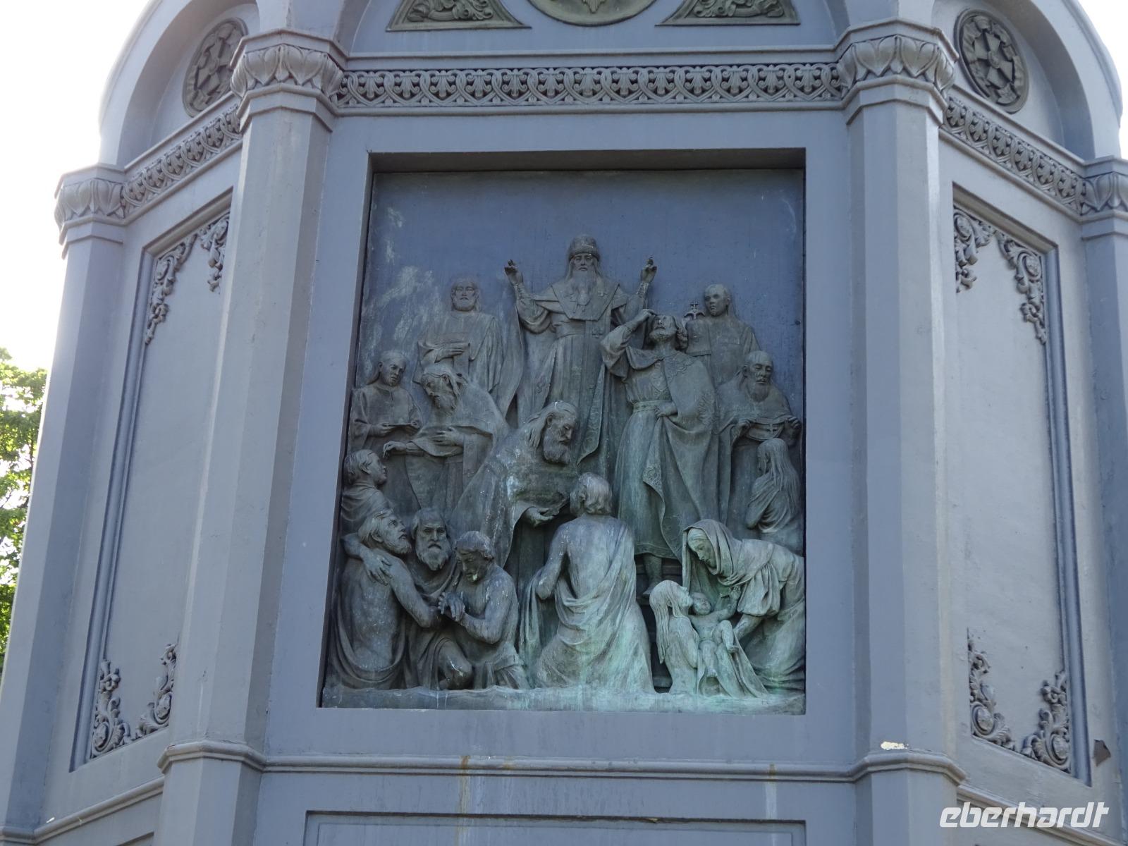 Für die Freizeit am Nachmittag hatten wir schon Pläne: zunächst wollten wir das Goldene Tor sehen, dem der russische Komponist Modest Mussorgskij in seinem Werk „Bilder einer Ausstellung" ein Denkmal gesetzt hat. Dann unternahmen wir eine kleine Rundfahrt mit der Kiewer Metro, besichtigten einige Stationen und endeten an unserem Hotel. Aber unser Wunschprogramm ging noch weiter: wir spazierten zum Denkmal des Hl. Vladimir [ukrain.: Volodymyr], auch um es zu fotografieren. Volodymyr hat durch seine Taufe im Jahre 988 die Taufe und damit die Christianisierung seines Volkes initiert. Und wir sahen auch noch die neue Brücke, die zum Denkmal führt. Der Bürgermeister Klitschko hat diese Brücke gestiftet. Von oben konnten wir nun gut das Denkmal sehen, das an die Bewidmung der Stadt Kiew mit Magdeburger Recht erinnert. Das war heute ein wirklich randvolles Programm.