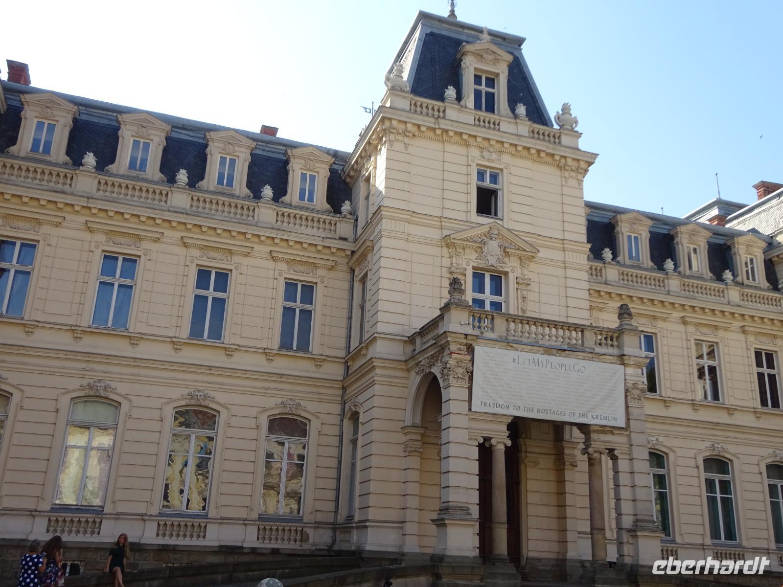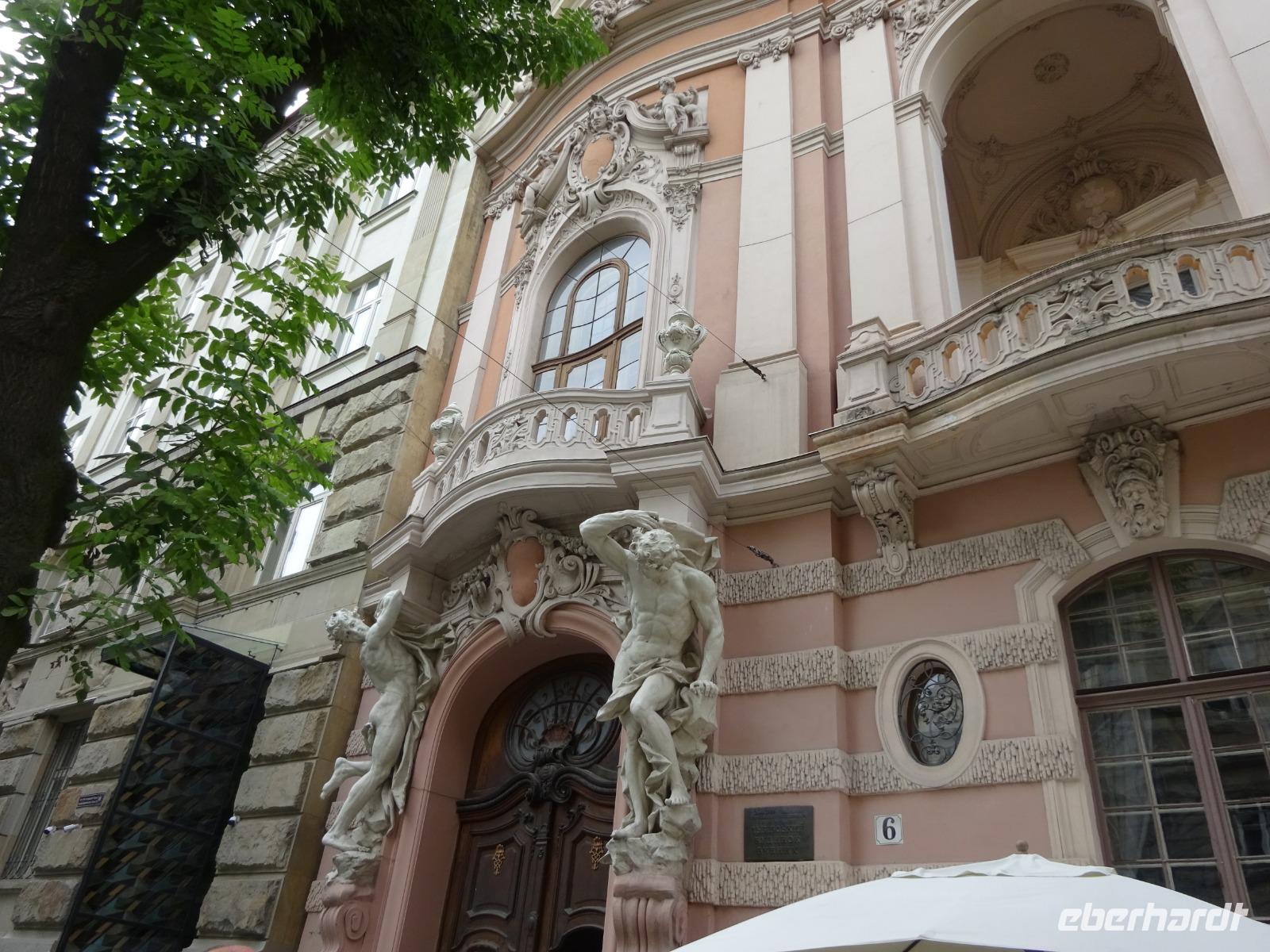 Mit frischen Kräften starten wir unser heutiges Programm. Zunächst haben wir einen Besuch im Palast des Grafen Potozki [ukrainisch Potoc'kyj] geplant. Dies ist ein ganz besonderes Gebäude: prächtig und imposant, erbaut im Stil der französischen Neo-Renaissance vom Ende des 19. Jh. Hier ziehen uns Reliefs, Wandmalereien, Verglasungen und die zahlreichen Stuckaturen in ihren Bann. Nicht nur die Räume sind sehr schön, auch Gemälde von Weltrang kann man hier bewundern.