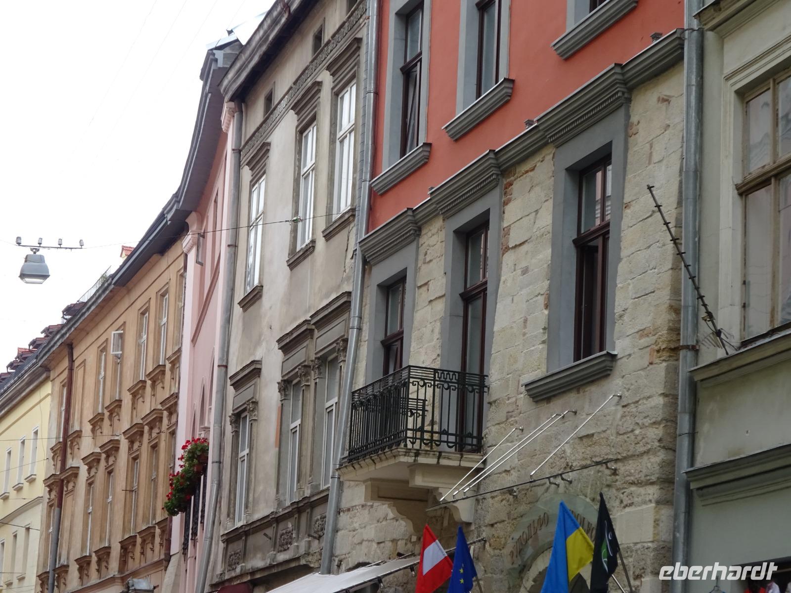Immer wieder kommen wir durch neue Gassen und Straßen, über belebte Plätze, sehen einladende Restaurants und jede Menge Kaffeehäuser. Überhaupt erfahren wir viel über die Kaffee-Kultur hier, aber auch über das Bierbrauen und über die Schokoladen-Herstellung, die hier ebenfalls eine Tradition hat. Die k&k-Vergangenheit dieser wunderbaren Stadt ist einfach überall spür- und auch sichtbar. Wir lernen viel über die Beziehungen zwischen Polen, Russland und Österreich, was uns die Gegenwart besser verstehen lässt. Uliana erklärt wirklich alles sehr gut, bezieht immer wieder typische Gebäude ein, weist auf Details hin.