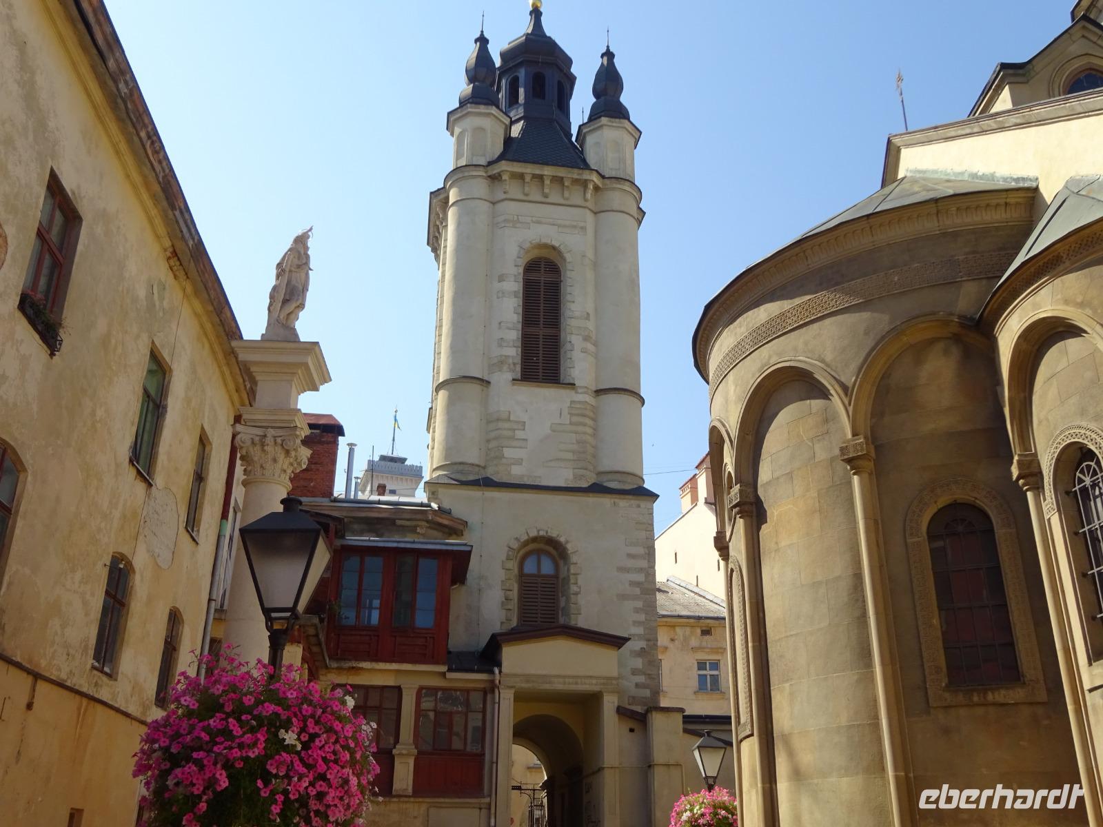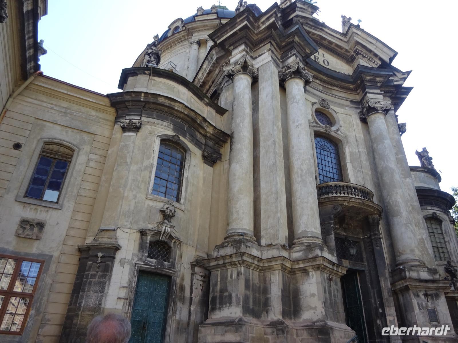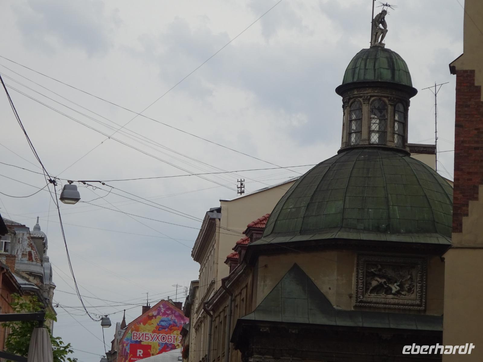 Nach dem Frühstück haben wir mit Uliana einen ausführlichen Stadtrundgang. Es wird uns schnell klar, warum die Altstadt Lembergs in die UNESCO-Weltkulturerbe-Liste aufgenommen wurde. Die Stadt ist voller einmaliger historischer Gebäude. Ein Kulturdenkmal nach dem anderen zeigt sich uns.