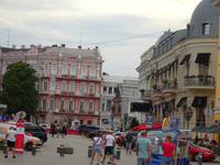 Auf dem Weg zum Hotel gibt es auch hier bereits erste Informationen von unseren örtlichen Reiseführer Stas. Und gleich soll auch unser Programm hier beginnen. Eine kurze Erfrischungspause im Hotel, und schon geht es los. Wir gehen durch die Stadt, lernen die wichtigsten Baudenkmäler kennen und bewundern. Odessa wird auch das „südliche Palmyra" genannt. Wir spazieren durch einen Park, sehen die weltberühmte Odessaer Oper, ein Entwurf des Wiener Architektenbüros Helmer & Fellner. Aber die Oper werden wir noch genauer betrachten können, wir werden sogar zu einer Aufführung gehen. Wir kommen vorbei am Rathaus direkt an der schönen Promenade. Dort steht auch ein Puschkin-Denkmal. Natürlich wollen alle die Potemkinsche Treppe sehen und den Hafen. Der ist unser nächstes Ziel, denn ein Schiff wartet schon auf uns. Wir unternehmen eine nun schon abendliche Rundfahrt im Hafen und fahren auch ein Stück hinaus. Auf der Rückfahrt ist Odessa schon wunderschön abendlich beleuchtet. So schlendern wir etwas müde, aber voller Eindrücke zum Hotel. Zunächst geht es die Potemkinsche Treppe hinauf. Natürlich gibt es auf der Weg zum Hotel jede Menge weiterer Informationen und Sehenswürdigkeiten. Stas ist ja mit uns unterwegs. Wir gehen vorbei am Denkmal für Katharina II., kommen noch einmal an der prächtige De Ribas Straße, d.h. der beliebten Flaniermeile der Stadt mit ihren zahlreichen Boutiquen und Restaurants vorbei. Sie ist ganz in der Nähe unserer Hotels.