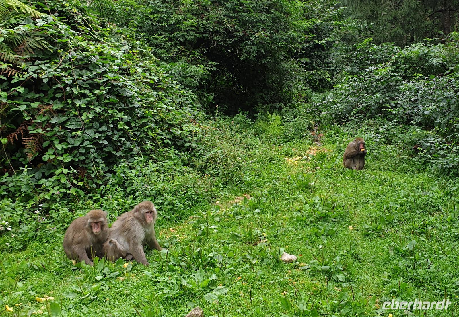 Die dort fast ihrem natürlichem Habitat entsprechend gehalten Makaken werden uns bei einer Führung präsentiert. Der Schwerpunkt der Anlage hier liegt auf der Erforschung des Sozial- und Lernverhaltens der Primaten. So wird auch der Rundgang durch verschiedene Lernaufgaben für die Tiere, wie die Bedienung der "Apfelmaschine" unterhaltsam aufgelockert.
