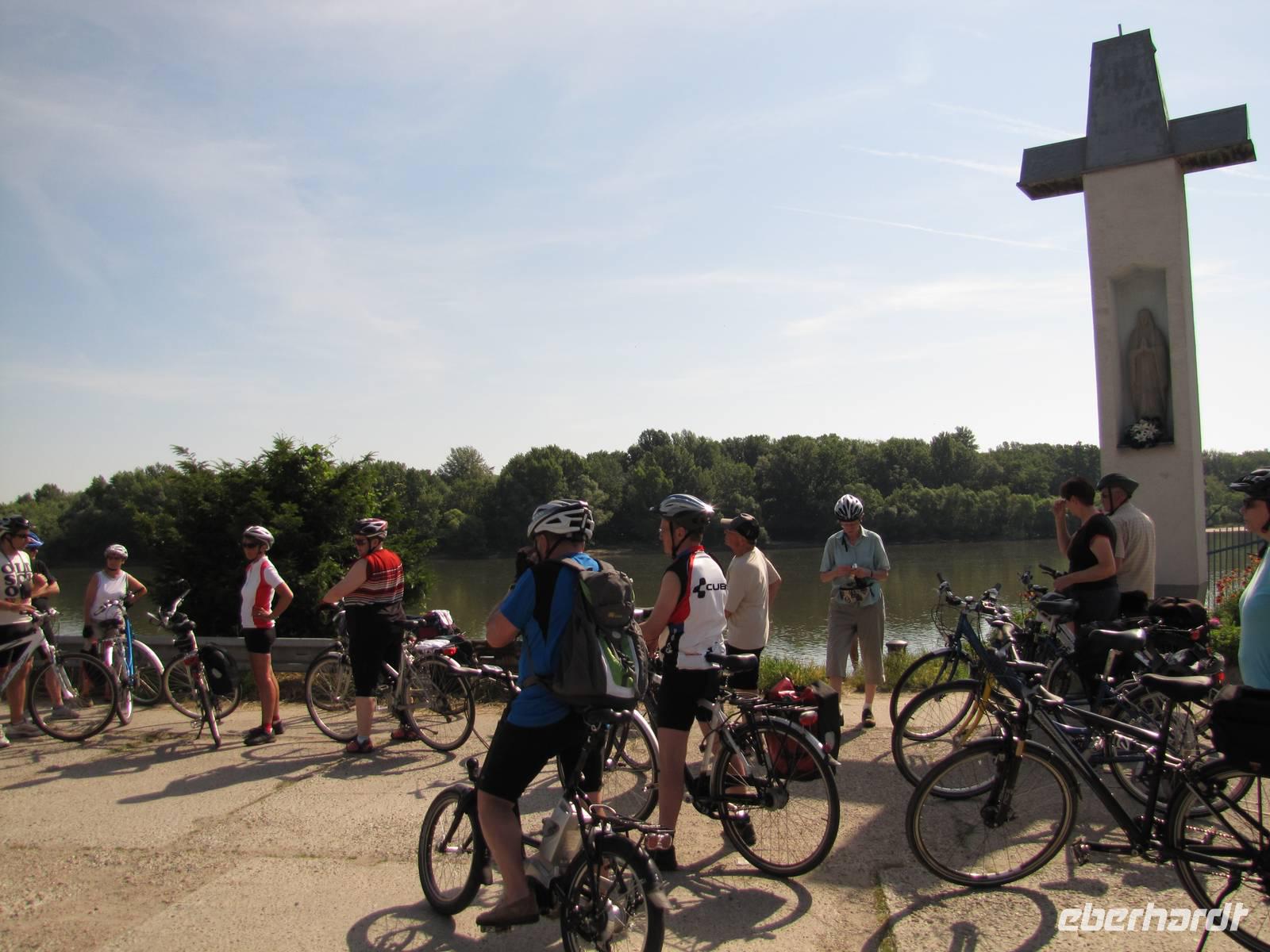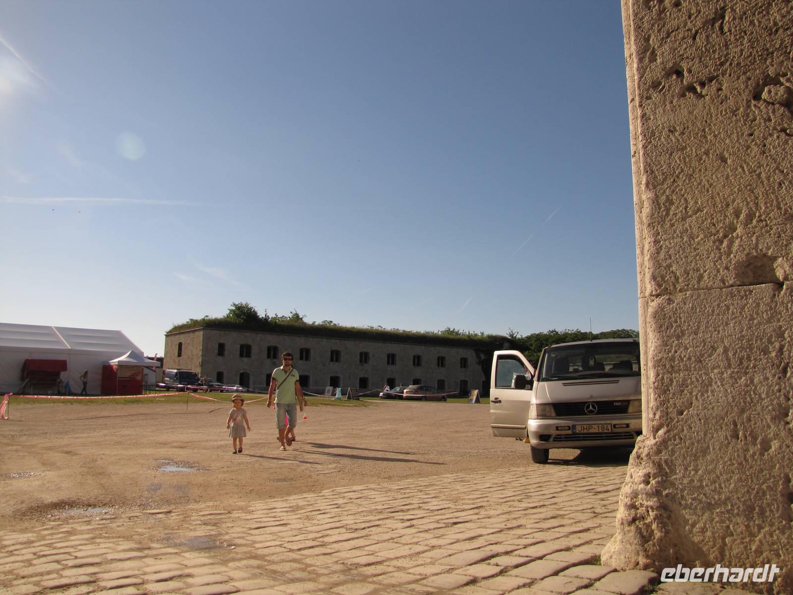 Der Busfahrer und ich luden die Räder ein, währenddessen die Gruppe eine kleine Stadtführung durch Györ unternahm. Nach dem kleinen Rundgang hatte jeder von uns noch etwas Zeit für ein Eis oder ein kühles Bier. Gegen 17:00Uhr fuhren wir wieder zurück zum Hotel. Unterwegs stoppten wir noch einmal für einen kurzen Fotostopp an einer alten Befestigungsanlage aus dem 19. Jahrhundert. Dort wollte sich der kaiserliche Hofstab zurück ziehen, falls Napoleon Wien angegriffen hätte. Nach einem langen aber sehr schönen ersten Radtag erreichten wir gegen 18:00Uhr wieder unser Hotel. Nach dem Abendessen hatte jeder noch etwas Freizeit um die Erlebnisse des Tages auszuwerten. ;-)