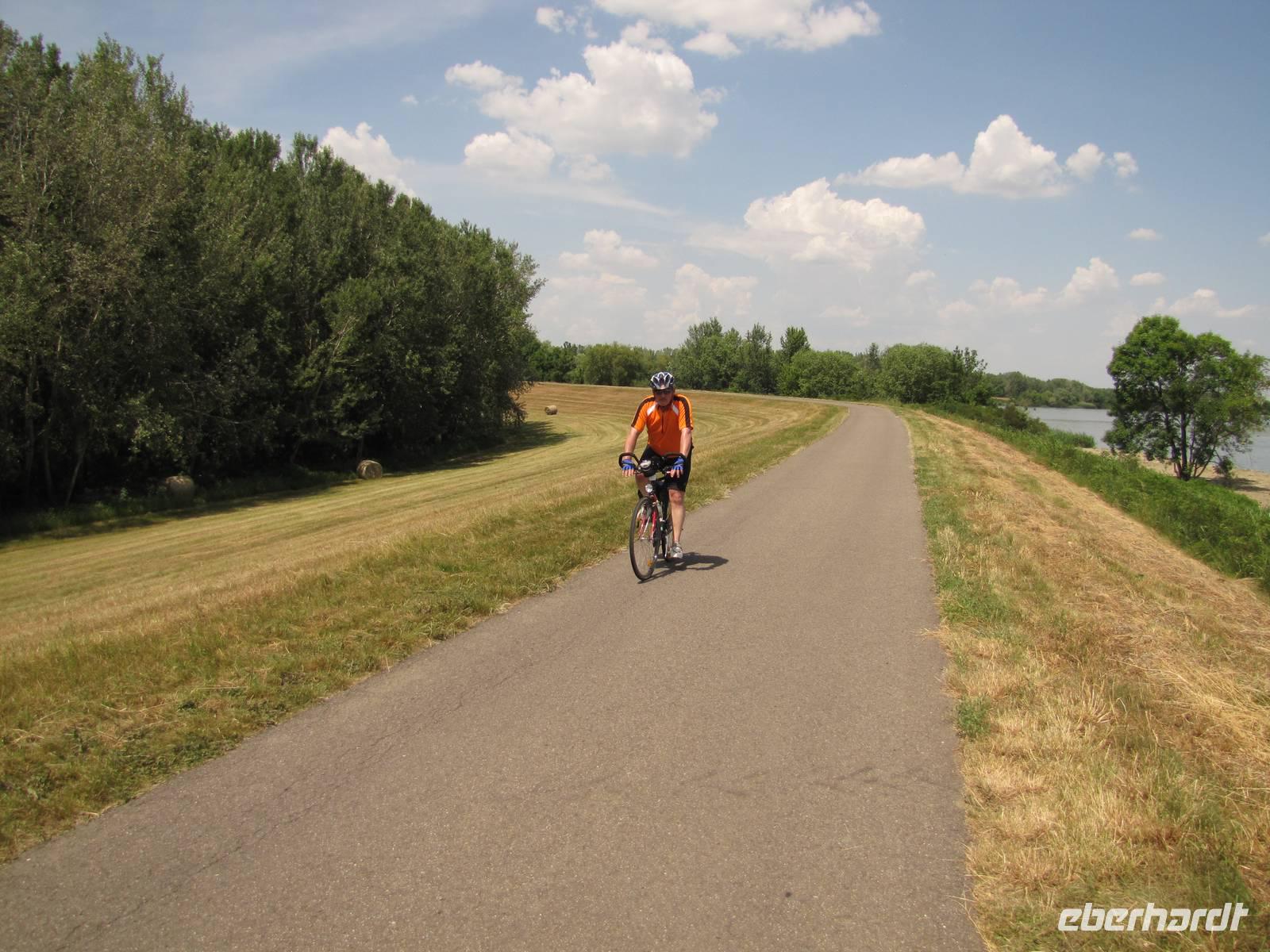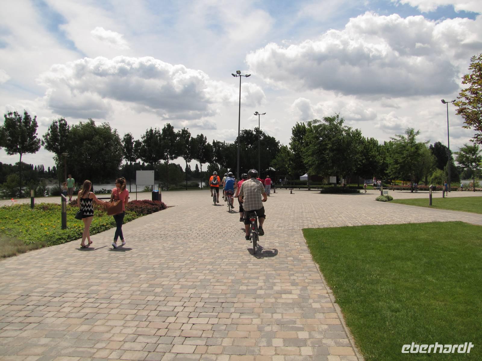 An unserm ersten Radtag führte uns die Tour von Wieselburg nahe der österreichischen Grenze in die Audi-Stadt nach Györ. Zunächst fuhren wir mit dem Bus vom Hotel aus zum Ausgangspunkt der Radtour. Unterwegs erklärte unser Reiseleiter Gabor schon einiges interessantes über die Region und vor allem über die Stadt Györ. Nach dem Räder ausladen starteten wir gegen 10:00 Uhr mit unserer Radtour. Unterwegs stoppten wir immer einmal für ein paar kleine Fotostopps und interessanten Erklärungen von Gabor. Als wir in der kleinen Ortschaft Hedervar ankamen konnten wir ein tolles Gruppenfoto vor einem Schloss aus dem 18. Jahrhundert machen und anschließend eine kleine Mittagspause in einem kleinen Biergarten einlegen. Nach ca. einer Stunde ging es gemütlich weiter auf entlang schöner Radwege auf der größten Donauinsel, dem Donauknie.