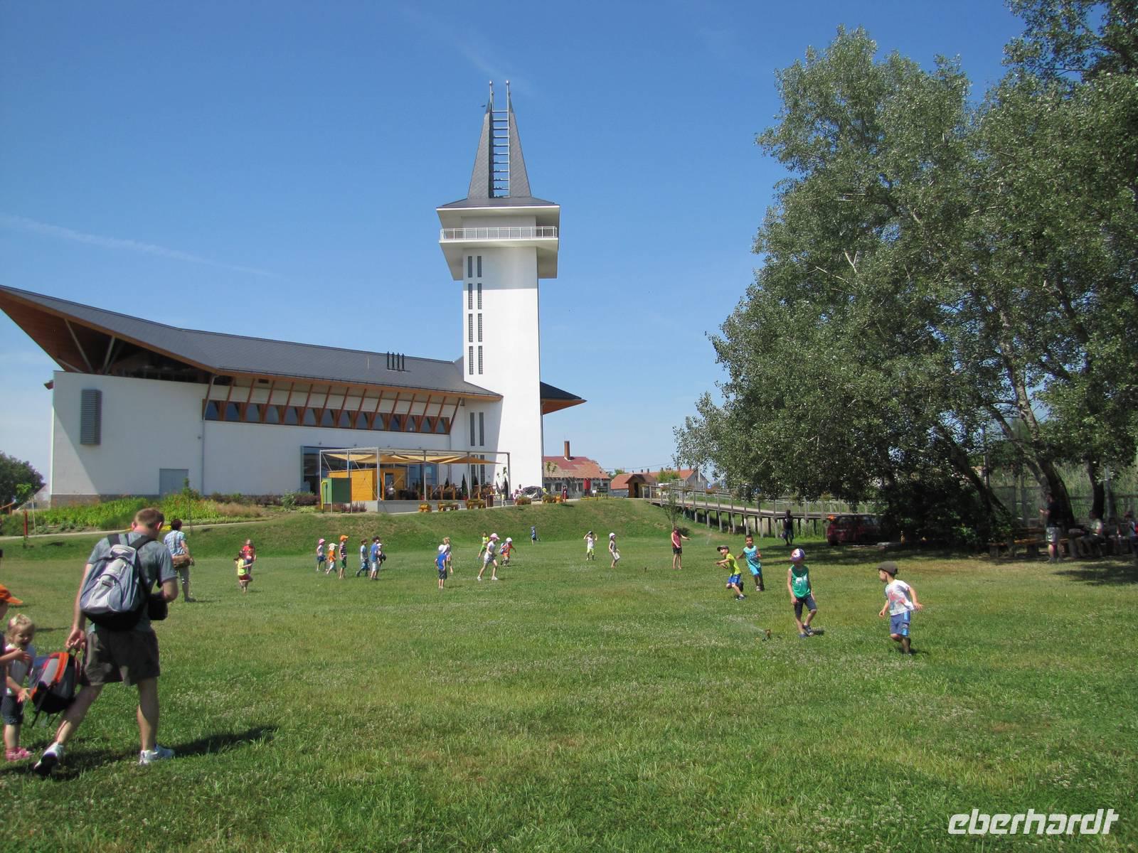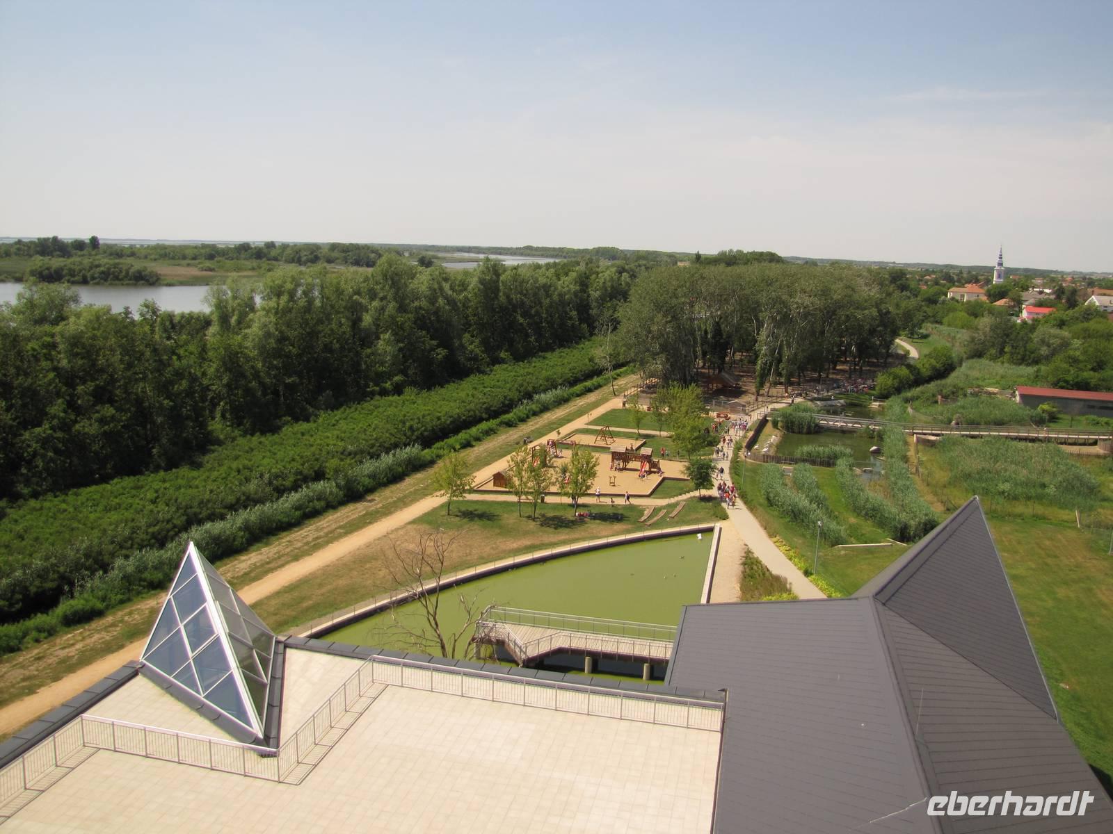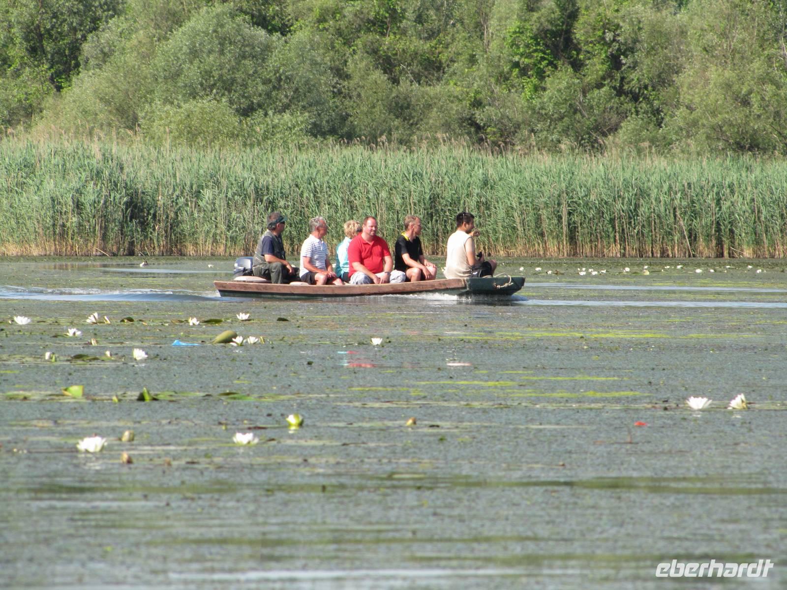 Bereits um 8:00Uhr fuhren wir nach dem Frühstück mit dem Bus in Richtung Tiszafüred, da wir eine Überraschung für die Gäste hatte. Wir fuhren mit 5 kleinen Booten durch die Flora & Fauna des Theiss-Sees und beobachteten viele Vögel und andere Tiere der Region. Ein toller Einstieg in den Tag! Nach einer Stunde Bootsfahrt ging es gleich weiter mit der Besichtigung des Ökozentrums von Poroszlo. Dort befindet sich das größte Süßwasseraquarium Ungarns, mehrere Terrarien, ein Otterbecken, ein Aussichtsturm und mehrere kleine Zooanlagen für Tiere aus der Region. Nach dieser tollen Besichtigung fuhren wir mit dem Bus zum Ausgangspunkt der Radtour. In der Gruppe beschlossen wir nur die ersten 25km. zu fahren, aufgrund der Hitze und um die schöne Poolanlage vom Hotel nutzen zu können. Nach der Mittagspause am Bus luden wir die Räder in den Hänger ein und fuhren ca. 2 Stunden bis zum nächsten Hotel nach Lajosmizse.
