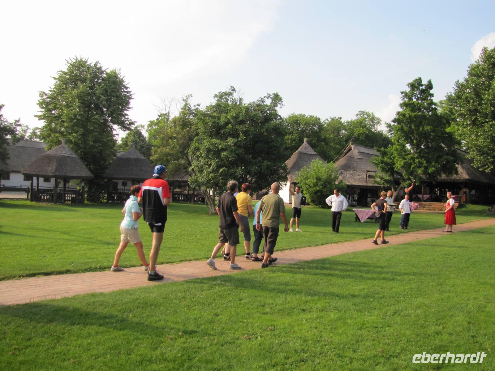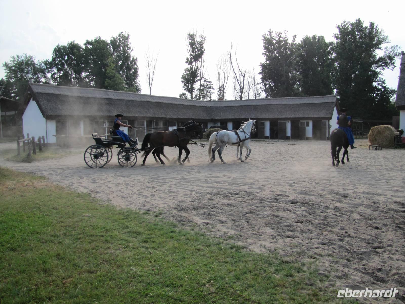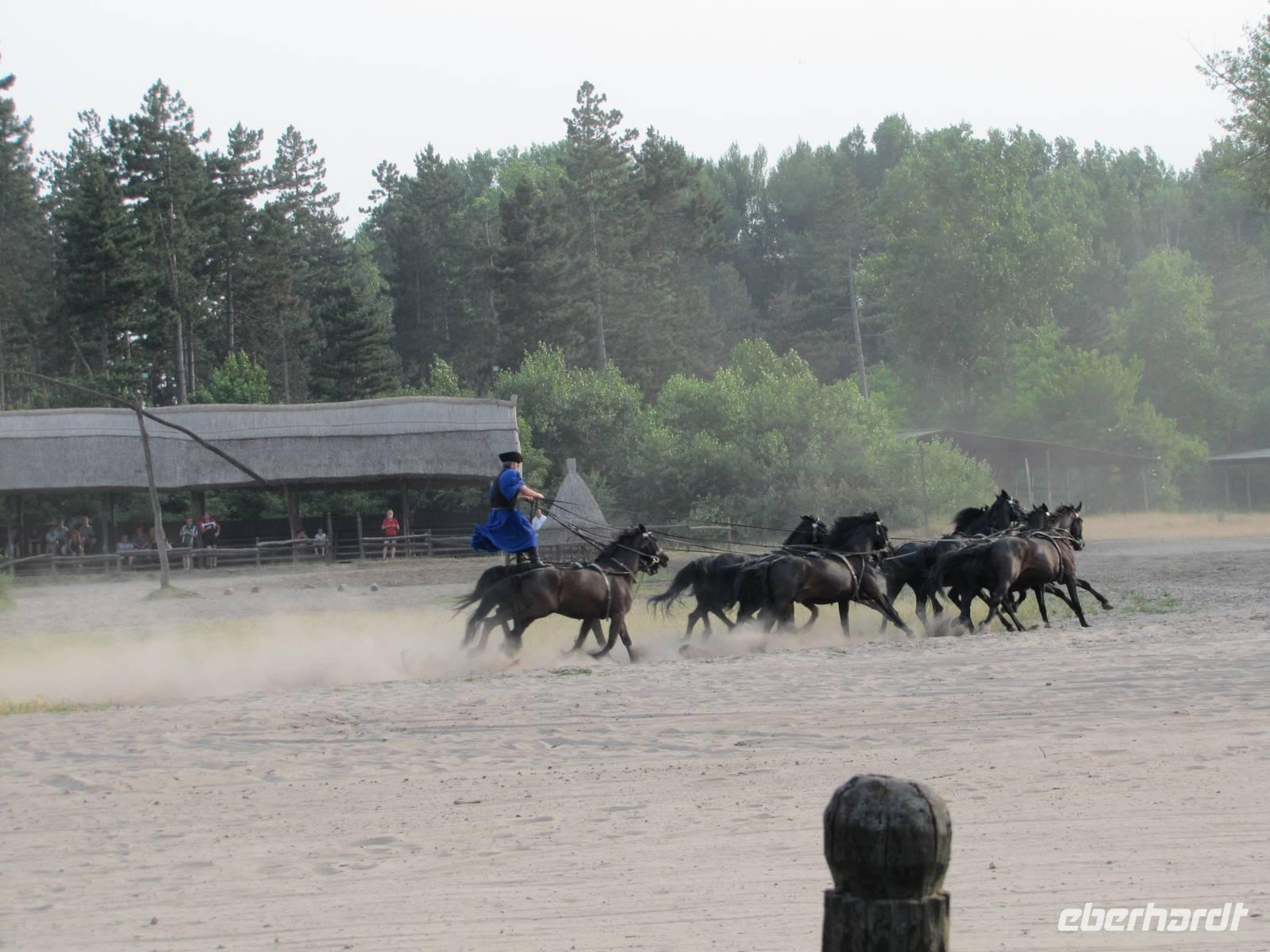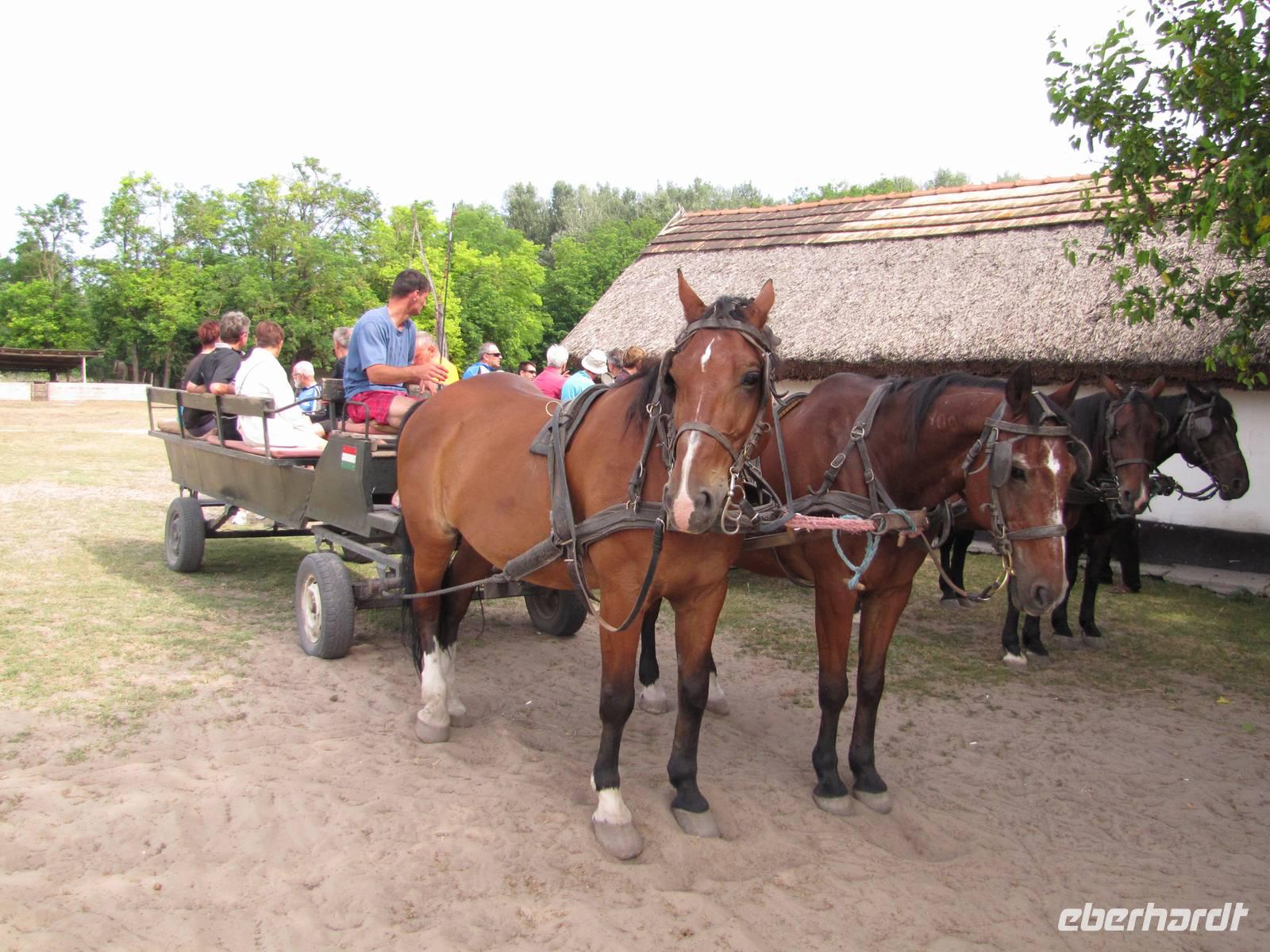 Gegen 17:00Uhr erreichten wir das Hotel Varga Tanya und besuchten als erstes die Reitershow, die vom Hotel täglich angeboten wird. Anschließend hatte jeder noch etwas Freizeit bis zum Abendessen. Die meisten vergnügten sich im schönen großen Pool. Beim Abendessen wurden wir durch sanfte Geigenmusiker unterhalten, die den einen oder anderen Spaß auf Lager hatten. Bei viel Wein ließen wir den Abend zur WM- Eröffnung an der Bar ausklingen.