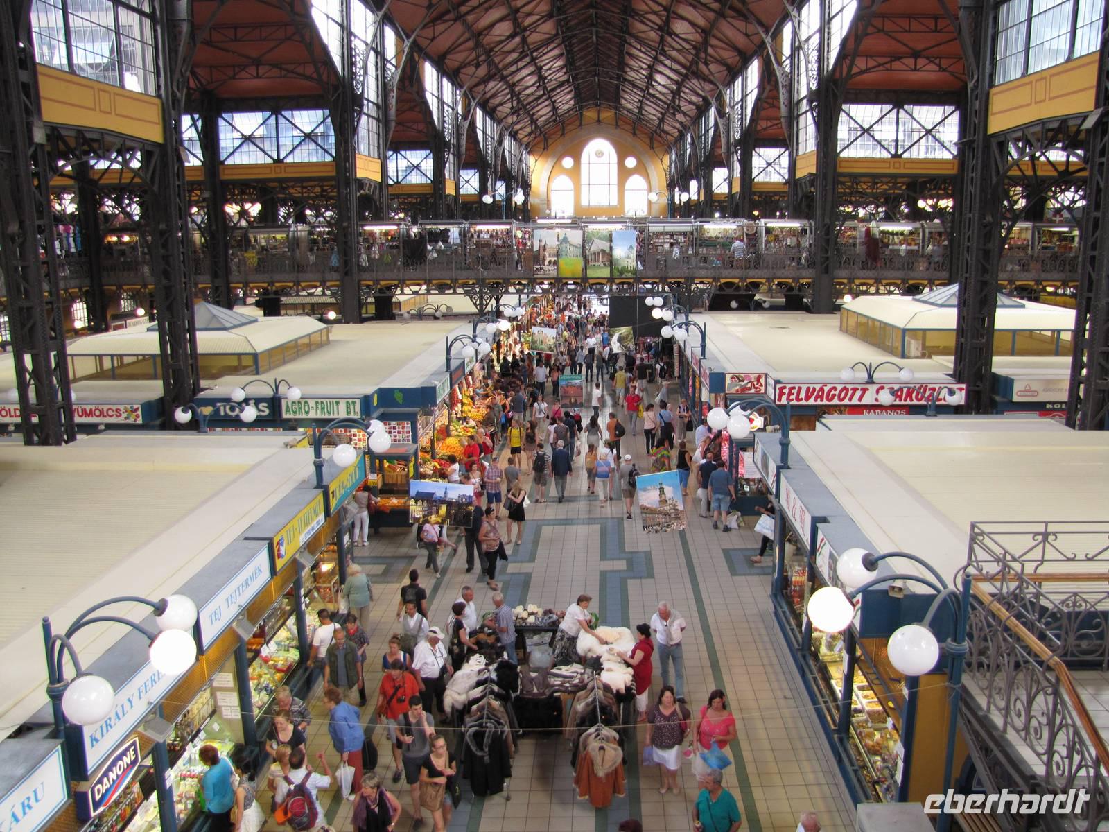 Heute hieß es Abschied nehmen von der wundervollen Hotelanlage. Doch vorher unternahmen wir noch eine kleine Pferdekutschfahrt zu einem traditionellen Bauernhof ganz in der Nähe. Wir besuchten eine Bauernfamilie die fast autark von ihren eigenen Produkten lebt. Wir besichtigten die Tierställe mit den Hühnern, Schweinen und Schafen. Wer wollte konnte hier auch Produkte aus der Region kaufen. Besonders angesagt war die hausgemachte ungarische Salami oder der Rapshonig. Danach fuhren wir wieder rasant auf den staubigen Feldwegen zurück zum Hotel von wo aus wir mit dem Bus in Richtung Budapest fuhren. In Süd-Budapest angekommen luden wir die Räder aus und starteten mit unserer letzten gemütlichen Radtour entlang der Donau und durch das Stadtzentrum. Als erstes stoppten wir für eine längere Pause an der größten Markthalle von Budapest, wo sich jeder mit typisch ungarischen Produkten eindecken konnte.