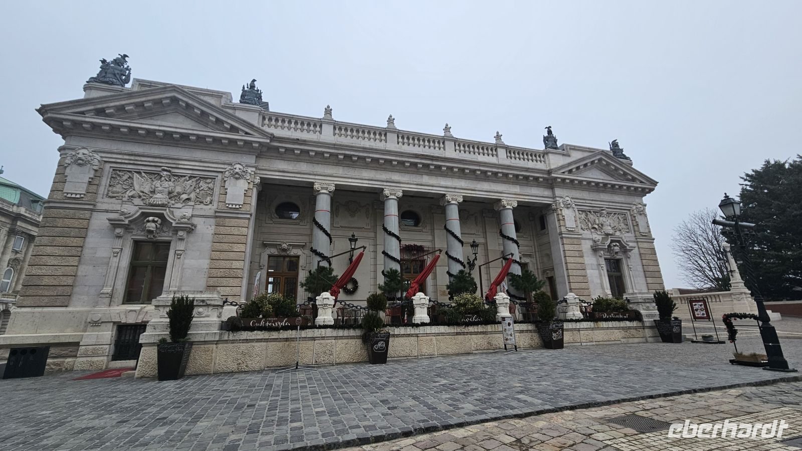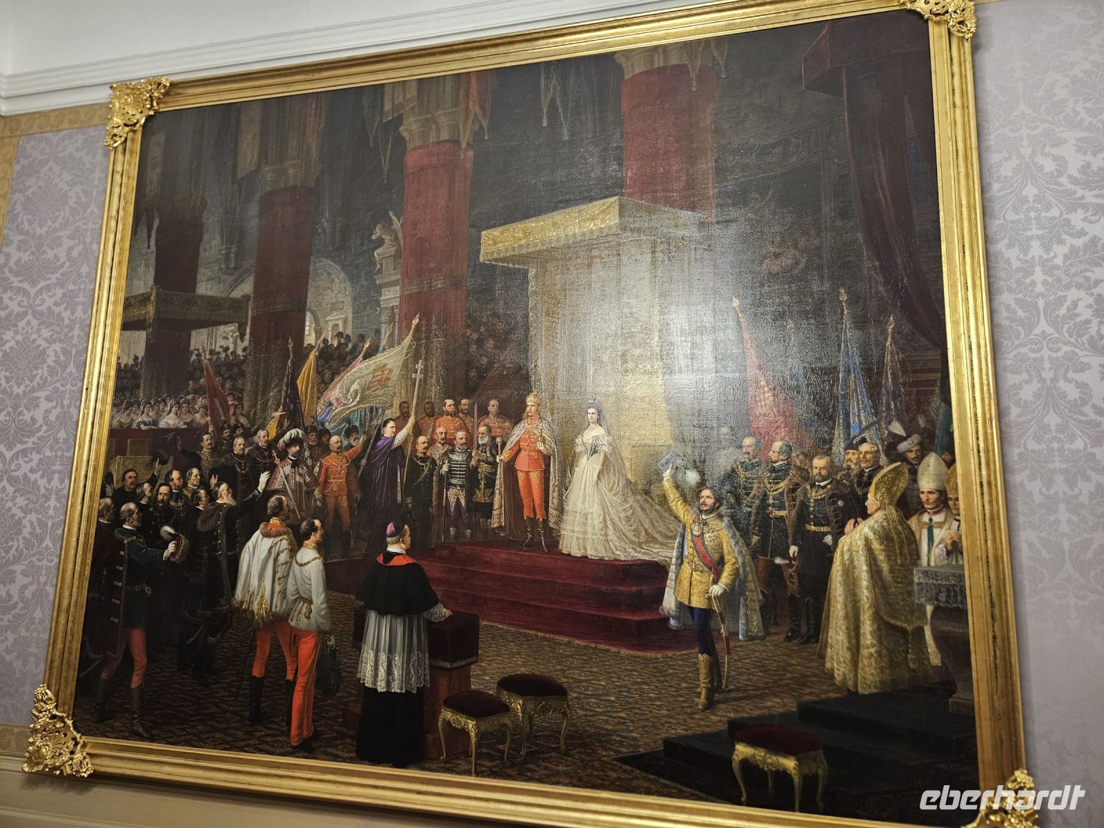 Alle anderen Gäste haben den Vormittag entweder zum Ausschlafen genutzt oder die Stadt auf eigene Faust erkundet. Pünktlich um die Mittagszeit, holt uns Szilvia ab und es geht nach Gödöllo. Das Wetter scheint uns auf unseren heutigen Besuch einstimmen zu wollen, denn es geht durch ein Winterwunderland zum Sisi- Schloss. Dort empfängt uns eine örtliche Schlossführerin und zeigt das Schloss und seine kleinen Geheimnisse. Besonders die Gemächer von Franz und Sisi sind beeindruckend. Nach einem leckeren Stopp im Schloss- Café kommen alle langsam zum Bus zurück, wo Sven eine kleine Überraschung für uns bereithält: einen Eierlikör aufs Haus!! Frisch gestärkt mit Eierlikör und Bockwurst geht es zurück zum Hotel, wo genug Zeit bleibt, um sich hübsch zu machen für den Abend.