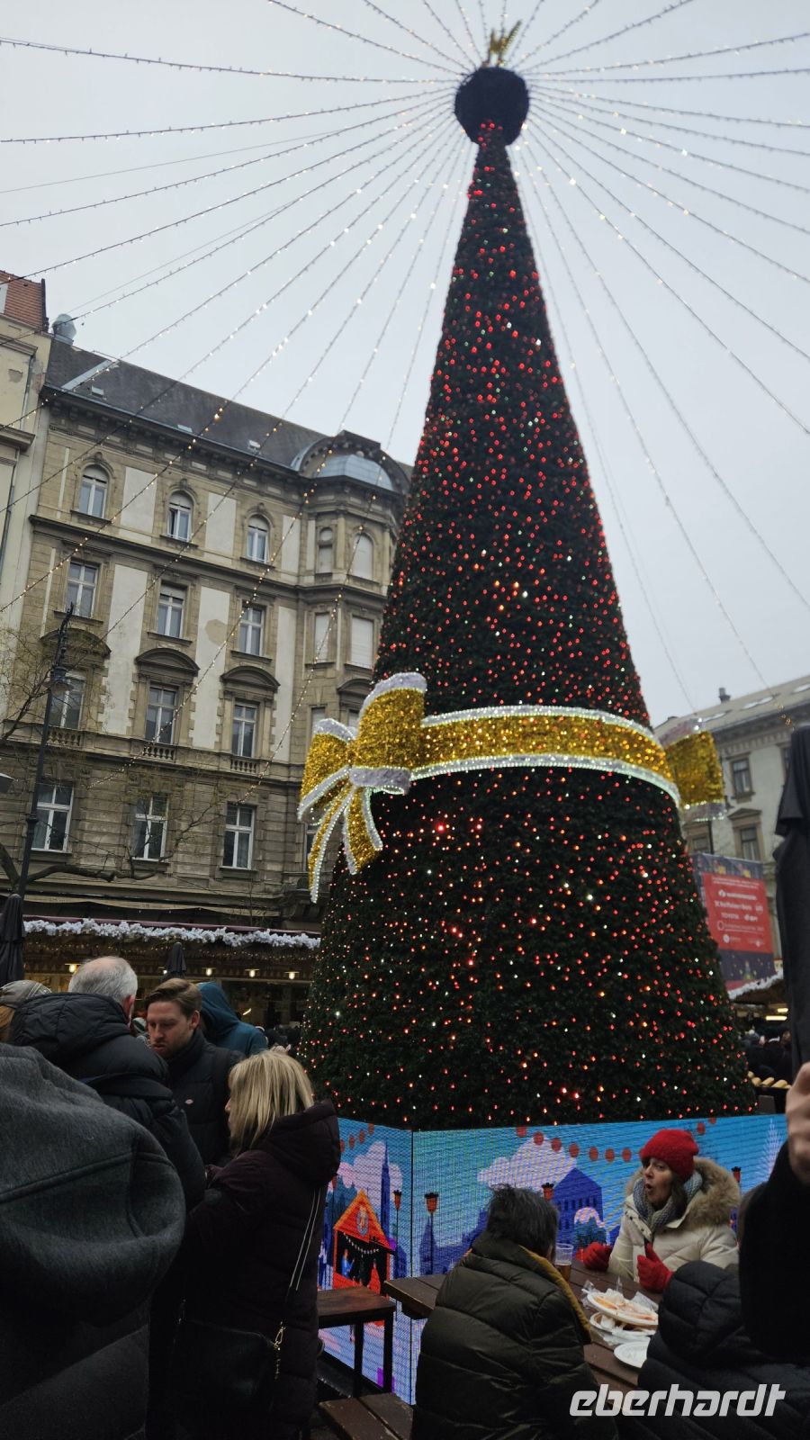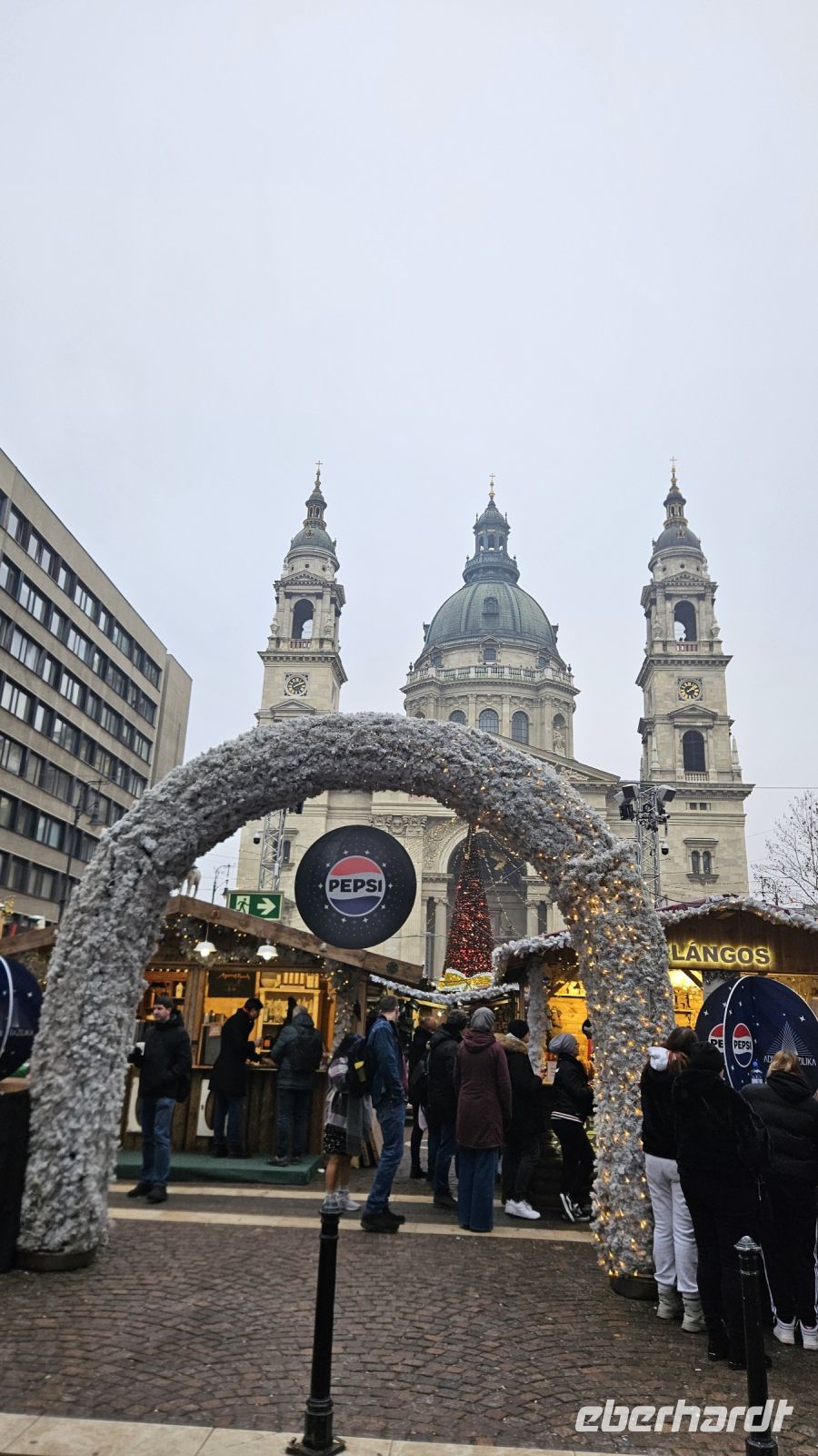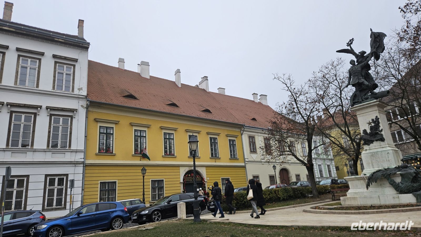 Da die Weihnachtsmärkte noch bis zum 01.01. offen sind, können wir unsere Mittagspause auf dem Weihnachtsmarkt verbringen, der direkt neben der St.-Stephans-Basilika ist. Alle schlagen sich den Bauch voll mit Gulasch, originalem Langós, der hier etwas tiefer ist als bei uns, mit Kuchen oder trinken noch den letzten Glühwein des Jahres.