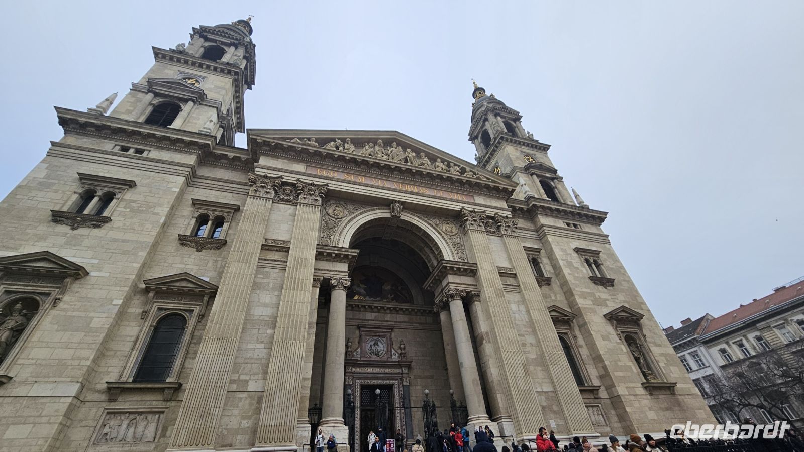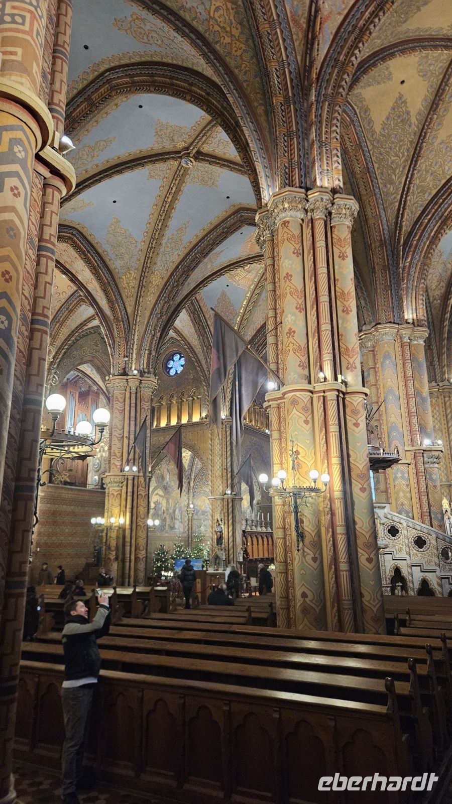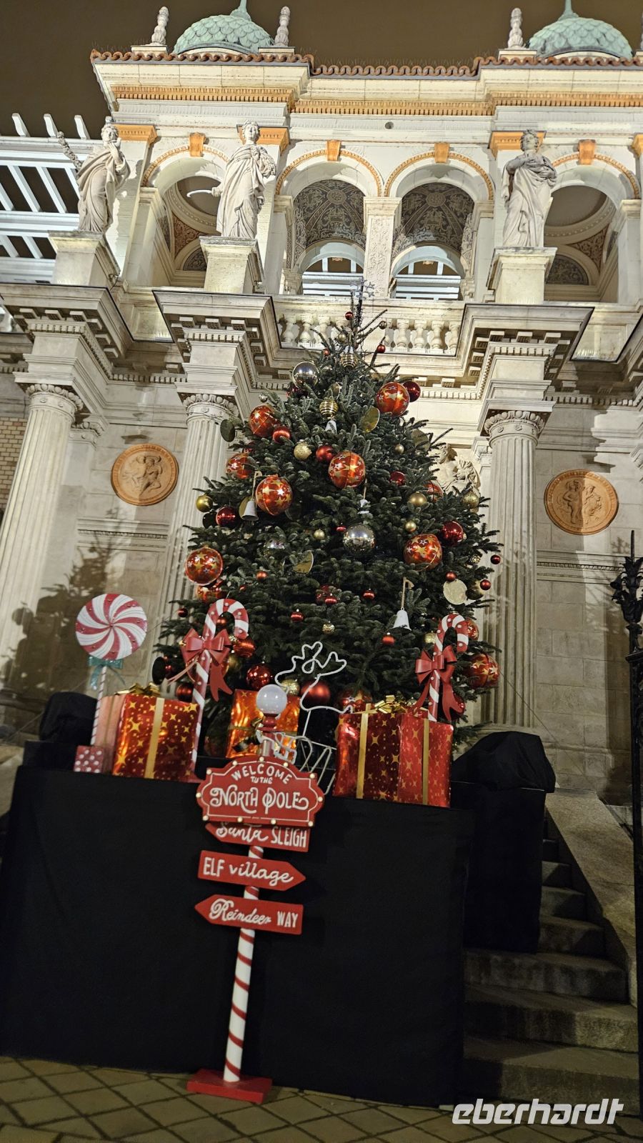 Da die Weihnachtsmärkte noch bis zum 01.01. offen sind, können wir unsere Mittagspause auf dem Weihnachtsmarkt verbringen, der direkt neben der St.-Stephans-Basilika ist. Alle schlagen sich den Bauch voll mit Gulasch, originalem Langós, der hier etwas tiefer ist als bei uns, mit Kuchen oder trinken noch den letzten Glühwein des Jahres.
