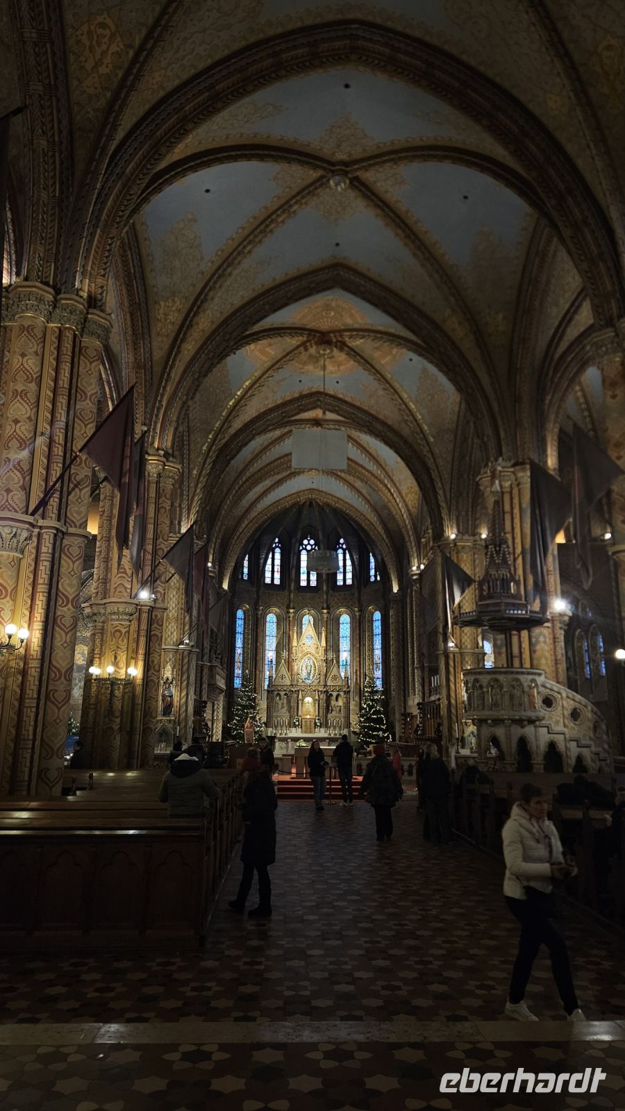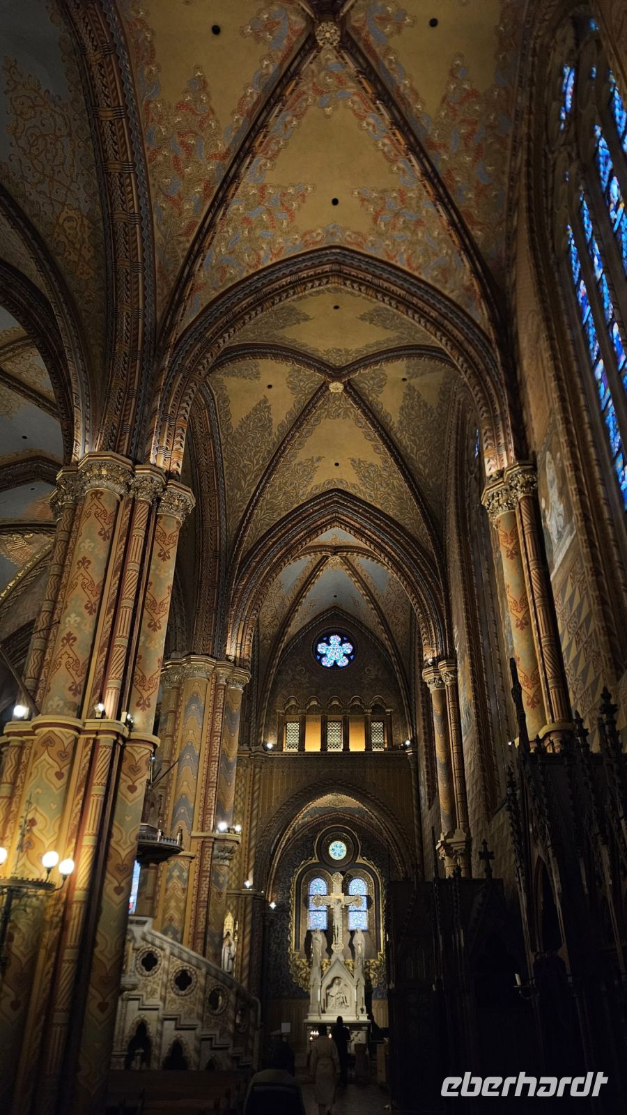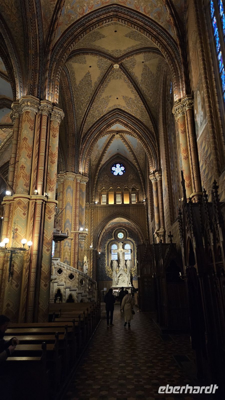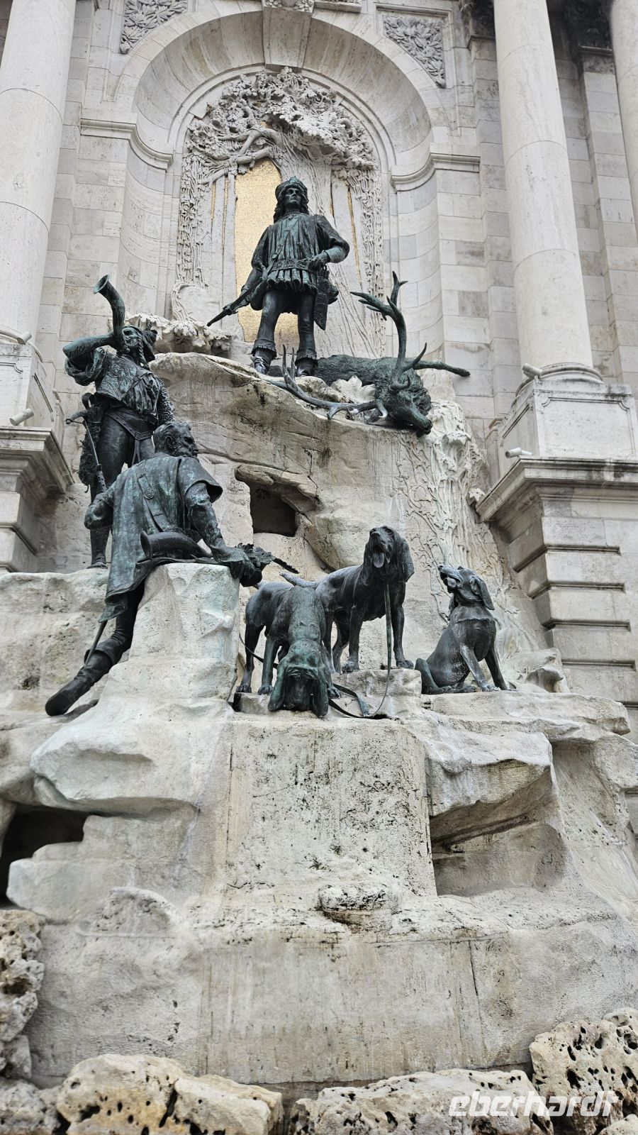 Nach einer entspannten Nacht und einem leckeren Frühstück begrüßen wir am nächsten Tag unsere Örtliche Reiseleiterin Szilvia. Mit ihr fahren wir zur Buda- Seite der Stadt und besichtigen das Burgviertel. Zuerst laufen wir vorbei an der Königlichen Reithalle, gehen die Stöckl Treppe über den Hunyadi-Hof nach oben zum Matthias- Brunnen, gebaut von Alajos Stróbl 1904. Dieser zeigt eindrucksvoll Lieblingsszenen des Renaissance-Hoflebens: die Jagd. Hier eine Jagdszene mit König Matthias. Danach haben wir von der ungarischen Nationalgalerie einen wunderschönen ersten Blick auf die Donau und die Pester- Seite. Nach einem kurzen Schlendern durch das Burgviertel mit vielen kleinen Information von Szilvia, kommen wir bei der architektonisch beeindruckenden Matthiaskirche an. Erbaut von König Bela I. ist diese ein Zeugnis der ereignisreichen ungarischen Geschichte. Sie wurde sogar kurz zu einer Moschee umfunktioniert unter der Osmanischen Herrschaft und war später Krönungskirche von Sisi und Franz Joseph I.