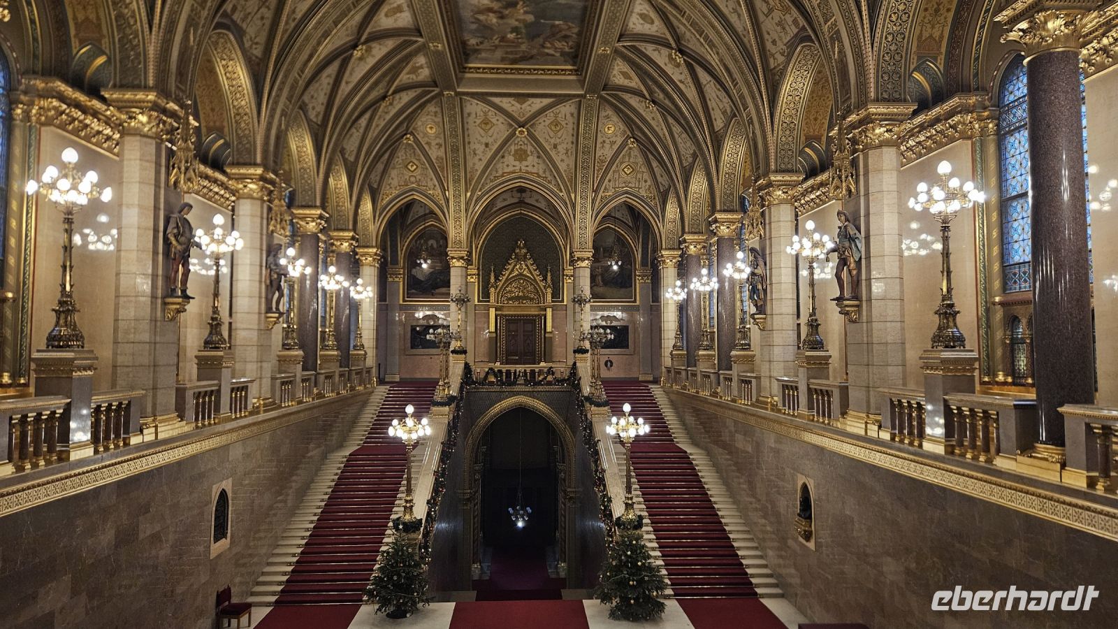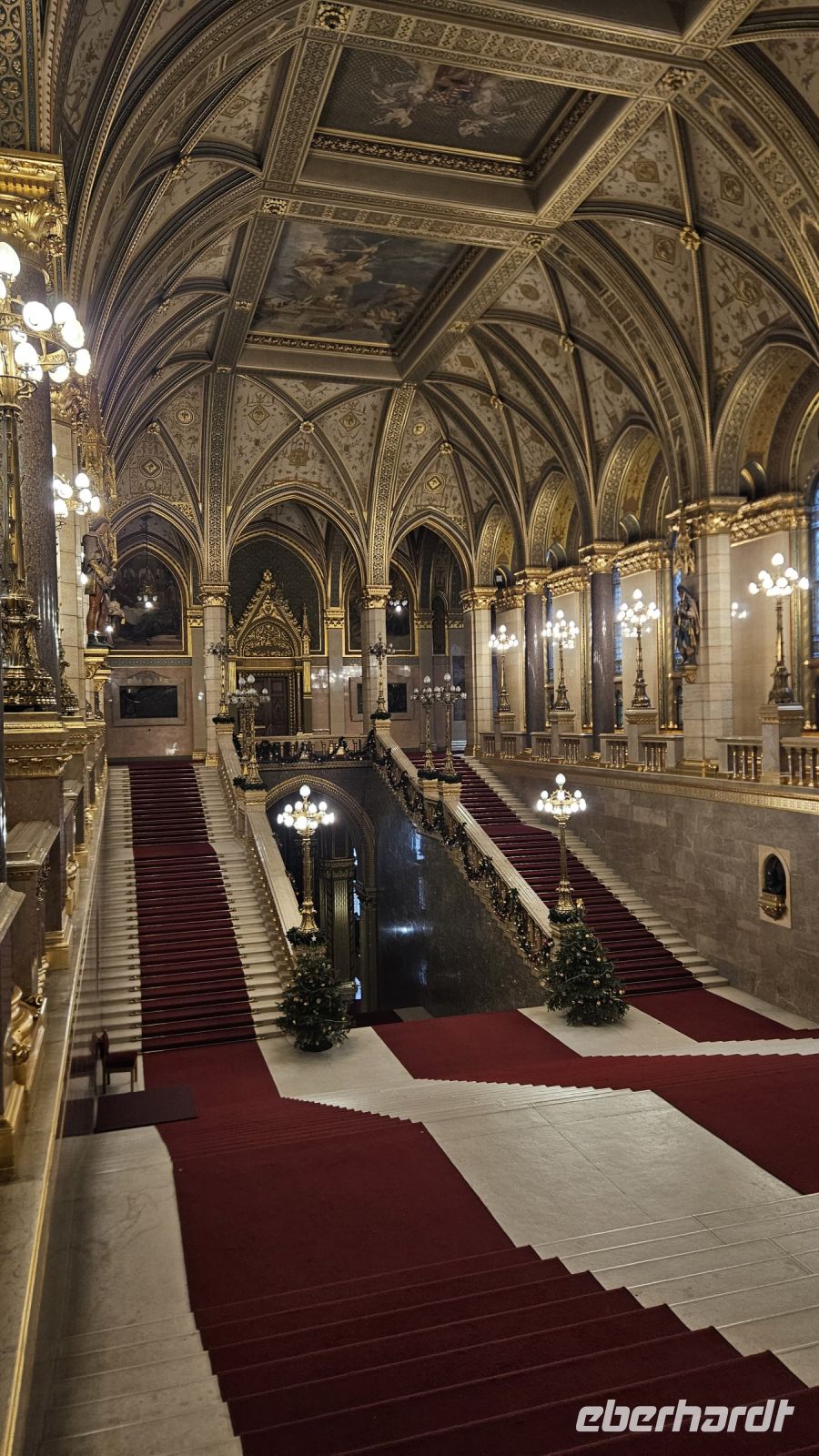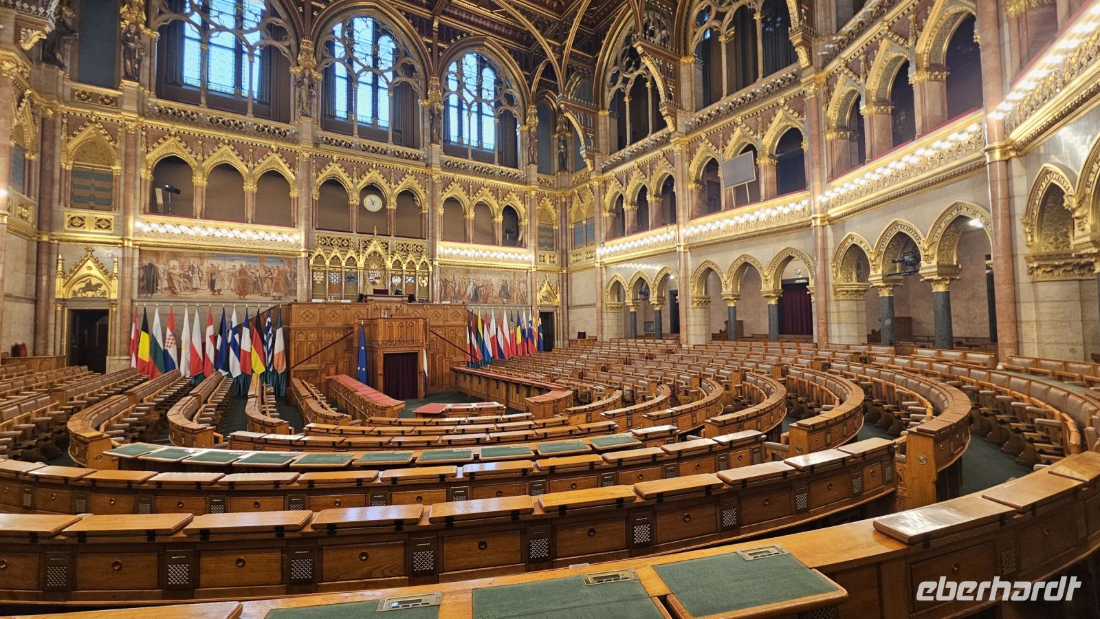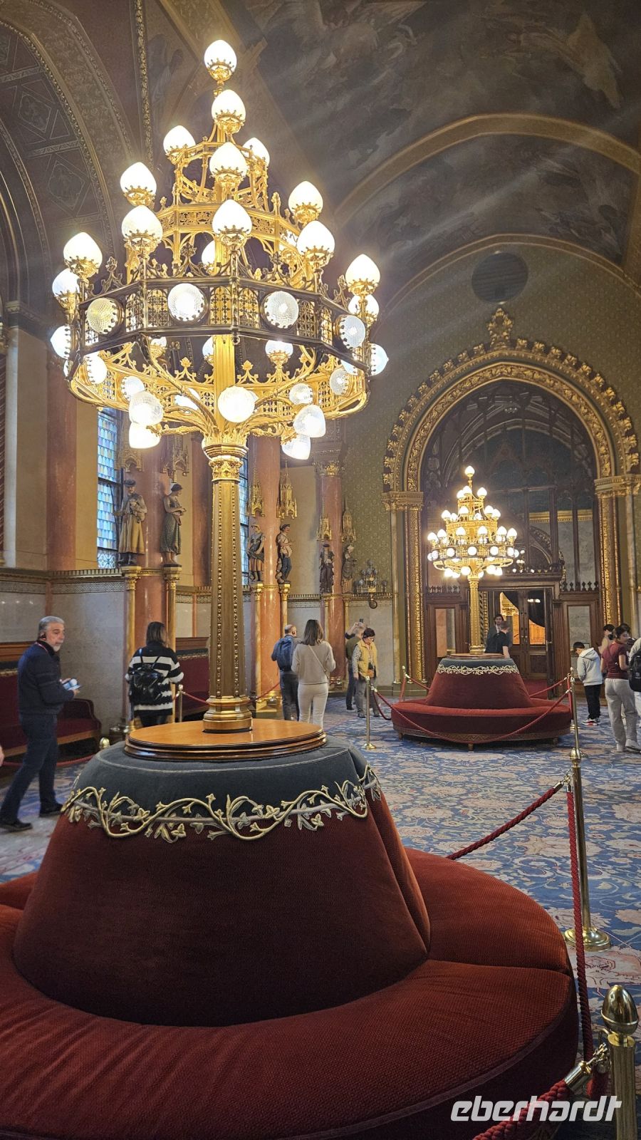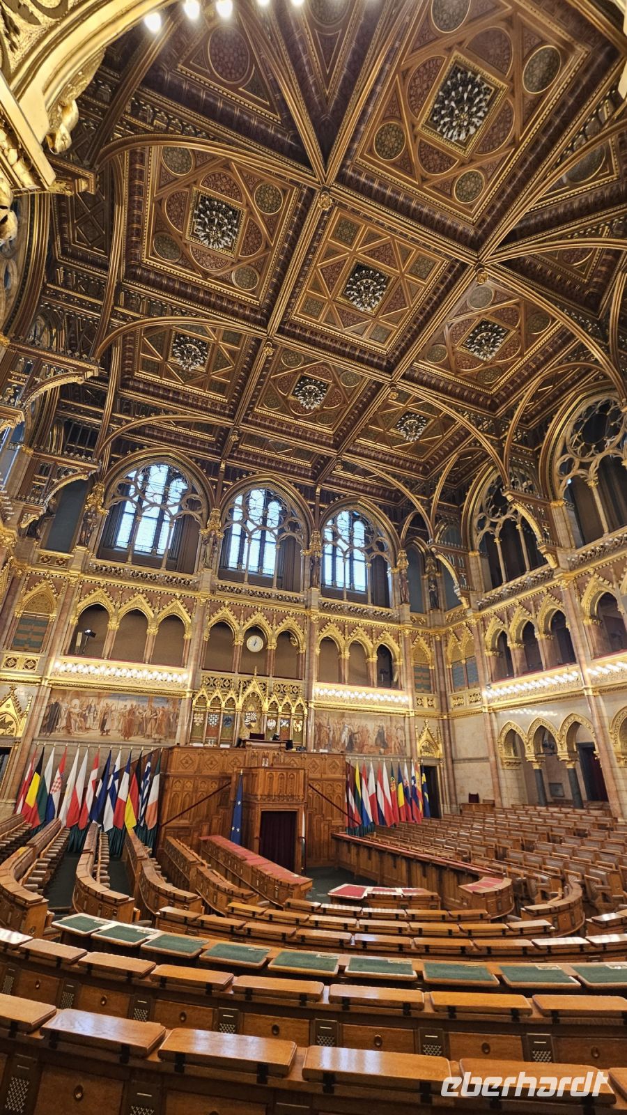 Als nächstes Highlight wartet das imposante Parlament von Budapest auf. Da wir überpünktlich sind müssen wir noch kurz warten, werden aber hineingelassen. Mit Audioguides werden wir durch das Parlament geführt, welches seit 1902 Sitz der ungarischen Nationalversammlung ist. Wir bestaunen unter anderem die goldene Ehrentreppe, die bewachte Stephanskrone und den Sitzungssaal des Oberhauses. Nach diesem Besuch können wir mit Sicherheit sagen, dass dieses prunkvolle Gebäude auch von innen einen besuch wert ist.