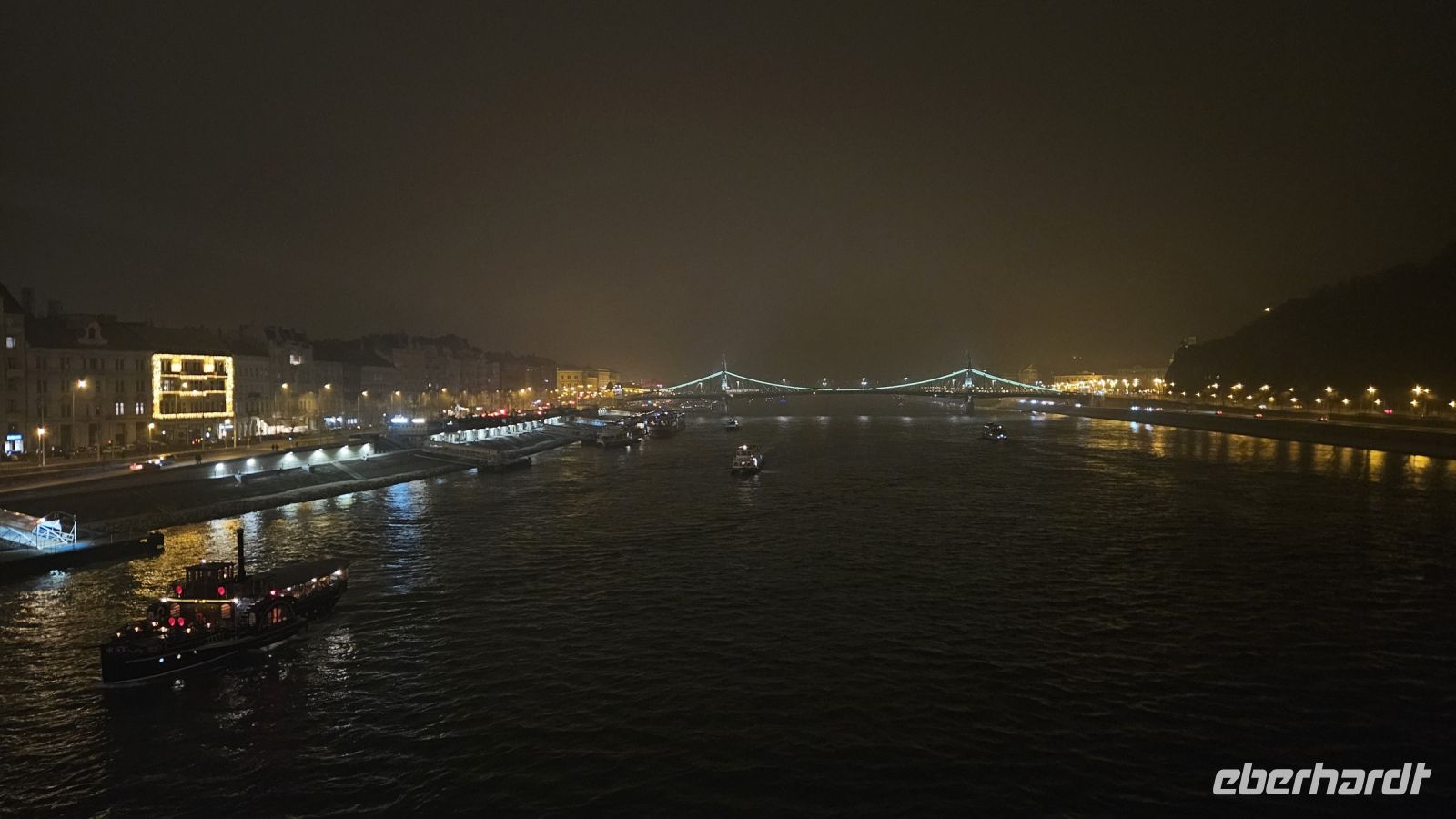 Um Mitternacht ist unser Schiff schon wieder in Bewegung und wir haben das Parlament in Sichtweite. Die meisten gehen hoch aufs Außendeck und zählen die Sekunden bis Mitternacht. Zu Feuerwerk an der Donau stoßen wir an auf ein wunderbares neues Jahr, das für uns mit dieser Reise schon herrlich beginnt.