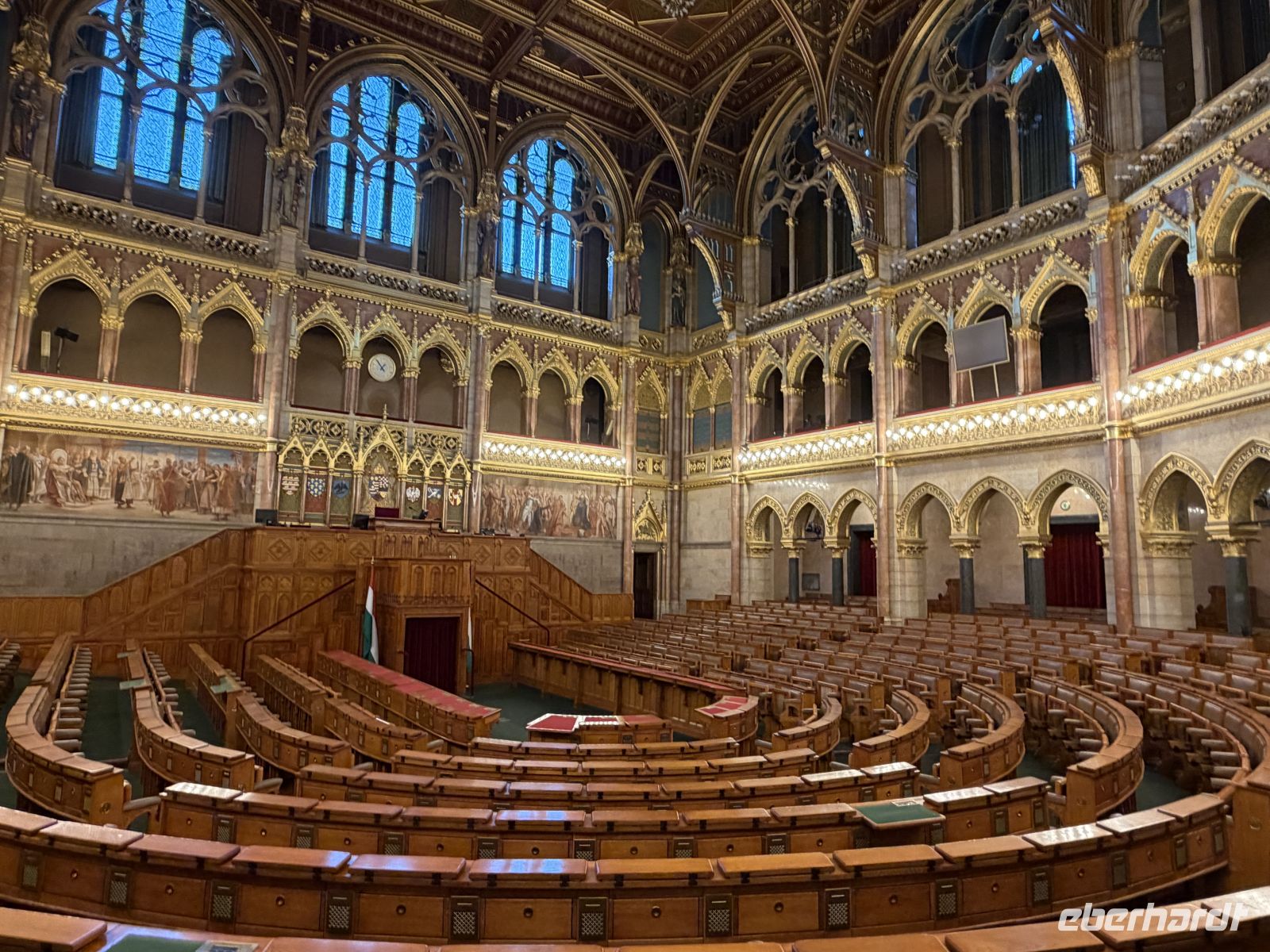 Nach einem Blick von der Fischer Bastei über die Donau mit ihren bekannten Brücken, auf den herrlichen Stadtteil Pest und das Parlament, folgte der Abstieg zum Busparkplatz. Eine Fahrt über die Margareten Brücke zum Parlament folgte. Pünktlich um12:15 Uhr wurden wir zur Besichtigung des Parlaments in das für das heutige Ungarn viel zu große, prunkvolle Haus, eingelassen. Die Markthalle war unser nächstes High light. Nach der Erläuterung des Bauwerkes gab es eine wohlverdiente Mittagspause und Zeit für Einkäufe.