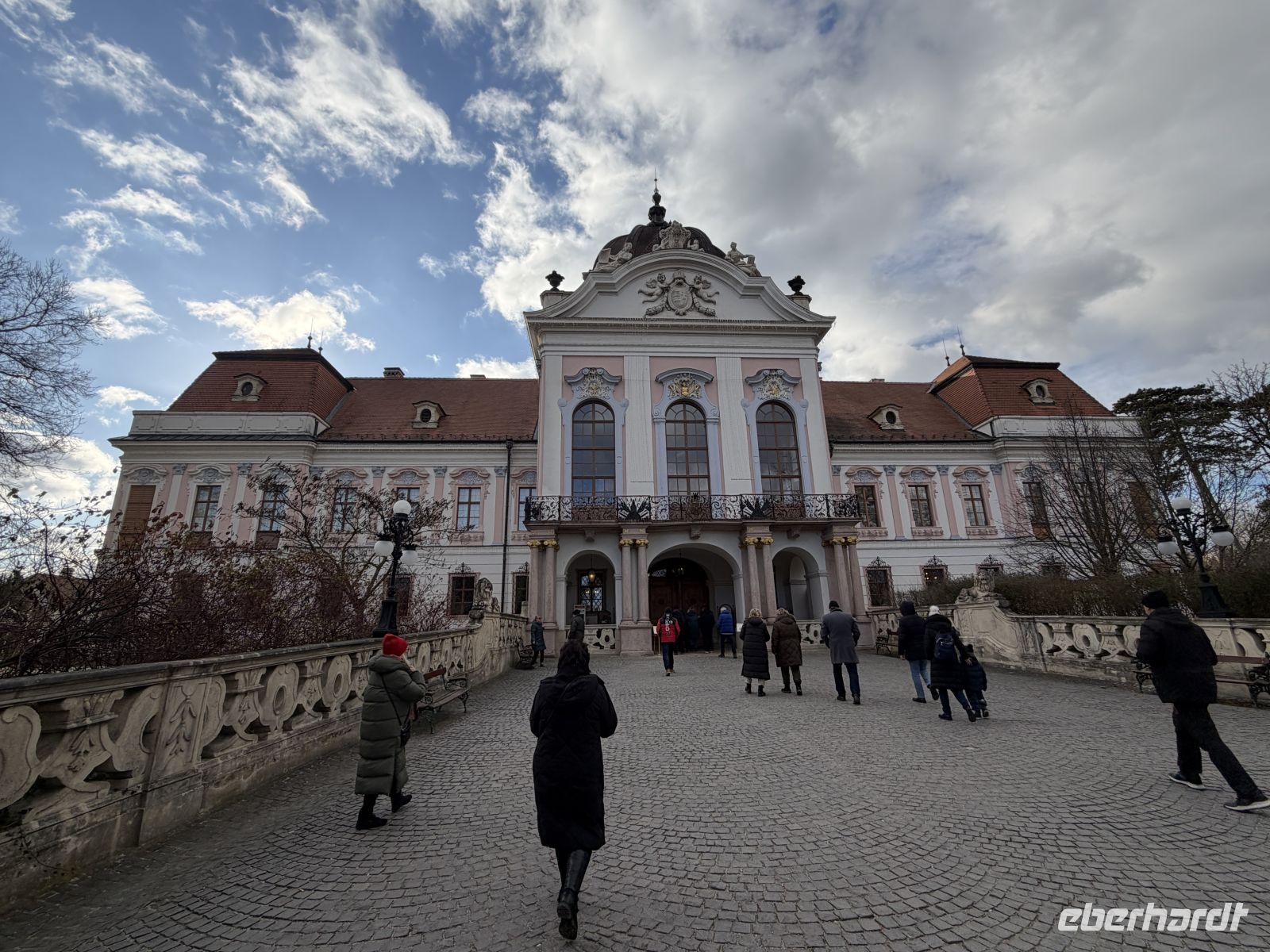 Nach Ankunft in Gödöllö wartete auf uns um 12:45 Uhr eine ausführliche Führung durch das renovierte und größte Barockschloss Ungarns. Das Schloss wurde im Auftrag von Graf Antal Grassalkovich I. nach Plänen des Wiener Baumeisters Andreas Mayerhoffer erbaut. Im Jahre 1867 kaufte der Staat das Schloss, ließ es vom Architekten Miklos innerhalb von 6 Monaten renovieren und machte es Franz Joseph I. und seiner Sissi anlässlich ihrer Krönung zum König und Königin von Ungarn zum Geschenk. Das Herrscherpaar verbrachte hier im Frühjahr und Herbst einige ungestörte Wochen, fernab vom Wiener Hofprotokoll. Wir besichtigten das Schlossmuseum und waren Blicke in den kalten Schlosspark.
