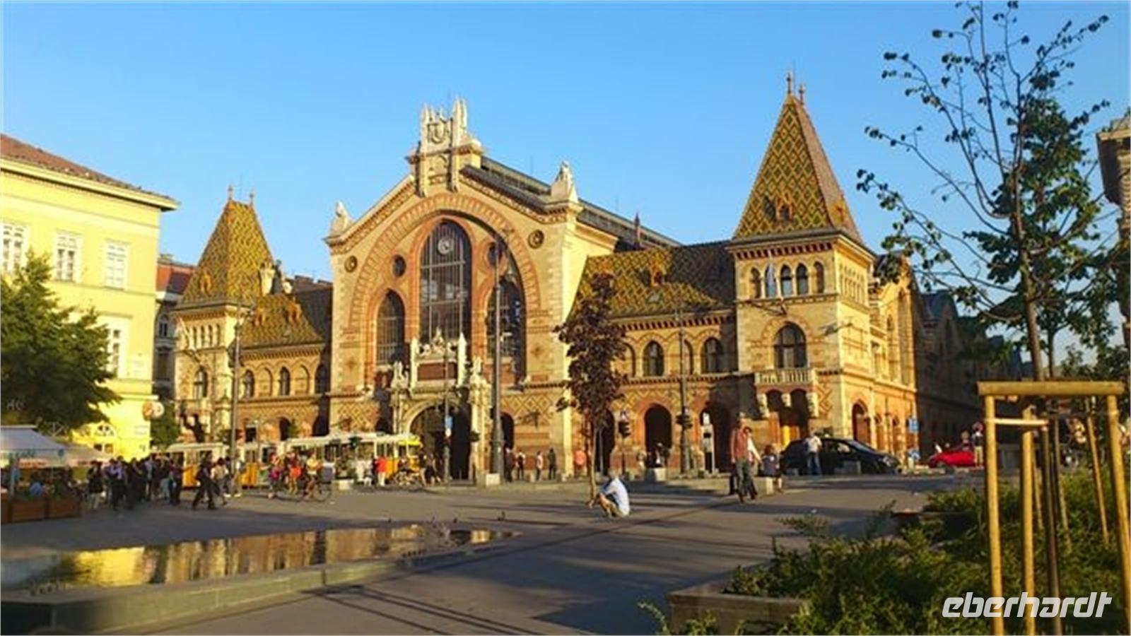 Natürlich flanierten wir auch über die Terrassen der "Fischerbastei" und genossen atemberaubende Ausblicke auf Donau und Budapest. Am Hotel "Hilton" schleckerten wir ein Sahneeis und bestaunten eine riesige Hochzeitstorte aus Marzipan. Die Rückfahrt führte uns über den Heldenplatz zur großen Markthalle, der wir auf Wunsch aller Reisegäste einen spontanen Besuch abstatteten. Wir stürzten uns ins bunte Gewimmel, verkosteten Langos und anderes. Viele Gäste verließen die Halle mit kulinarischen Köstlichkeiten wie ungarischer Salami, Paprikagewürz, echter Gänseleberpastete und Baracz Palinka. Bis zum Abend hatten wir freie Zeit, die wir für eigene Entdeckungen oder zum Ausruhen nutzten.