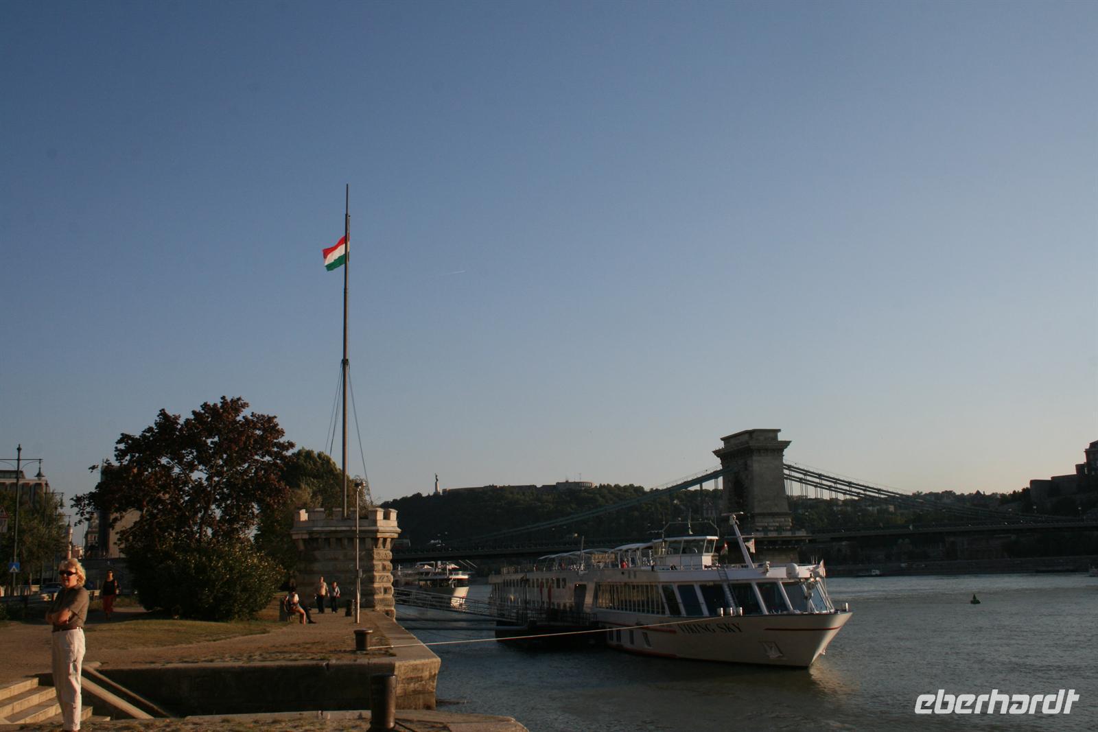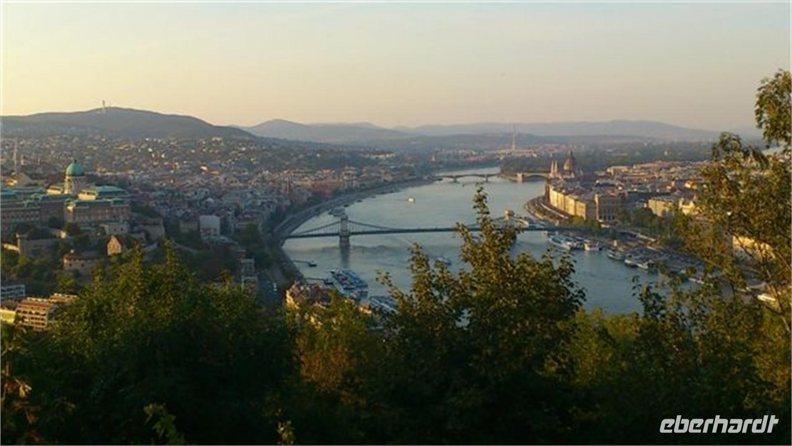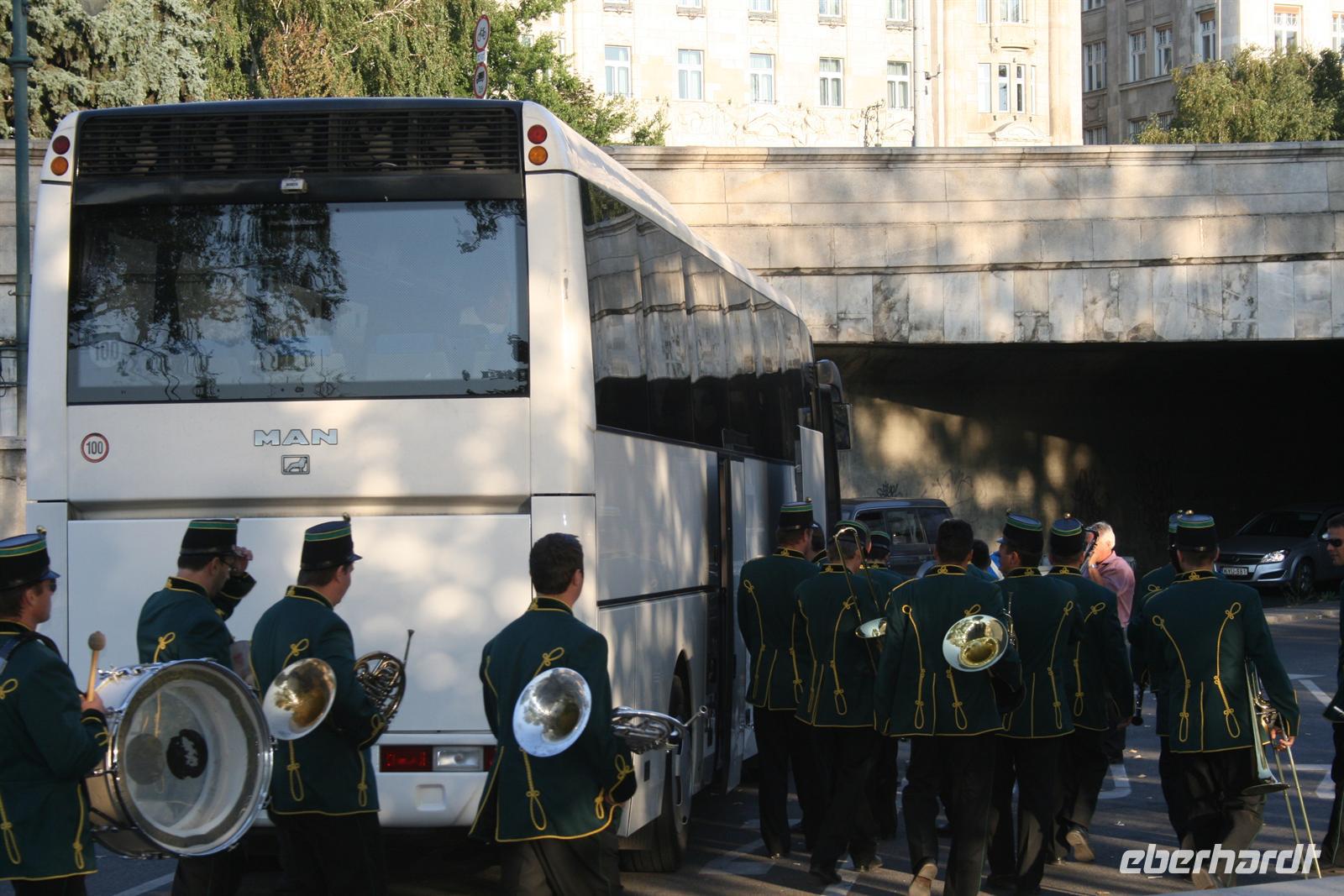 Pünktlich 6 Uhr starteten wir mit unserem "Club-Bus", hinterm Steuer Heiko von Kreisel, nach Ungarn. Unsere Route führte uns auf dem schnellsten Weg über die Autobahn. Vorbei an Prag, Brno und Bratislava passierten wir bei Mosonmagyarovar (das Wort müssen wir noch üben) die ungarische Grenze. Auf der M1 erreichten wir gegen 17 Uhr die ungarische Hauptstadt, die uns mit Sonnenschein und hochsommerlichen Temperaturen empfing. Schon bei der Anfahrt zu unserem Hotel über die Elisabeth-Brücke erhielten wir einen ersten Eindruck von dieser Traumstadt.