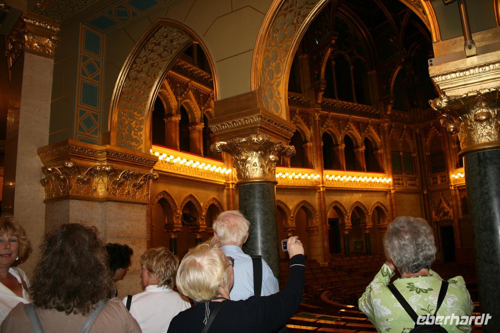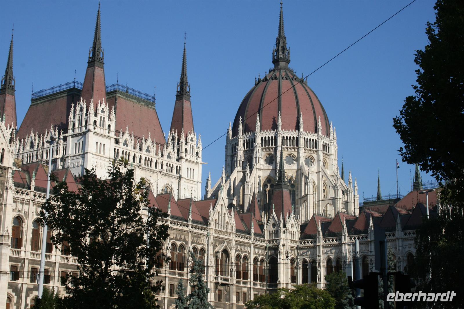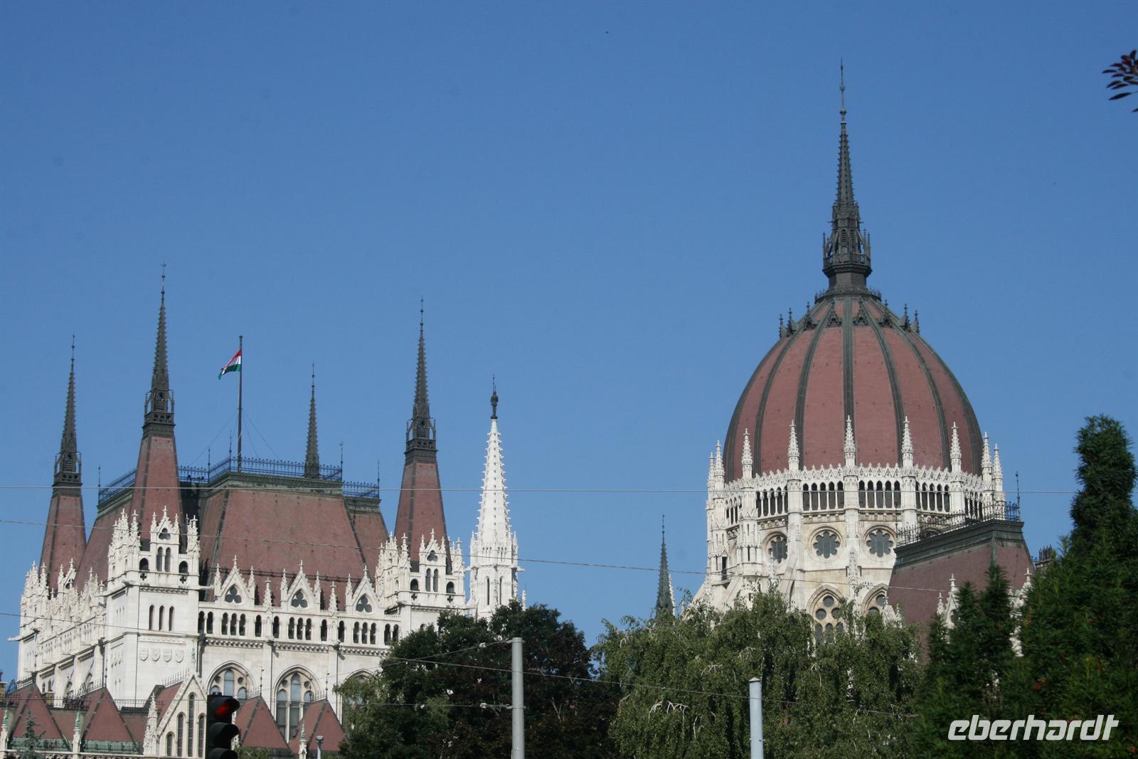 Nach einem ausgiebigen Frühstück begrüßten wir Annamaria, unsere ungarische Reiseleiterin, die uns ihr Budapest zeigen wollte. Am Vormittag verzichteten wir auf unseren Bus und fuhren wir mit der Metro (übrigens älteste in Europa) 2 Stationen und schon war unser erstes Ziel erreicht: Das ungarische Parlament am Pester Donauufer ist das Wahrzeichen von Budapest und nach London das zweitgrößte Parlamentsgebäude Europas.