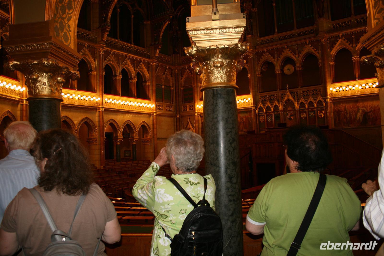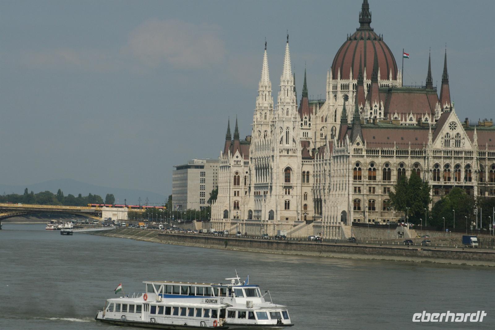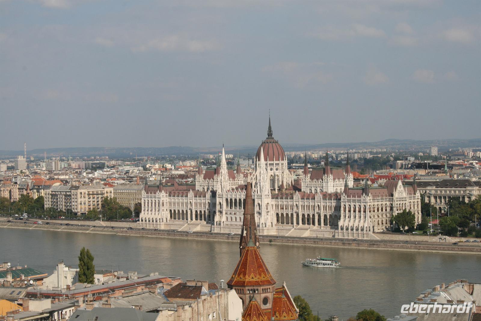 Nach einem ausgiebigen Frühstück begrüßten wir Annamaria, unsere ungarische Reiseleiterin, die uns ihr Budapest zeigen wollte. Am Vormittag verzichteten wir auf unseren Bus und fuhren wir mit der Metro (übrigens älteste in Europa) 2 Stationen und schon war unser erstes Ziel erreicht: Das ungarische Parlament am Pester Donauufer ist das Wahrzeichen von Budapest und nach London das zweitgrößte Parlamentsgebäude Europas.
