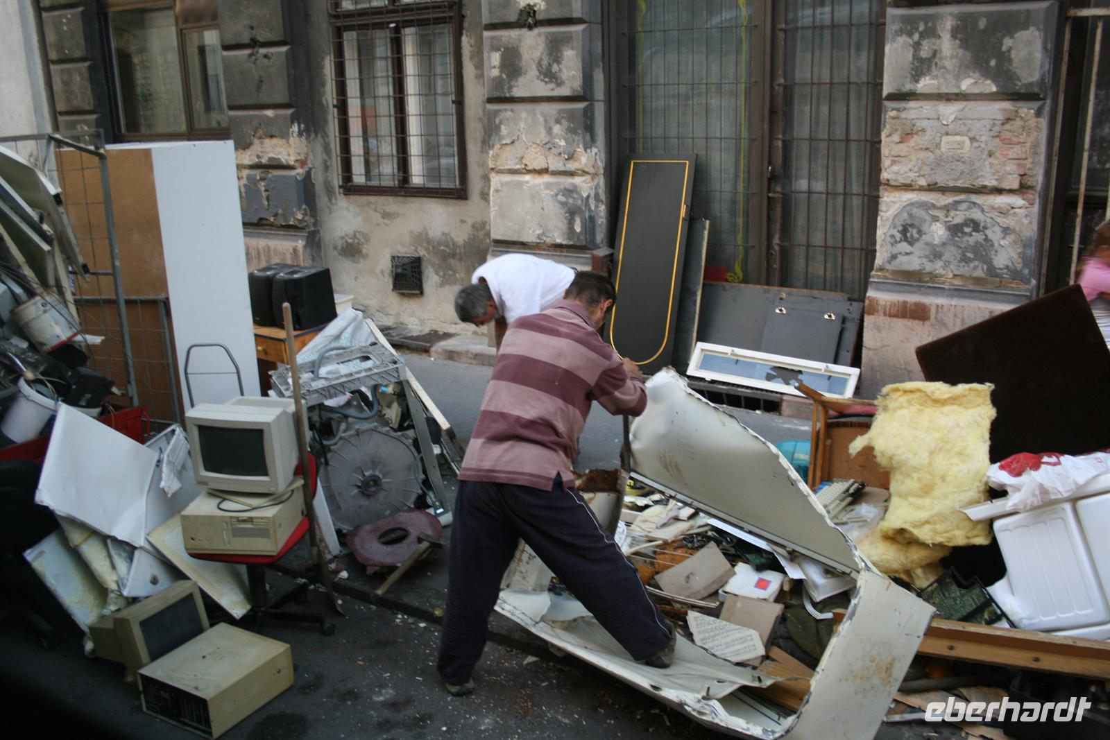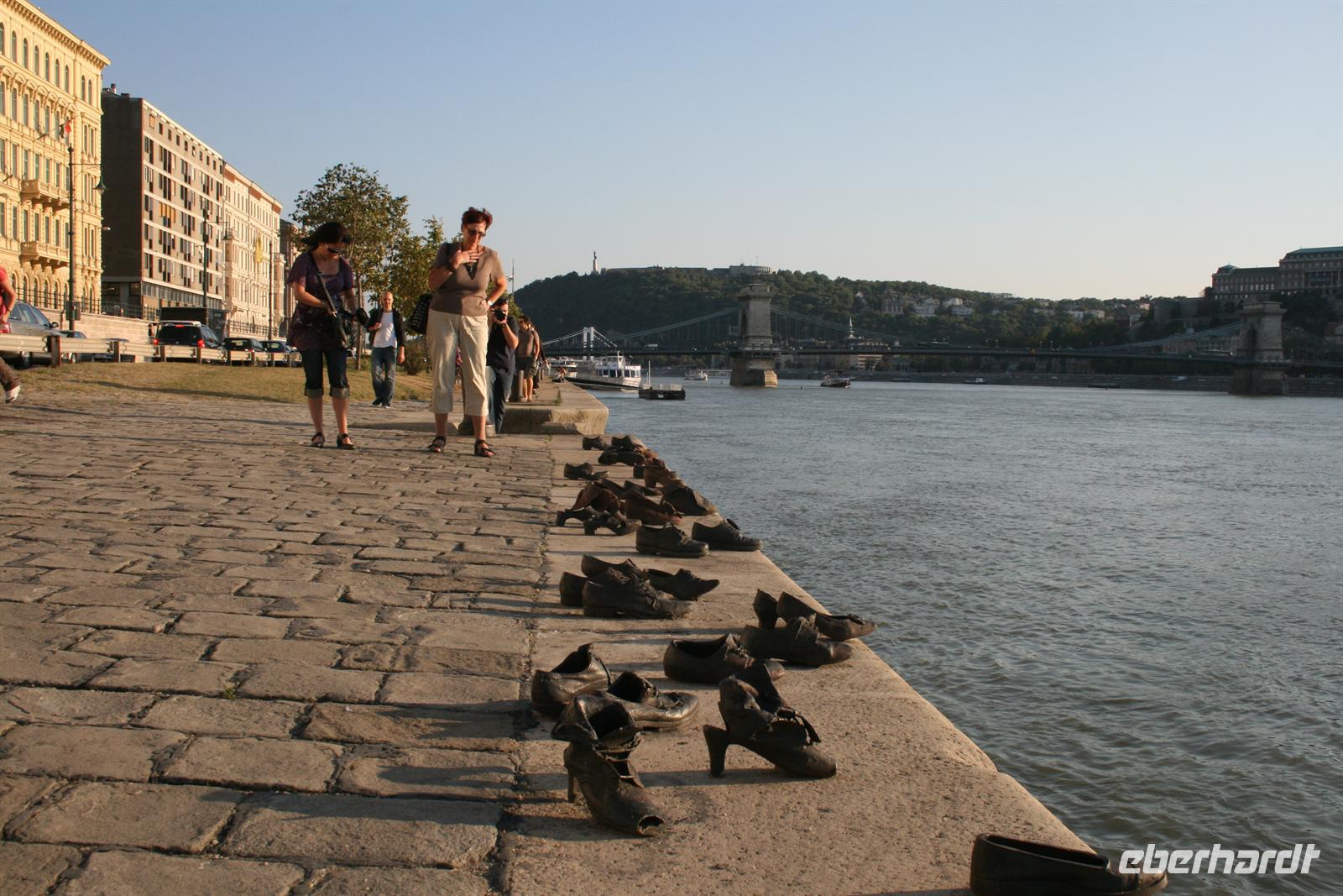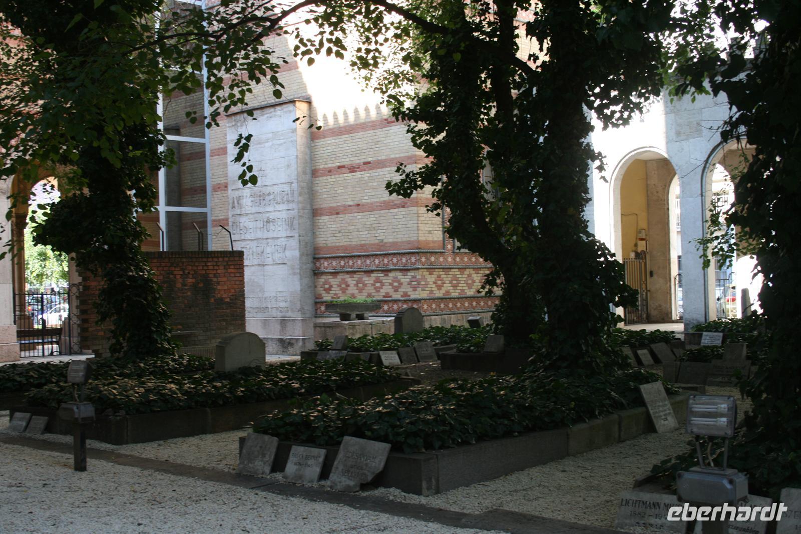 Obwohl unsere Füße schon etwas müde waren, bummelten wir noch zum jüdischen Viertel. Unterwegs überraschte uns eine netter Restaurantbesitzer mit einer kleinen Stärkung und wir verkosteten leckere, mit Pflaumen gefüllte Pastetchen. Die jüdische Gemeinde galt um 1900 mit ca. 170.000 Mitgliedern als eine der best integriertesten in Europa. Heute leben ca. 85.000 Juden in Budapest, ca. 100.000 in ganz Ungarn. In der Großen Synagoge wurden wir von einer Kirchenhistorikerin empfangen, die uns zunächst durch den parkähnlichen Komplex führte. Im hinteren Teil steht eine metallne Trauerweide, auf deren Blätter Namen bzw. Nummern (Namen sind archiviert) eingraviert sind, auf den Gedenktafeln daneben sind die Namen derer eingemeiselt, die bei der Rettung der ungarischen Juden geholfen haben.