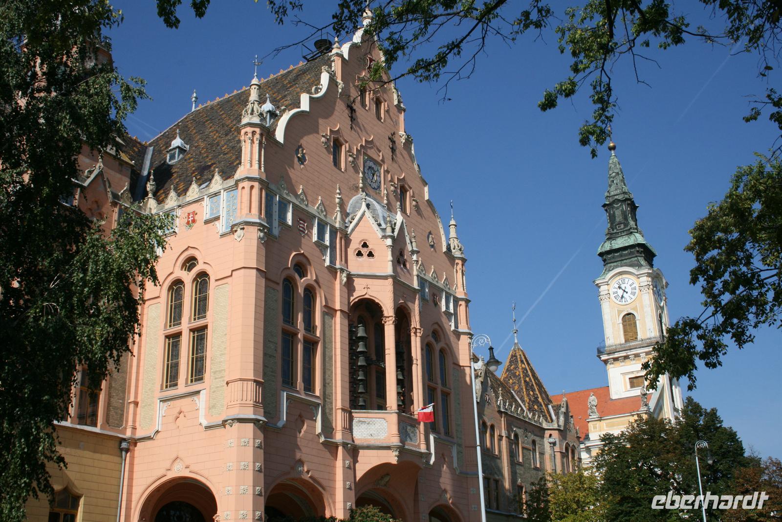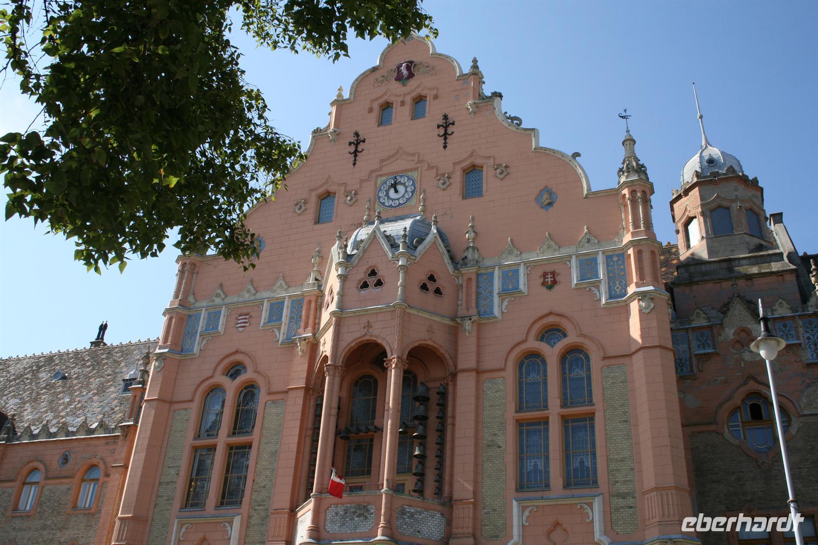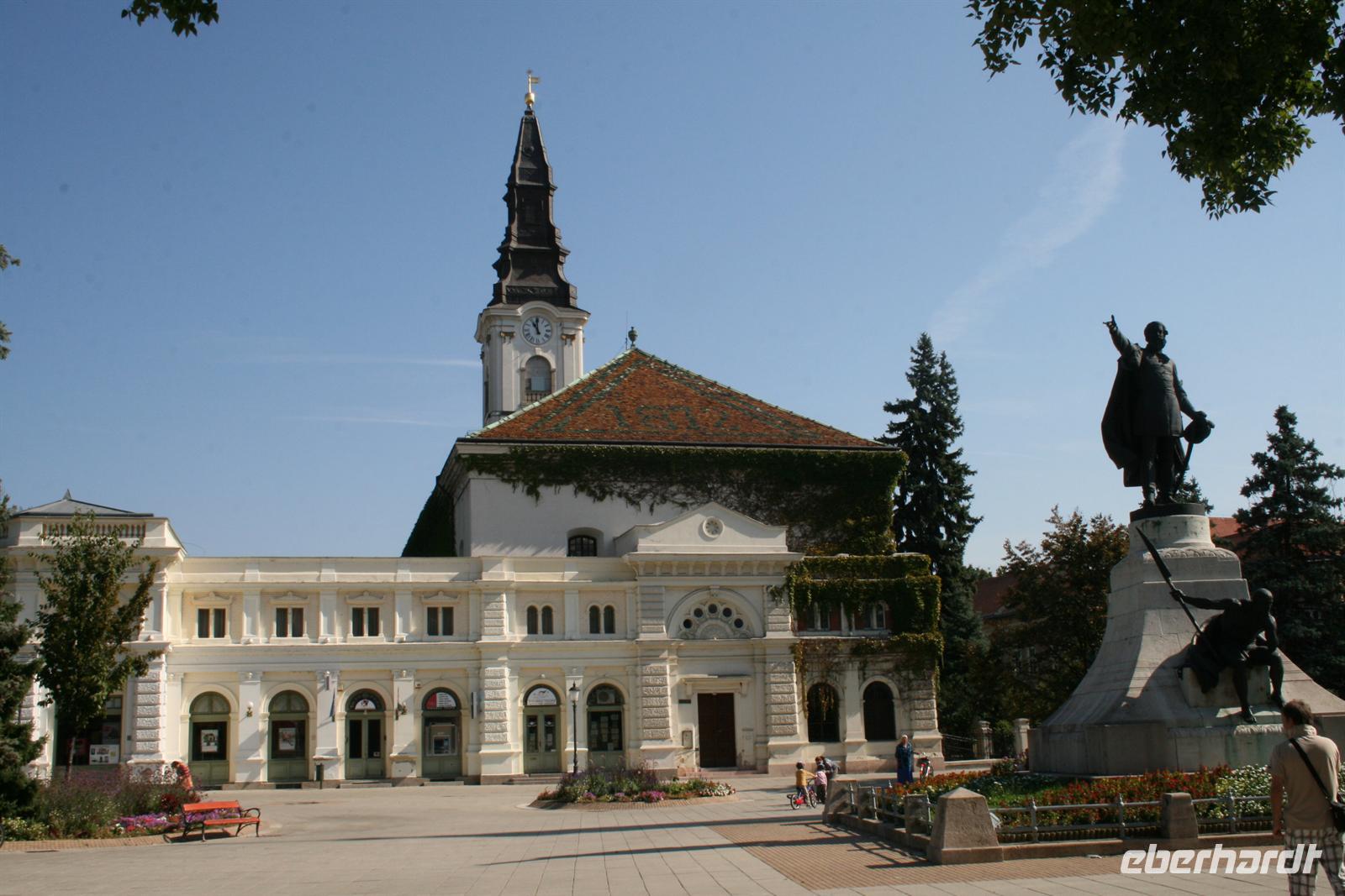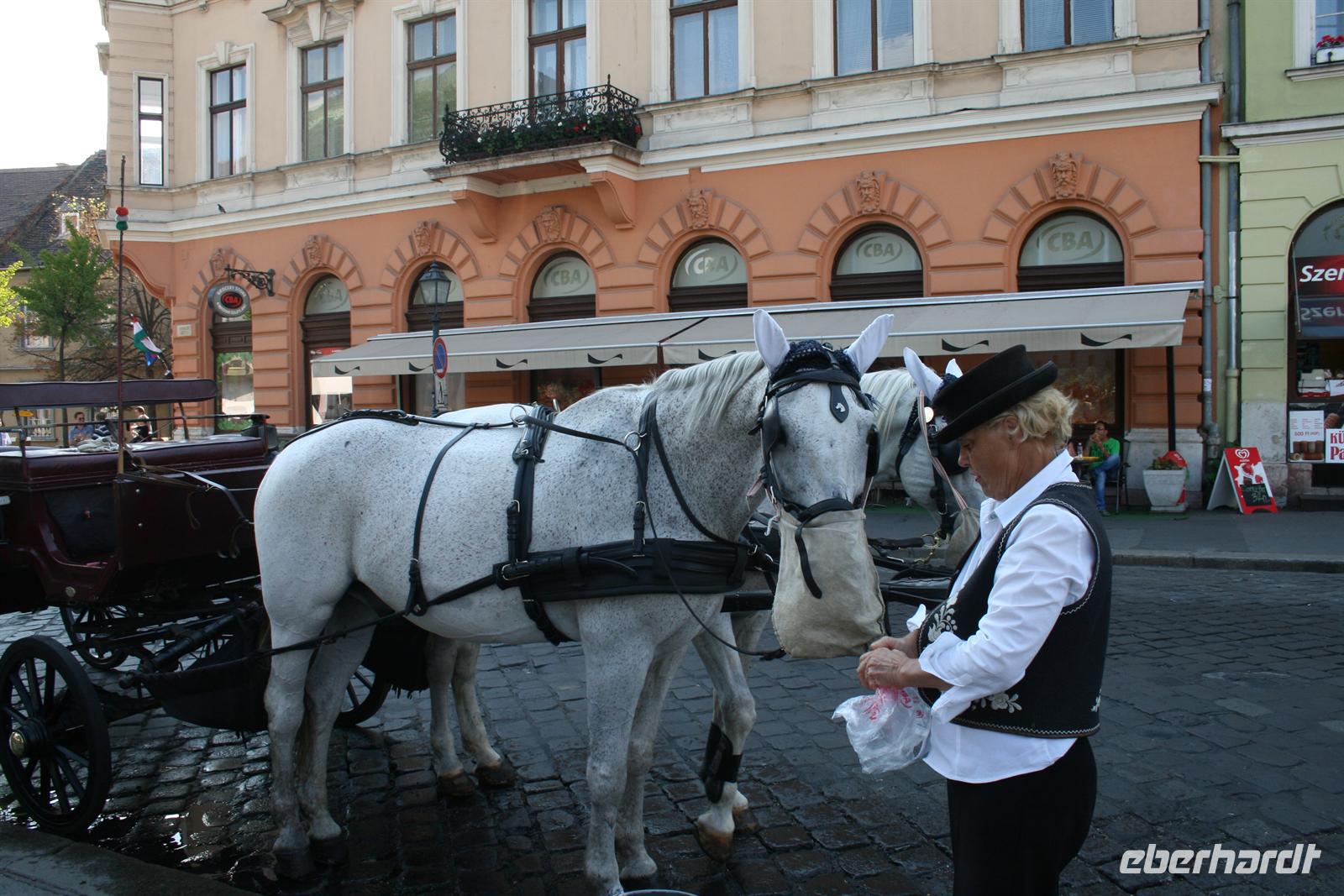 Den nächsten Tag begannen wir geruhsam und bedienten uns am gut bestückten Frühstücksbuffet. Heute stand ein Ausflug in die Puszta auf dem Programm. Mit Annamaria fuhren wir zunächst nach Kecskemet, wo wir einen kleinen Stadtbummel unternahmen. Das hübsche Städtchen ist die "Hauptstadt" des Baracz Palinkas. Das schöne Rathaus glänzt natürlich in der Farbe der Aprikosen! Hier lauschten wir dem Glockenspiel nach Klängen des ungarischen Komponisten Zoltan Kodaly, der hier geboren ist.