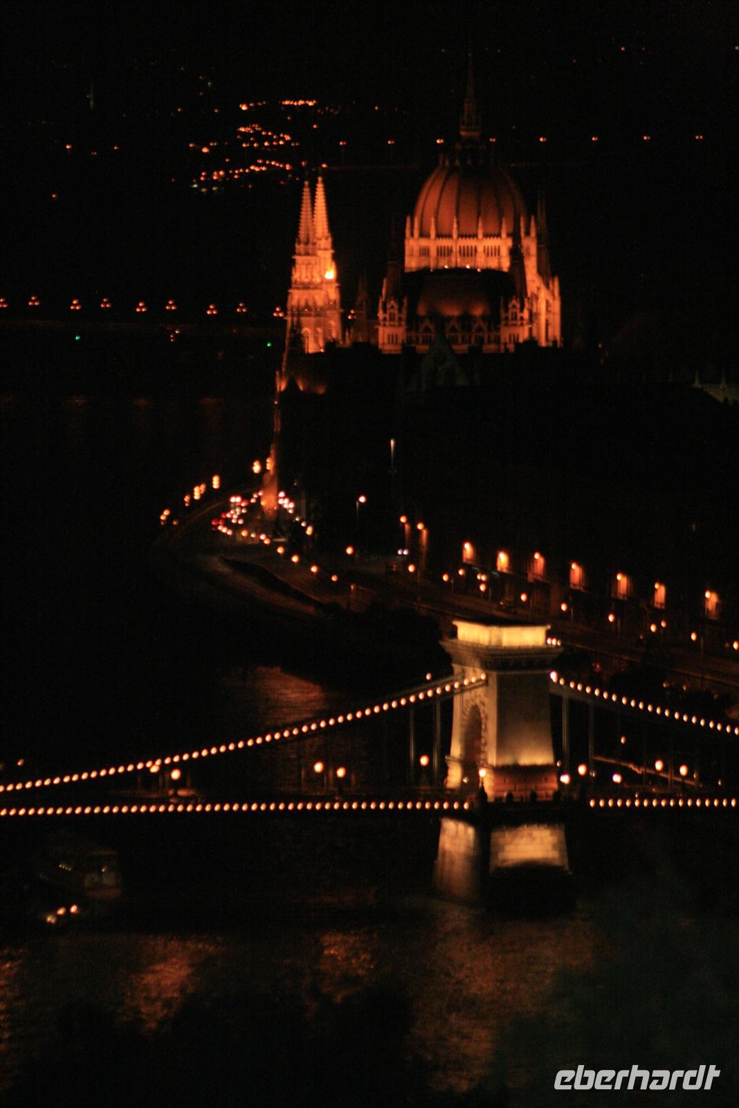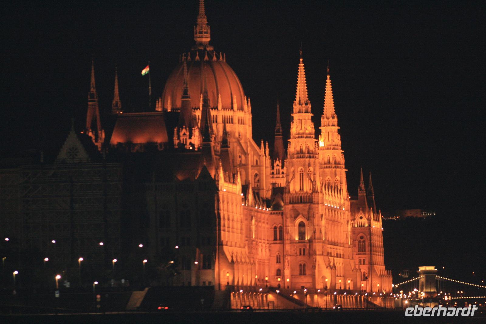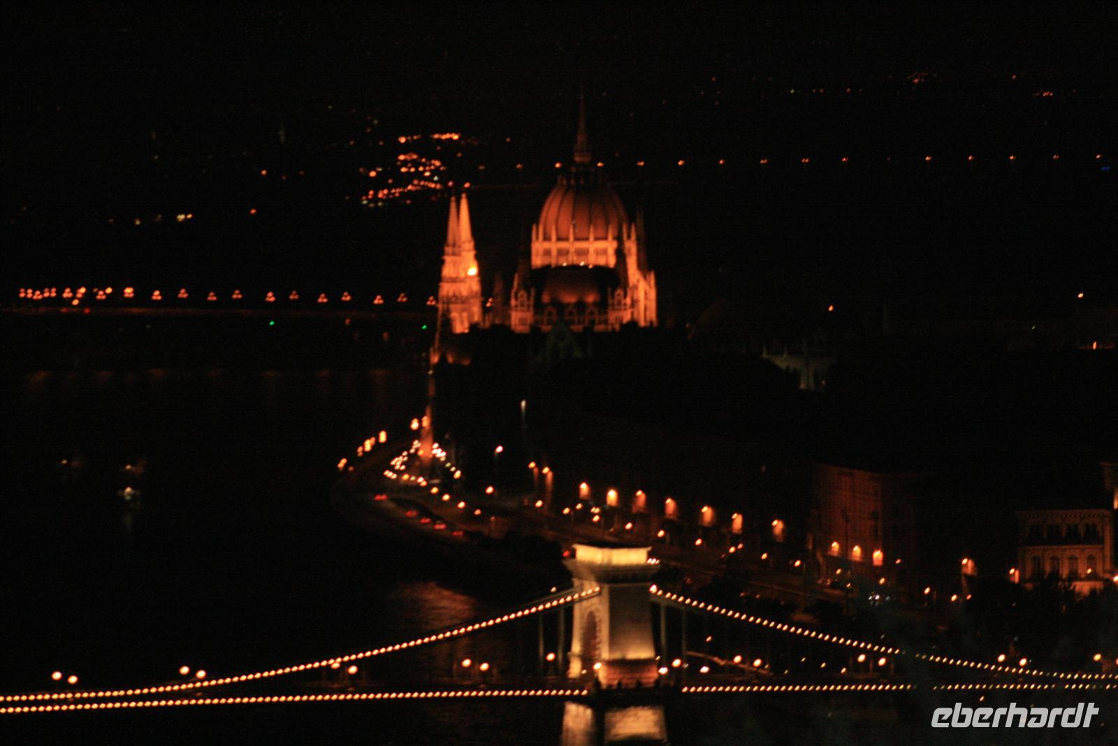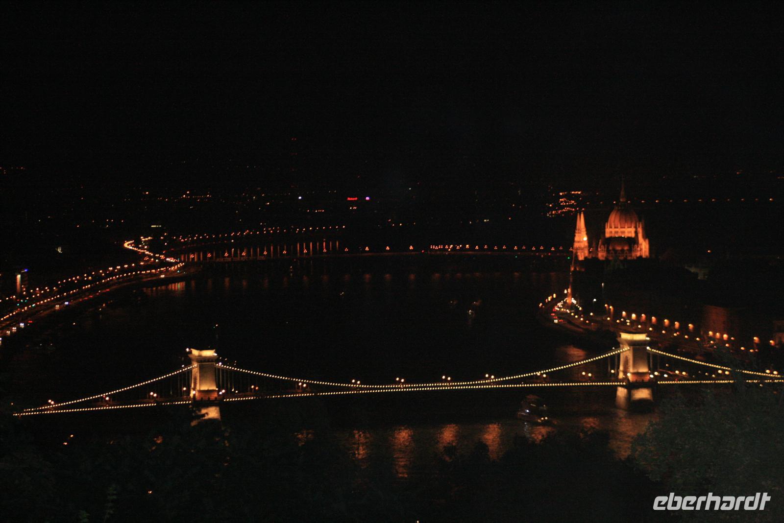 Zum Abschluß dieses Tages genossen wir eine abendliche Panoramafahrt auf der Donau. Nicht mit einem der großen Touristenboote, sondern exklusiv mit einem kleinen Boot, extra für uns! Mit ungarischem Sekt wurden wir an Bord begrüßt. Nach dem 3-Gänge-Menü zog es uns an Deck: WOW - rechts und links der Donau das beleuchtete Budapest, Fischerbastei, Burg, Zitadelle mit Freiheitsdenkmal, das Parlament und die vielen Brücken! Helga erklärte uns noch einmal das Gesehene. Die Fotoapparate klickten im Dauerton und die 2 h vergingen wie im Flug. Ein wunderschöner Abschluß der Reise oder doch noch nicht? Noch nicht ganz! Heiko, unser Buschauffeur fuhr mit uns noch zu nächtlicher Stunde auf den Gellert-Berg. Die perfekte Parklücke war schnell gefunden. Von hier oben hatten wir einen der fantastischsten Ausblicke auf der erleuchtete Budapest bei Nacht. Wir waren alle nur begeistert.